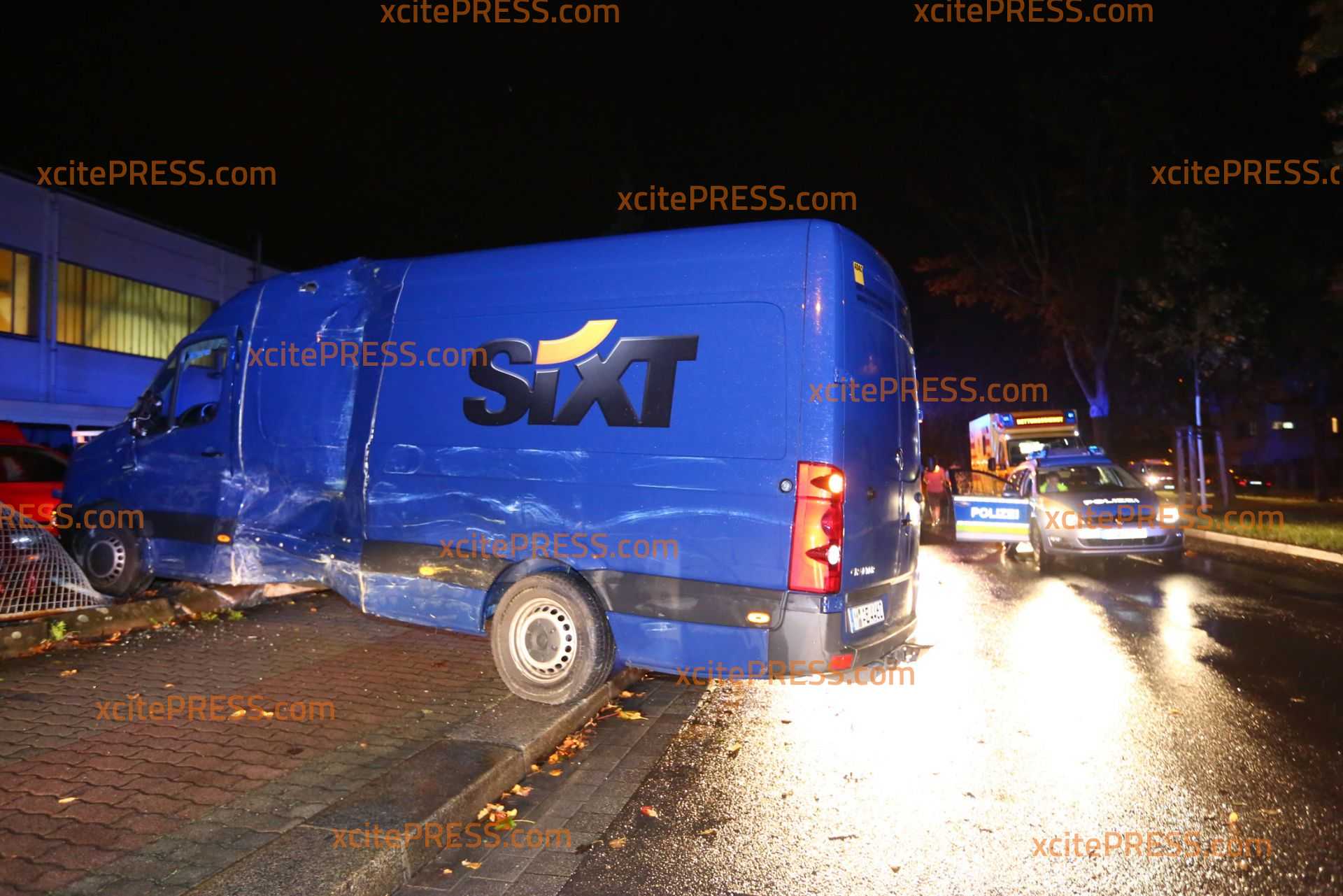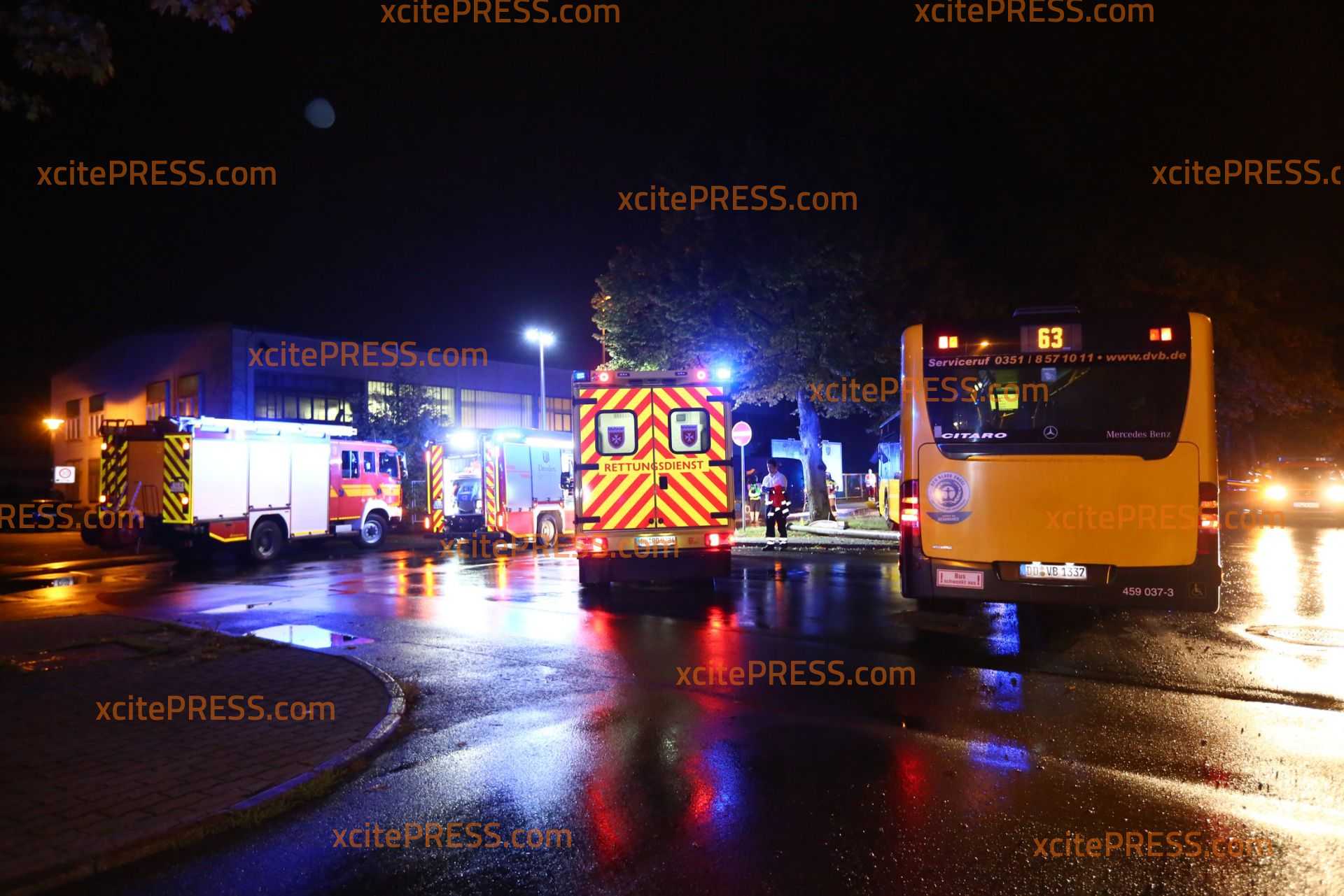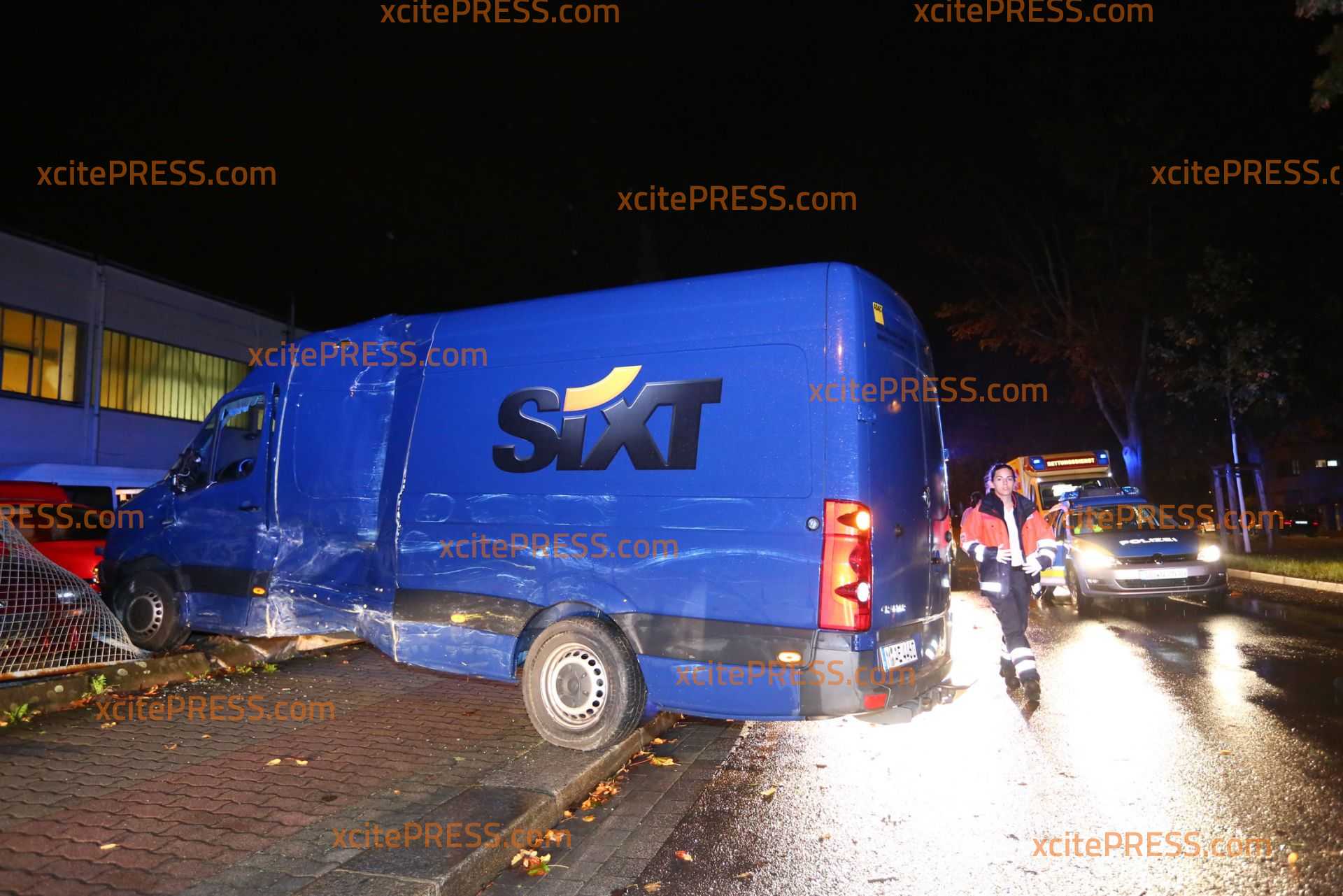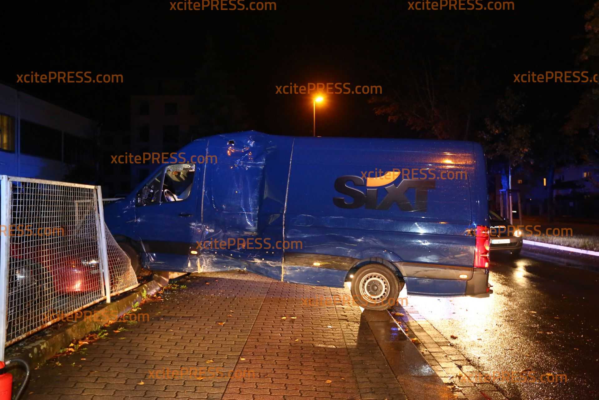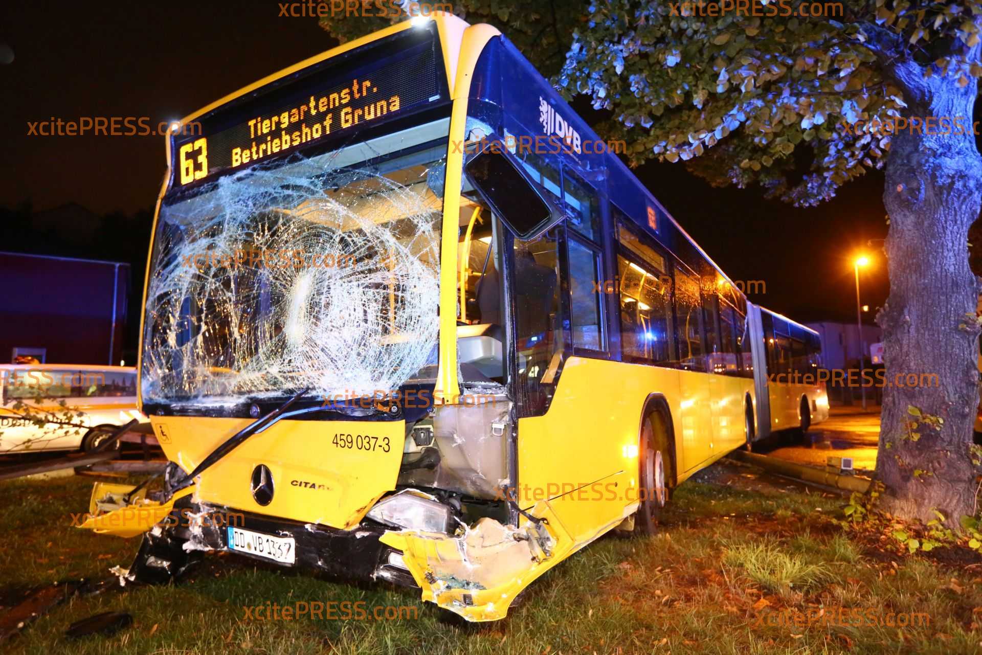 Am Donnerstagabend kam es gegen 23.10 Uhr zu einem schweren Verkehrsunfall. Nach ersten Informationen befuhr ein Transporter die Laubestraße. Offenbar missachtete an der Kreuzung Bertolt-Brecht-Allee einen vorfahrtsberechtigten Bus. Der Bus kam trotz sofort eingeleiteter Bremsmaßnahmen auf der regennassen Fahrbahn nicht mehr rechtzeitig zum Stehen und rammte den Transporter. Im weiteren Verlauf fällte der Bus eine Straßenlaterne, der Transporter landete durch den Aufprall am Zaun eines Gebrauchtwagen-Handels - beschädigte dort noch 4 PKW.