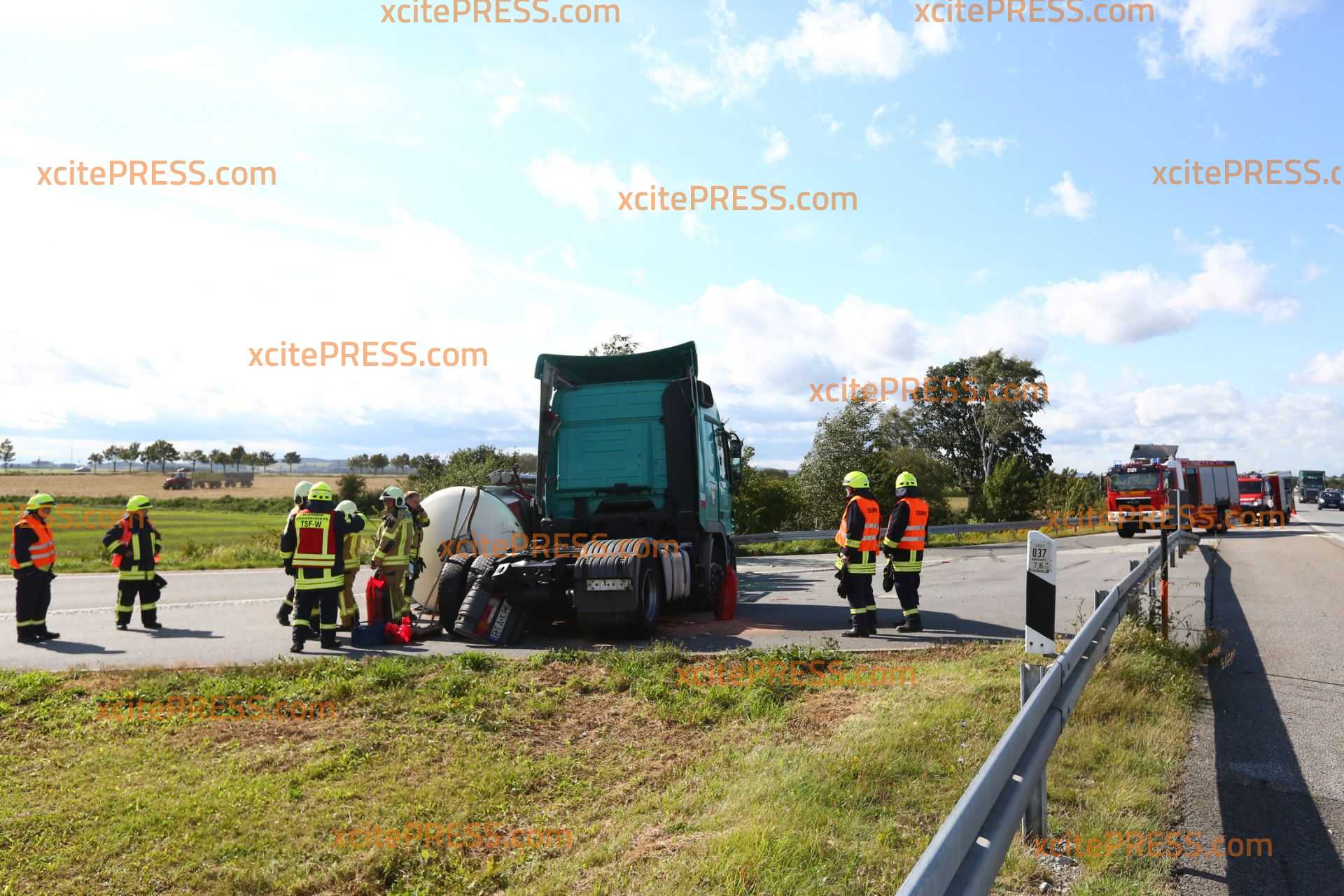 - LKW liegt in Rasthof-Einfahrt in diversen Ansichten