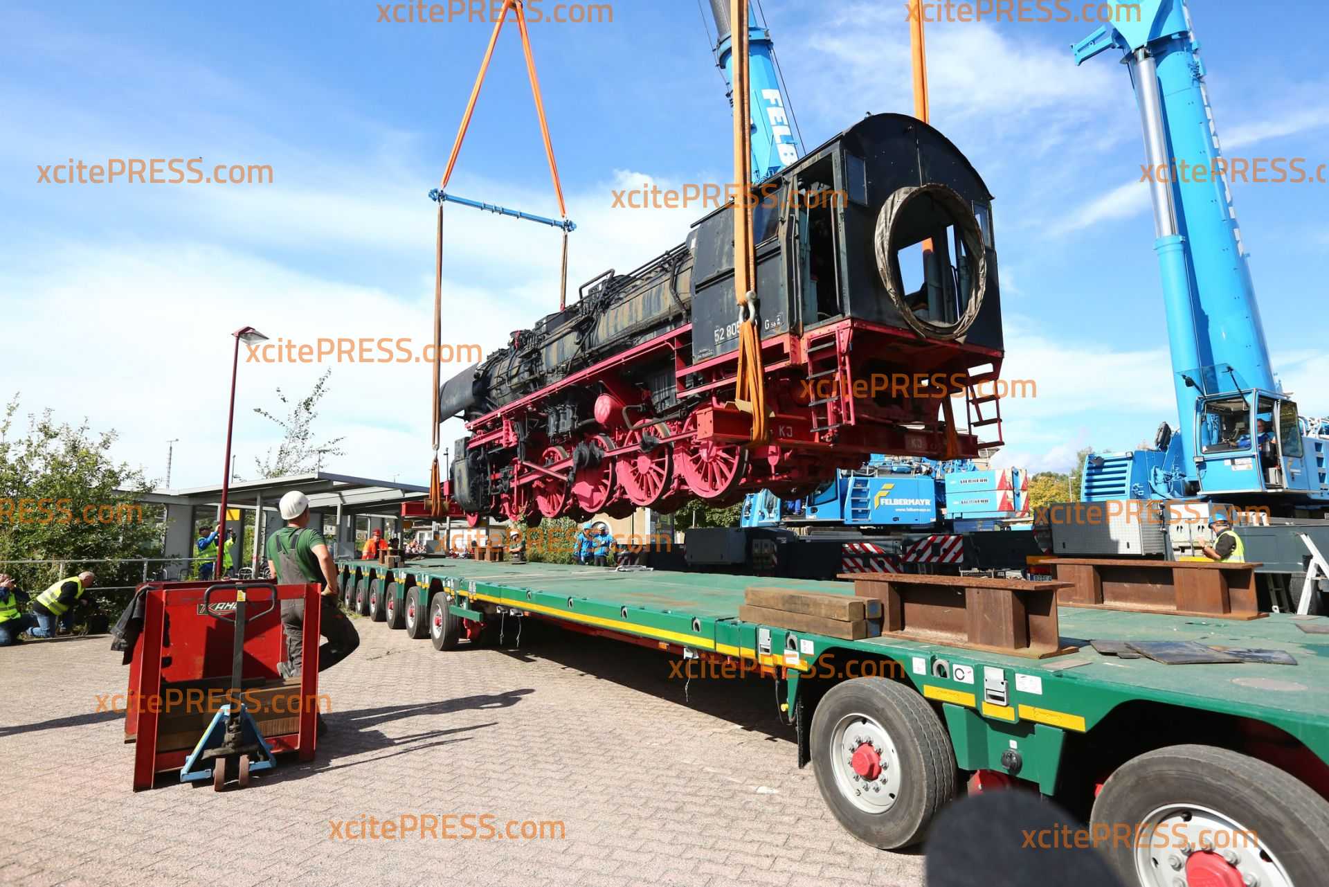 Abtransport des tonnenschweren Kollosses mit schwerer Technik