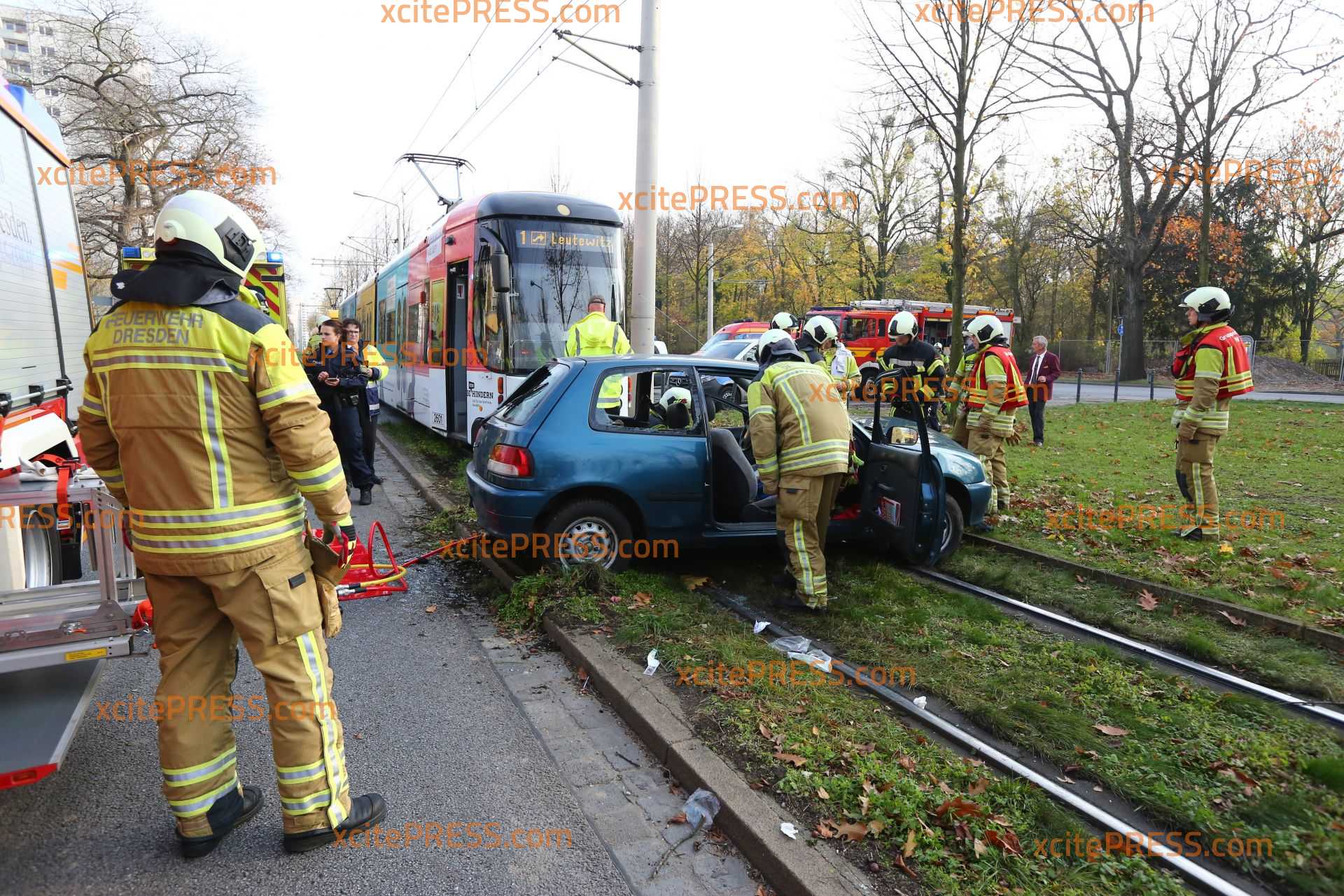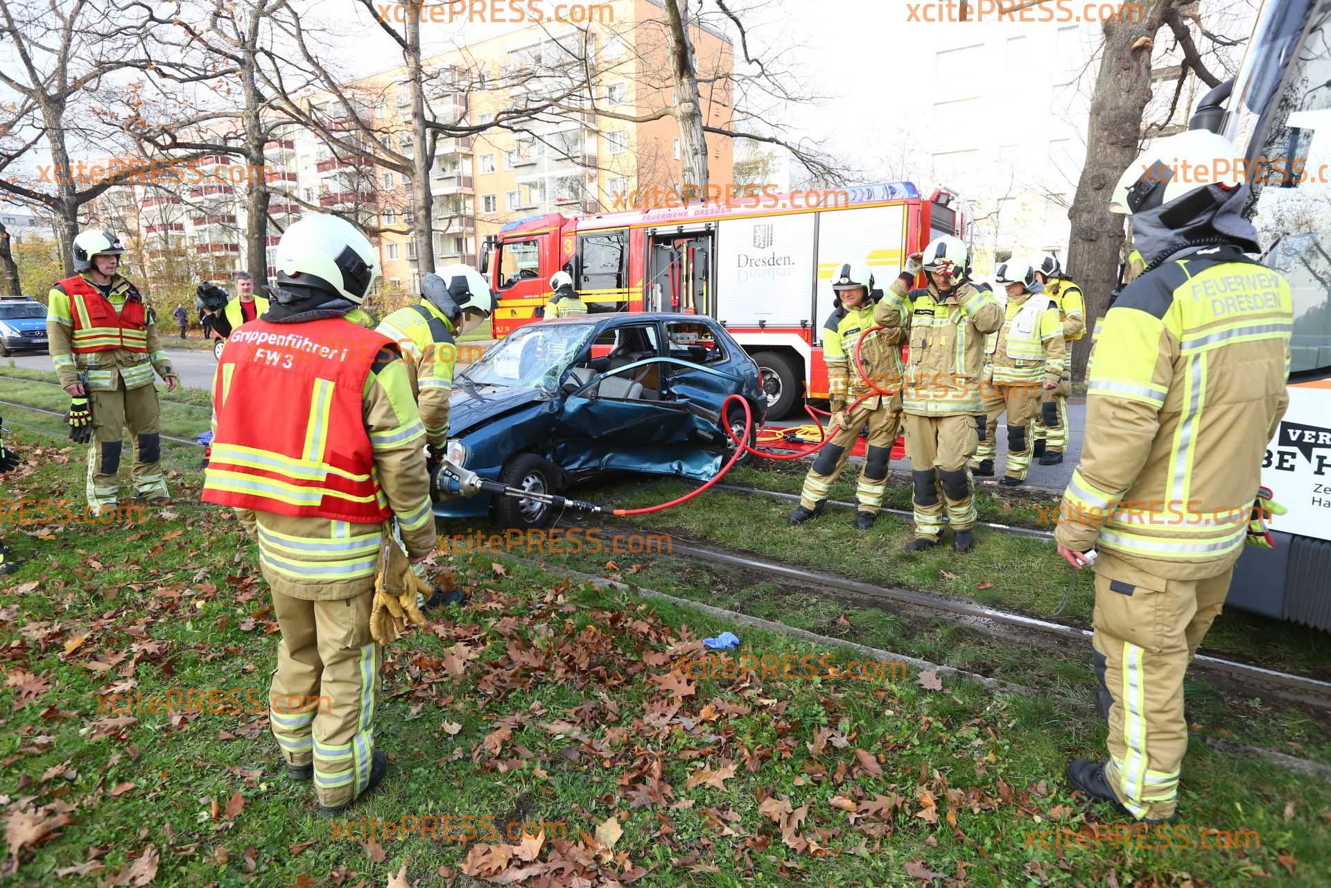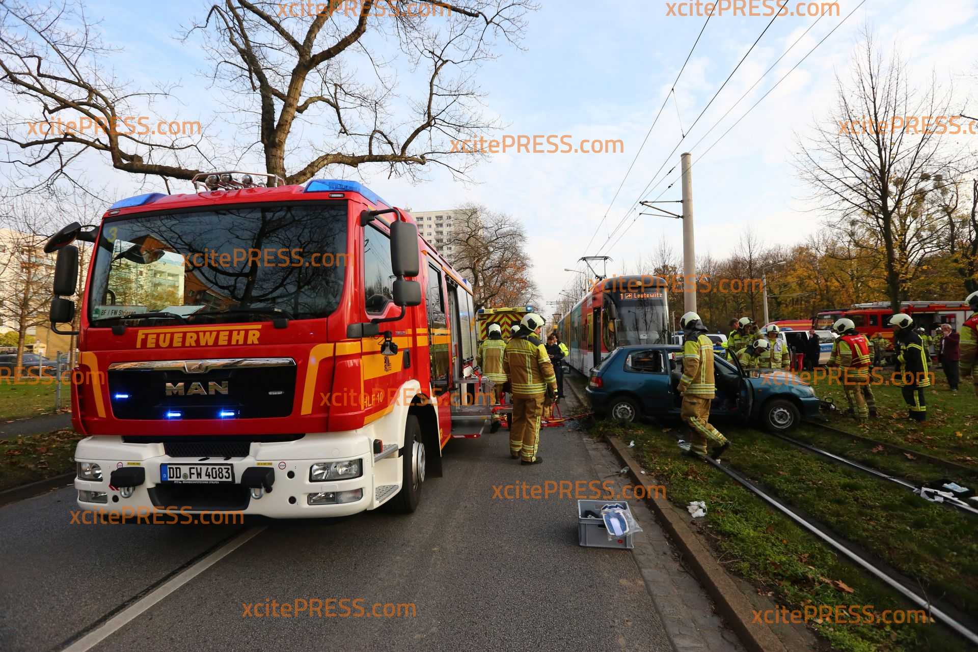 Am Sonntagnachmittag kam es gegen 14.35 Uhr an der Stübelallee zu einem schweren Unfall. An der Kreuzung Müller-Berset-Strasse übersah ersten Informationen zufolge die Fahrerin (26) eines Daihatsu eine herannahende Tram: Es kam zu Kollision. Die junge Frau musste von der Feuerwehr aus dem PKW befreit werden und wurde schwer verletzt.