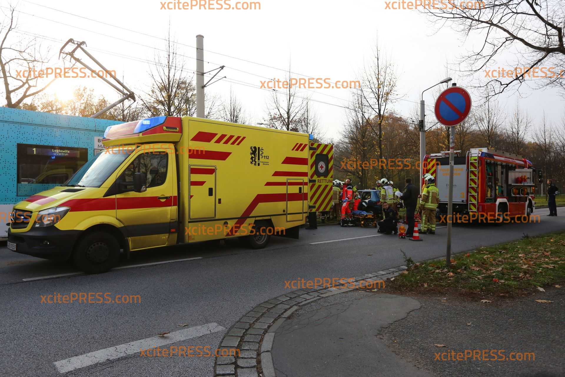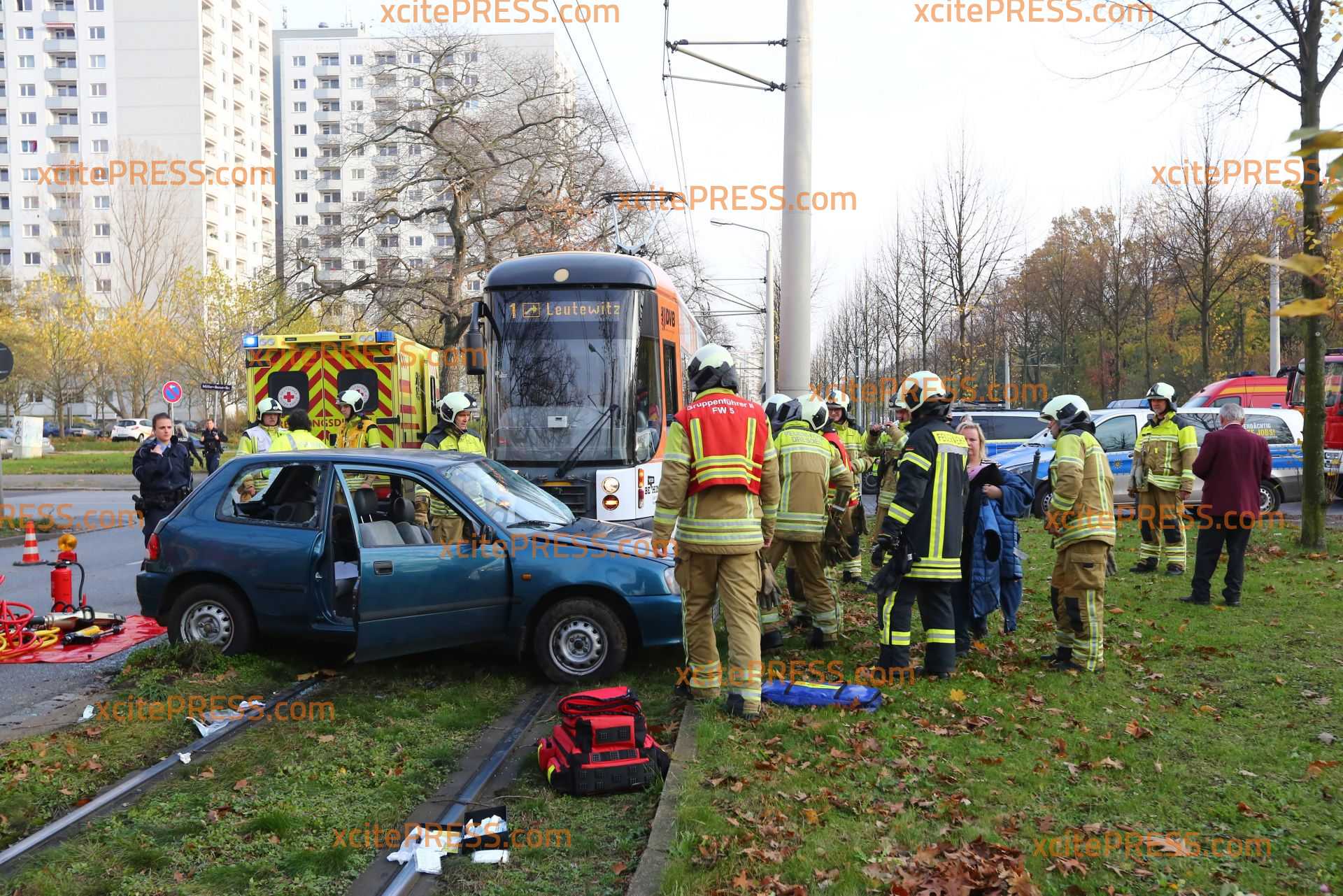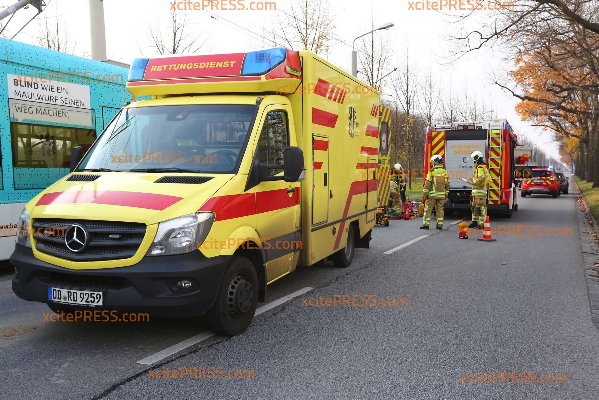 Am Sonntagnachmittag kam es gegen 14.35 Uhr an der Stübelallee zu einem schweren Unfall. An der Kreuzung Müller-Berset-Strasse übersah ersten Informationen zufolge die Fahrerin (26) eines Daihatsu eine herannahende Tram: Es kam zu Kollision. Die junge Frau musste von der Feuerwehr aus dem PKW befreit werden und wurde schwer verletzt.