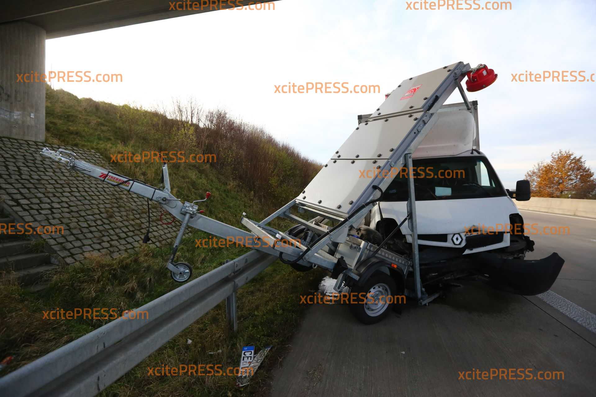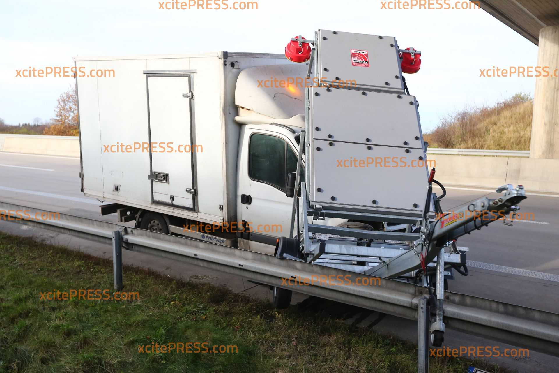 Kleintransporter kracht auf Schilderwagen
