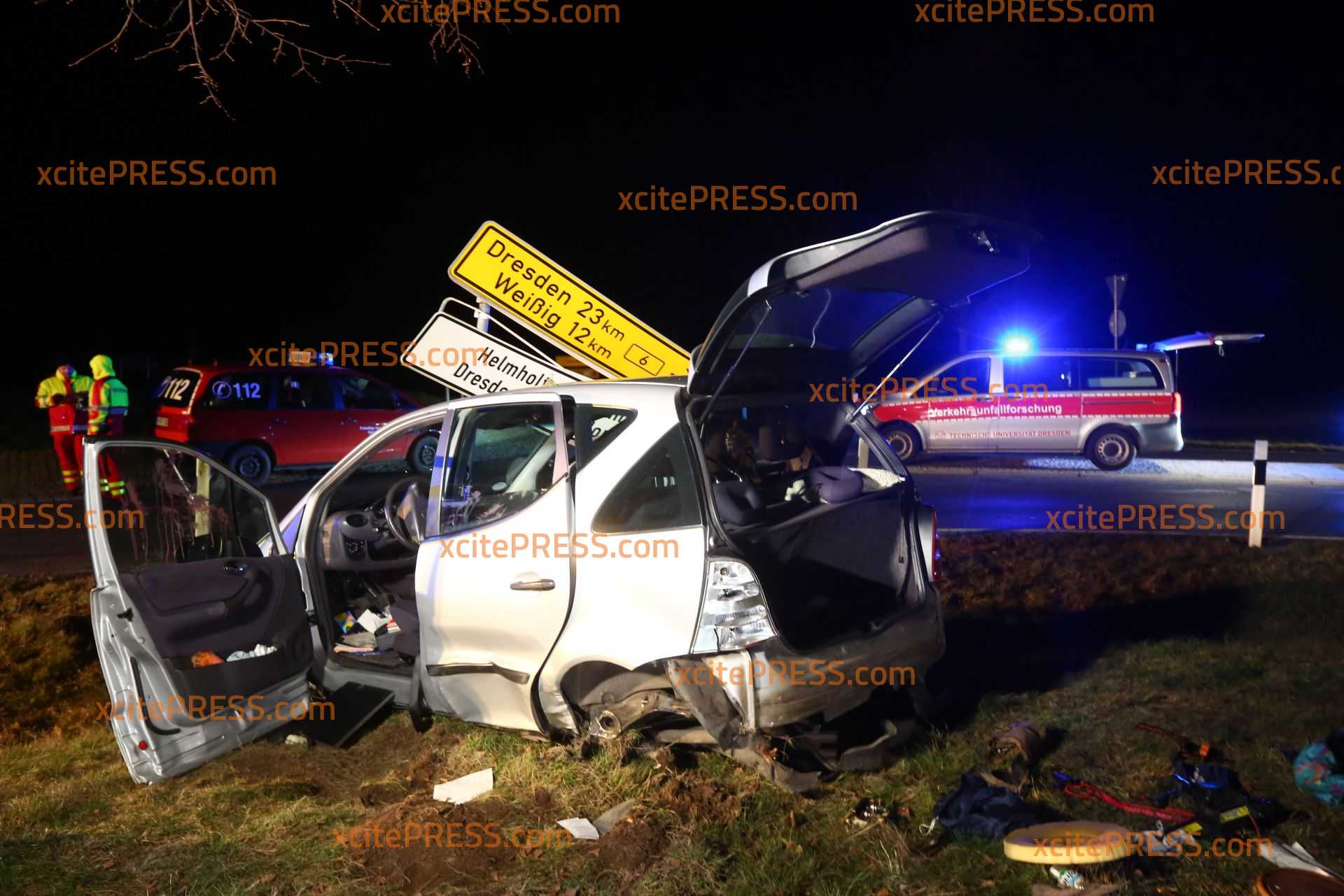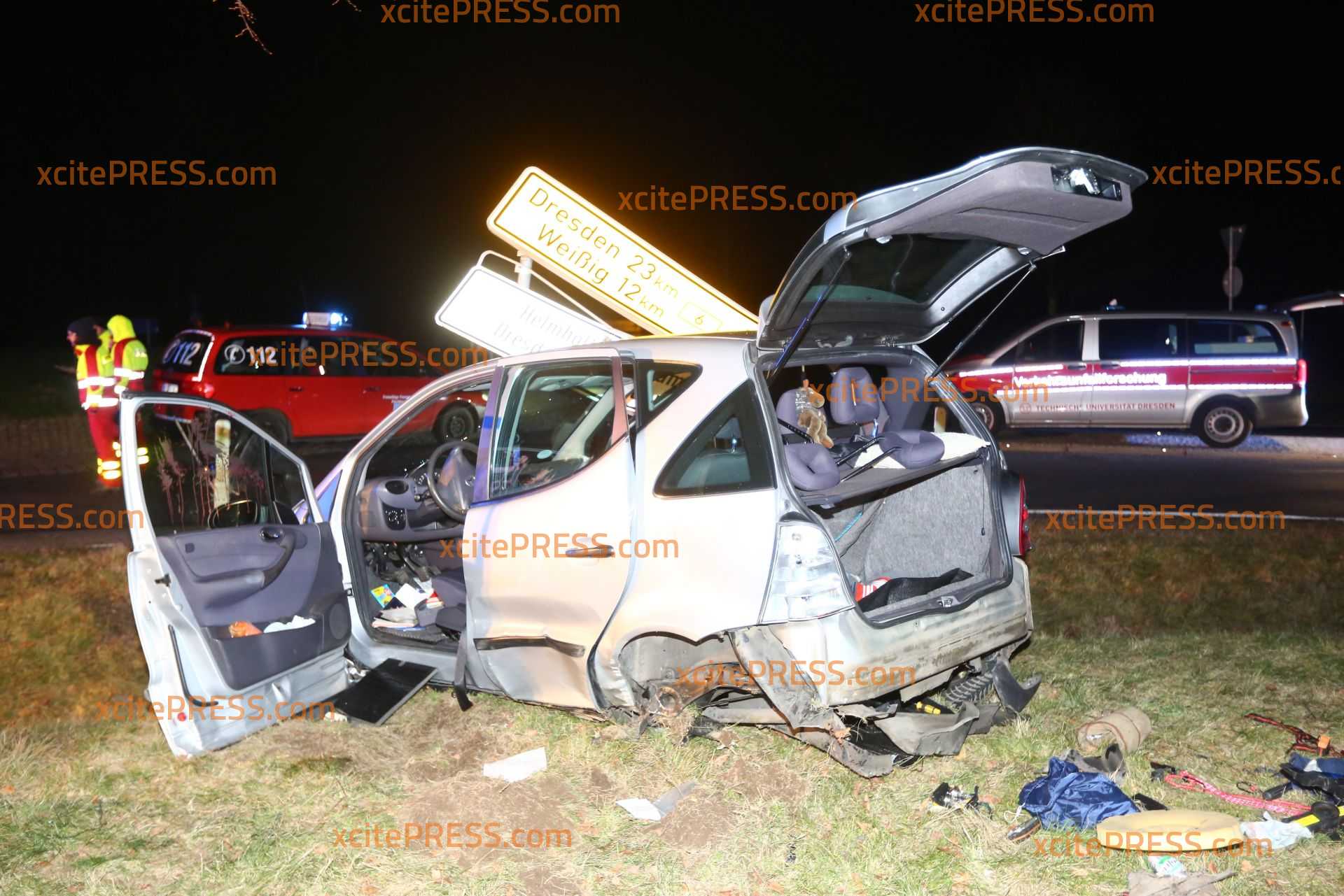 Ein schwerer Unfall ereignete sich am Mittwochabend auf der B6. Am Kreisverkehr "Fischbach Kreuz" fuhr der Fahrer einer Mercedes A-Klasse aus noch ungeklärter Ursache über den Kreisverkehr (in Richtung Dresden) und krachte anschließend gegen Straßenschilder. Dabei wurde das Fahrzeug erheblich demoliert. Zwei schwerverletzte Personen mussten in der Folge in ein Krankenhaus gebracht werden. Zur genauen Unfallursache ermittelt nun der Unfalldienst der Polizeidirektion Görlitz. Auch ein Team der Unfallforschung Dresden war am Einsatzort um den Unfall zu untersuchen.