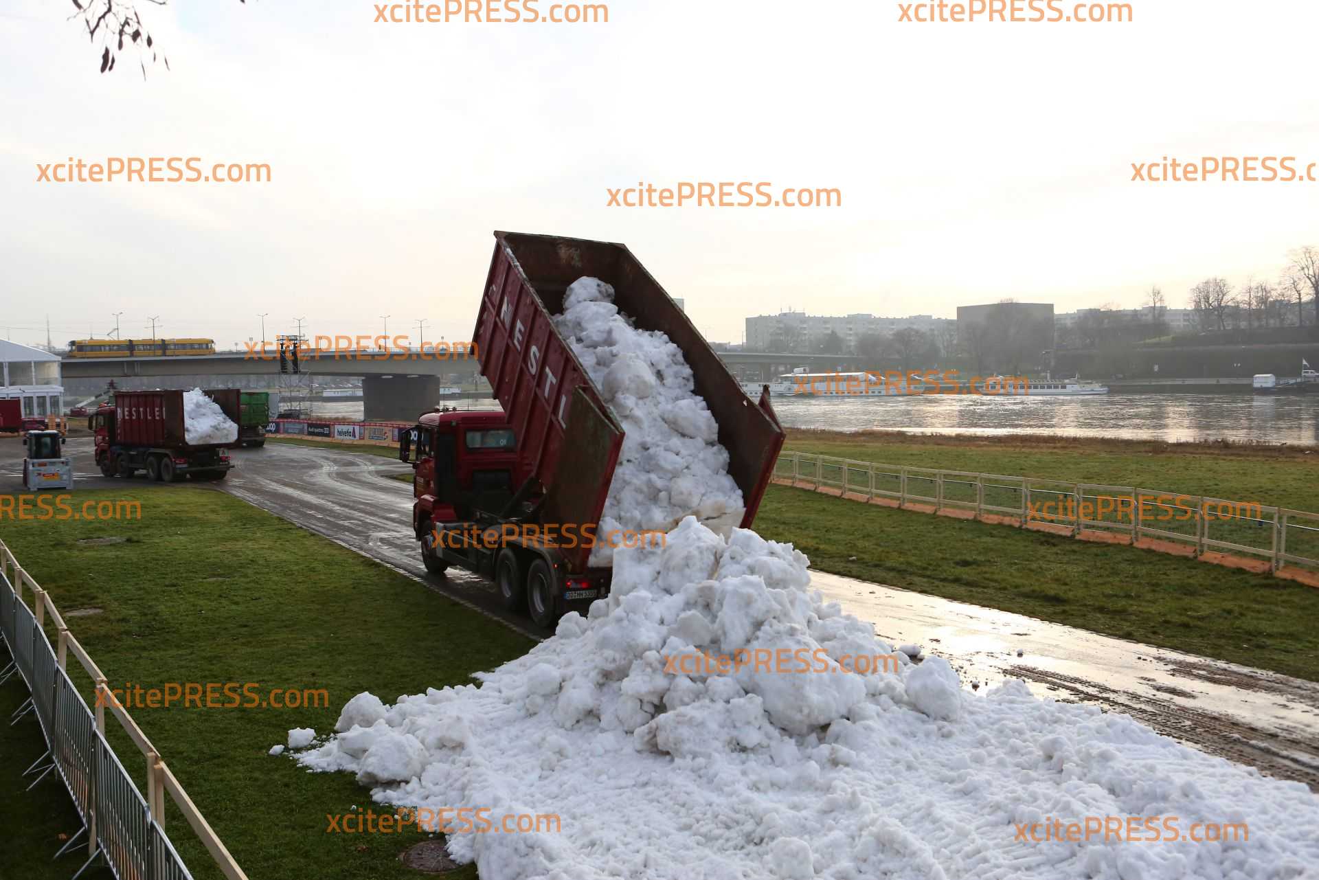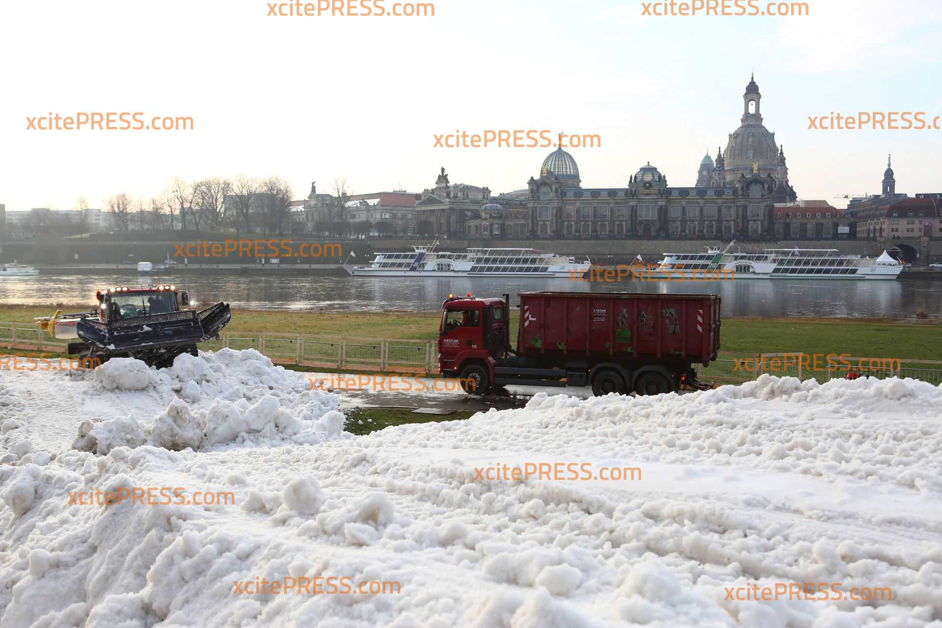 Tonnenweise Schnee wird an das Elbufer gefahren