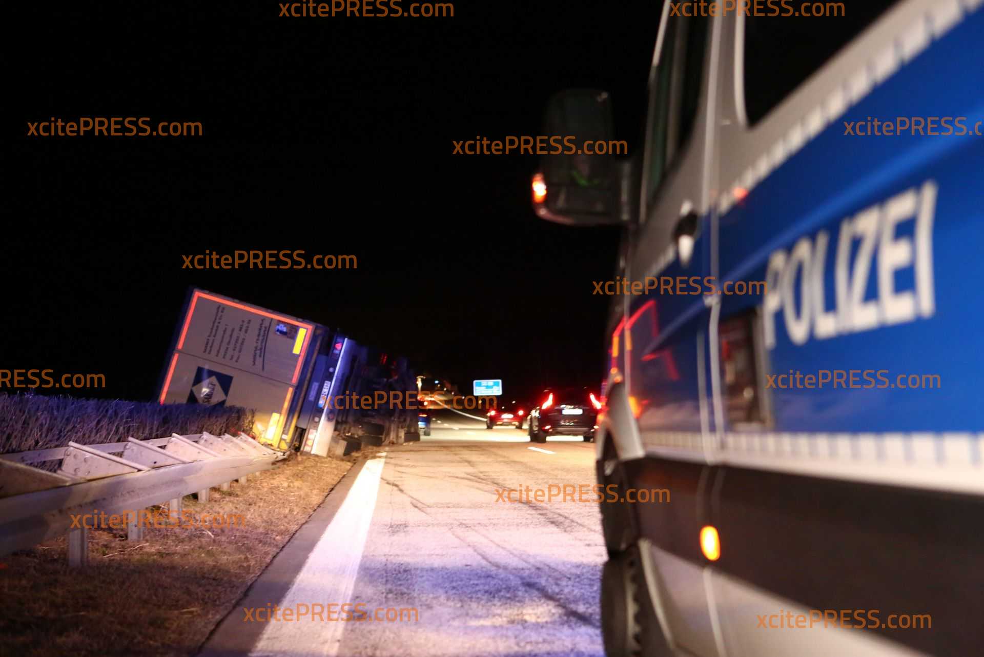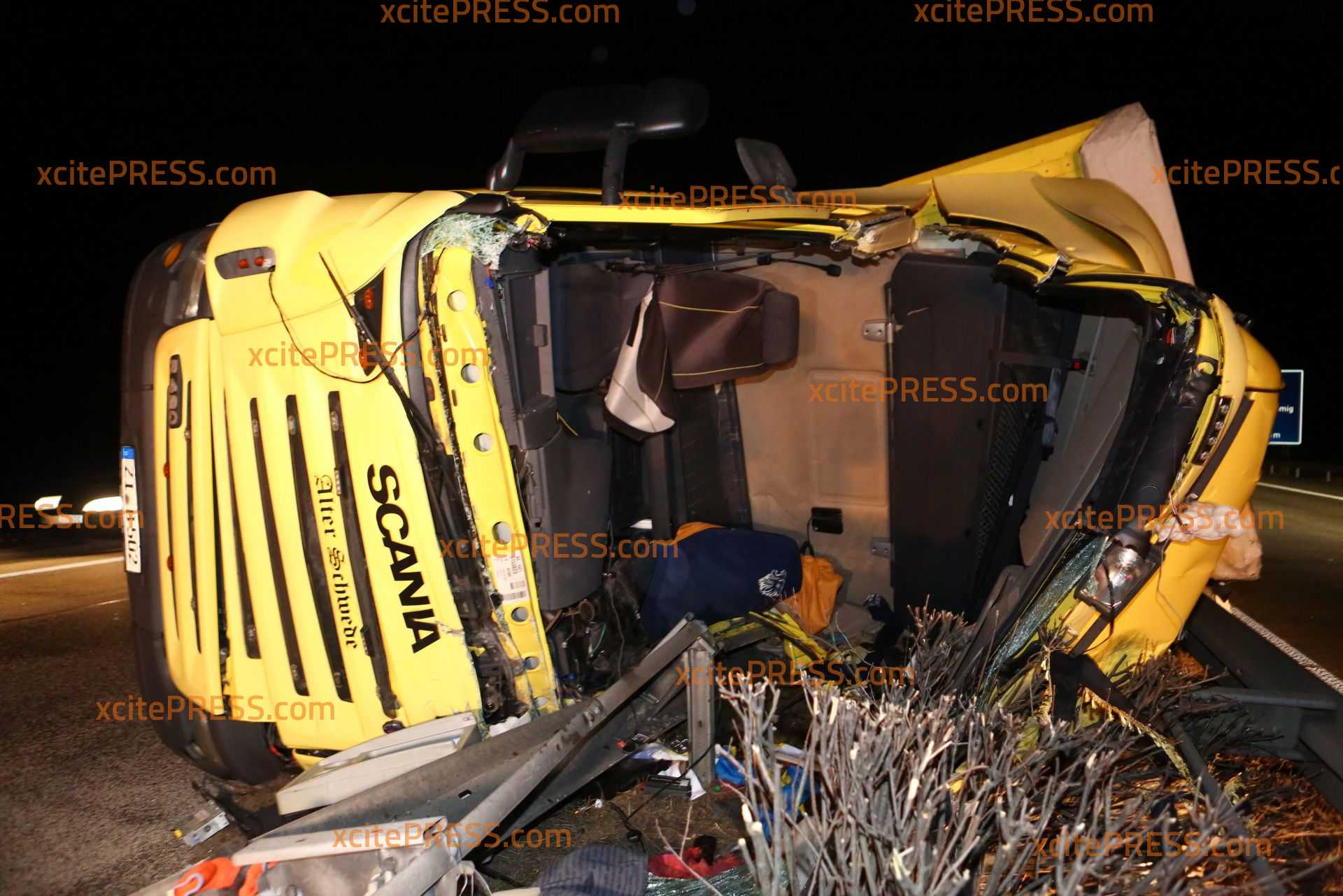 - LKW liegt in Leitplanke in diversen Einstellungen