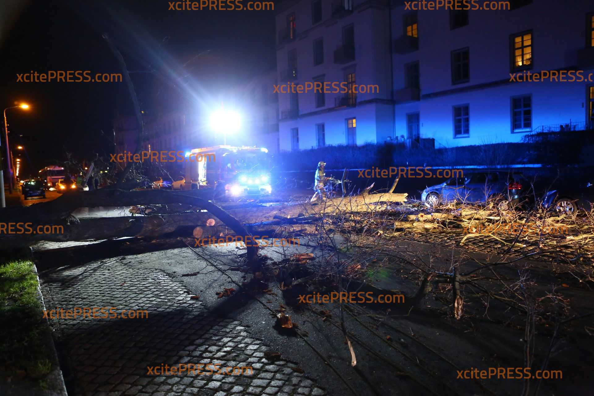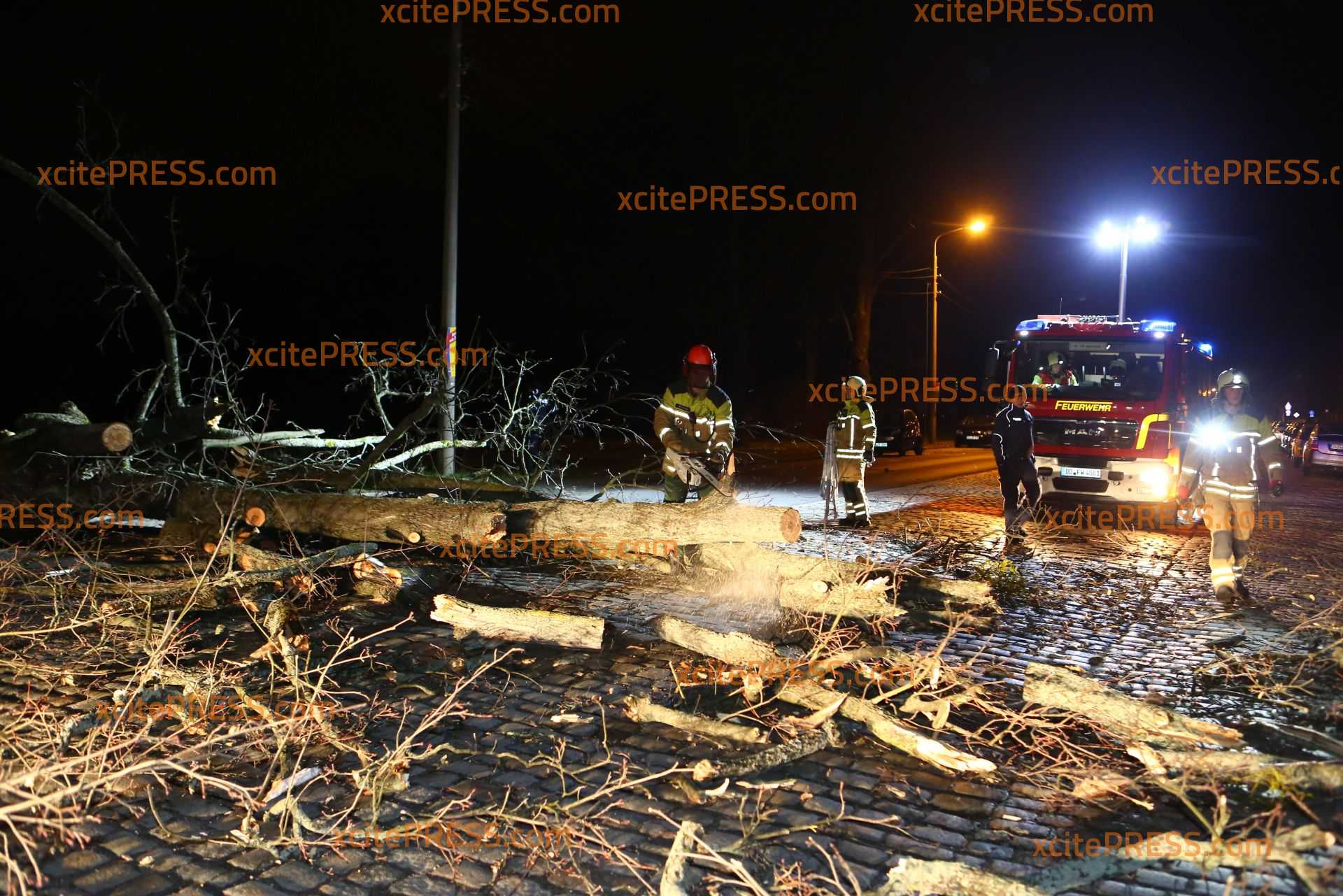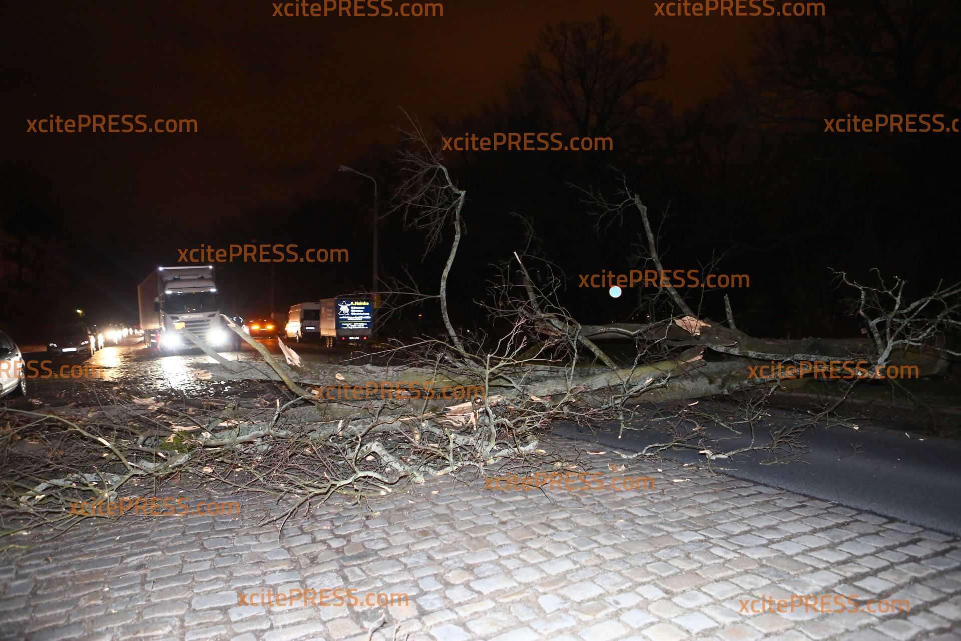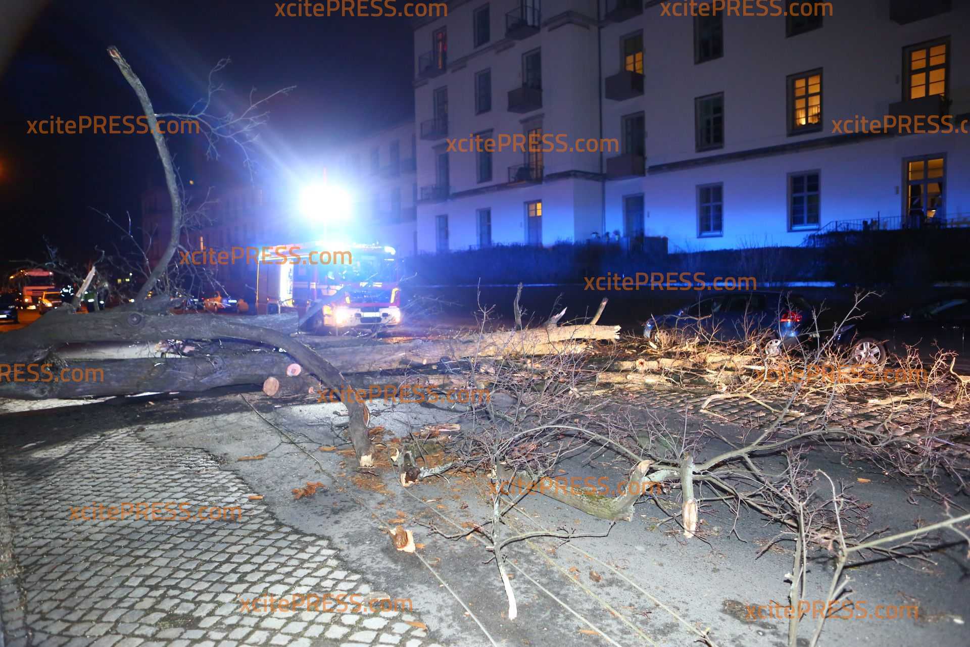 In Dresden zeigte Orkantief "Friederike" am späten Donnerstagnachmittag welche Kraft sie hatte: Mehrere Bäume wurden entwurzelt und blockierten Straßen. Die Stauffenbergallee als wichtige Verbindungsstraße zur Autobahn wurde durch am Abend ebenso durch einen umgestürzten Stamm versperrt. Die Feuerwehr konnte mit Motorsäge den dicken Stamm bei Seite schaffen.
