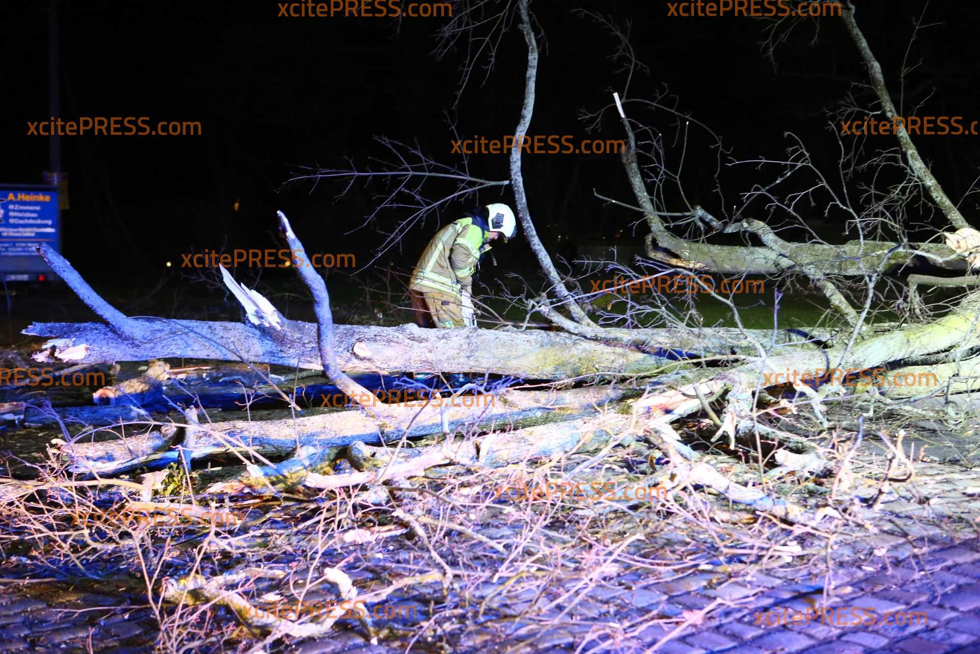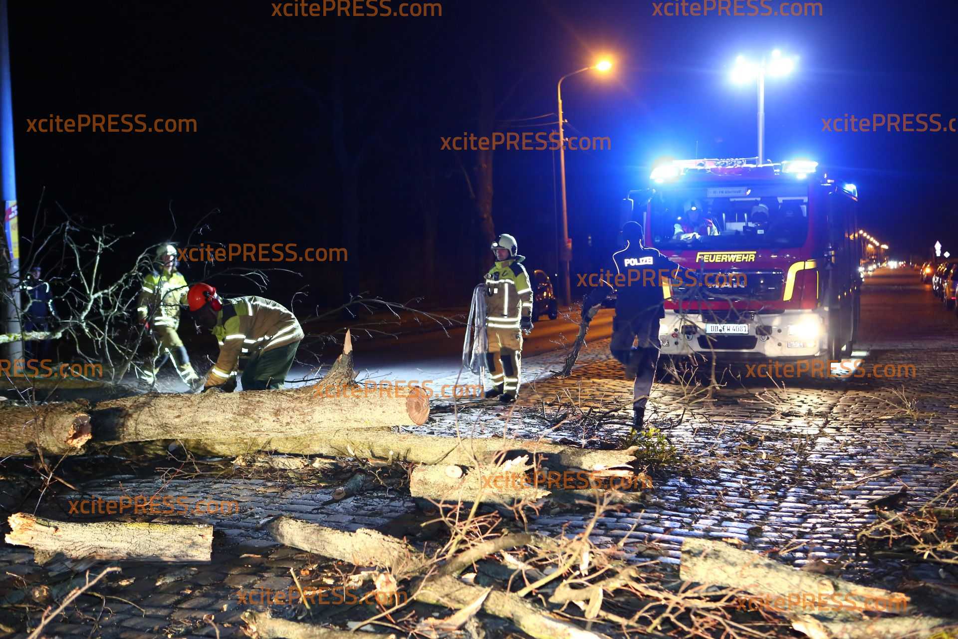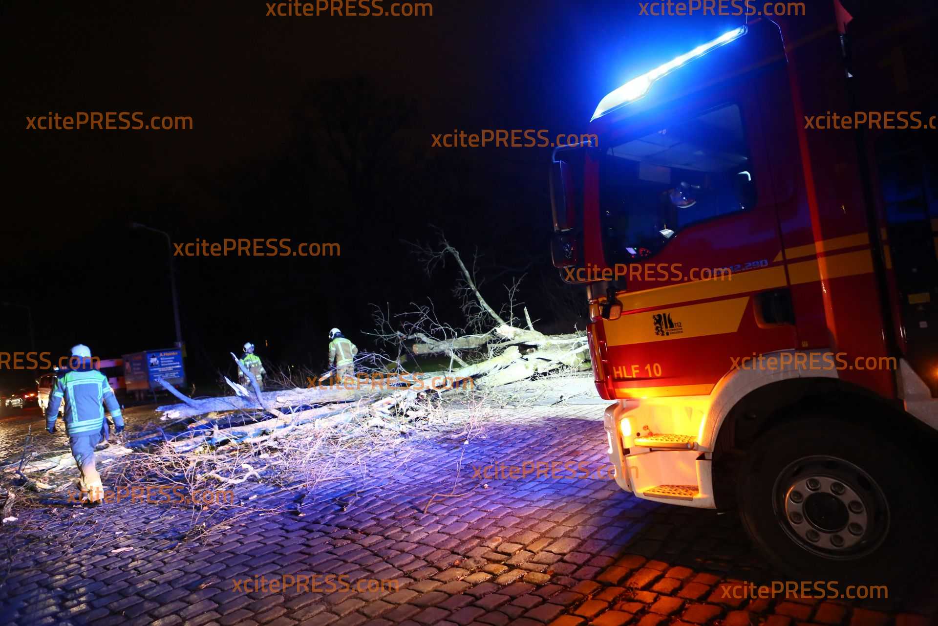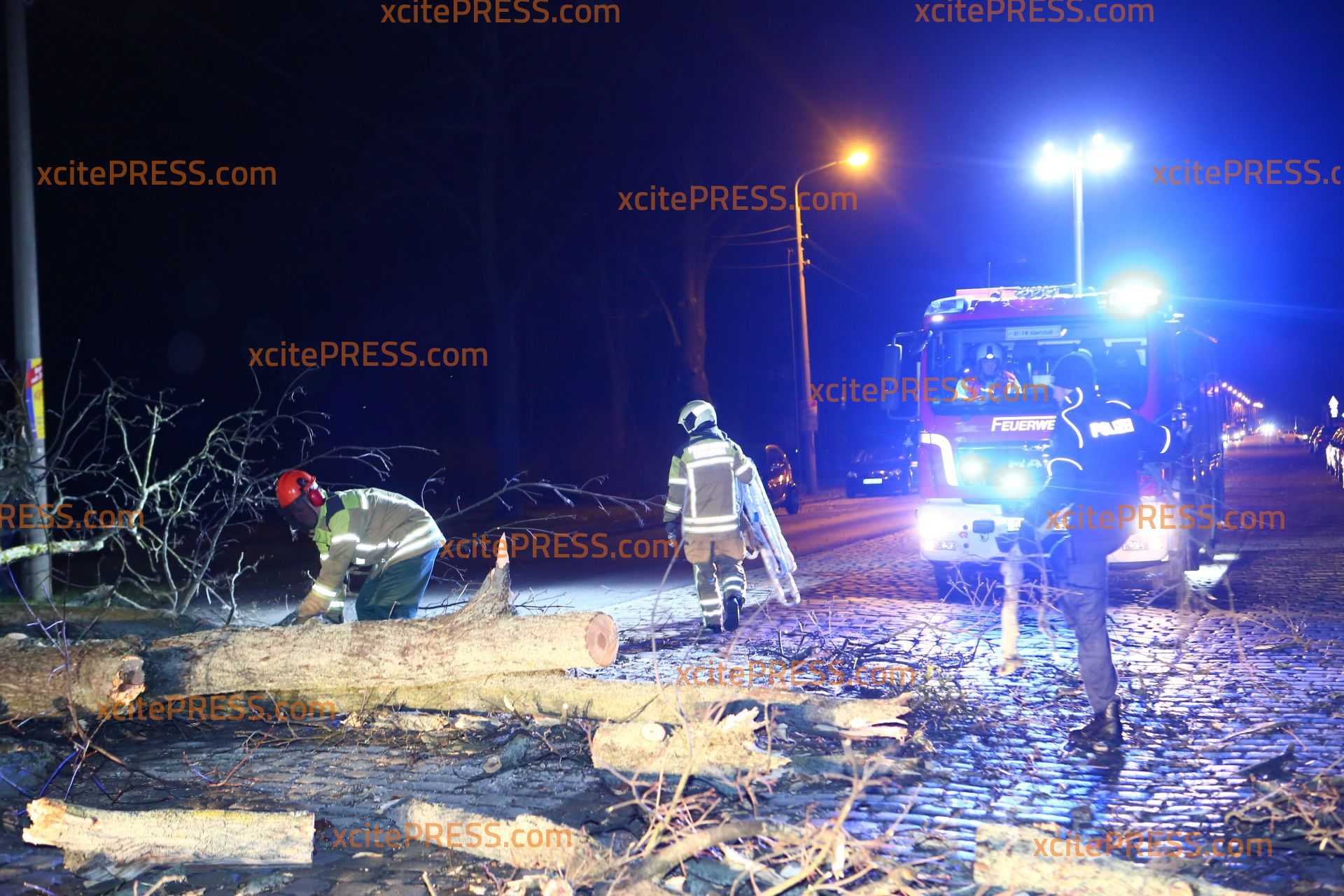 In Dresden zeigte Orkantief "Friederike" am späten Donnerstagnachmittag welche Kraft sie hatte: Mehrere Bäume wurden entwurzelt und blockierten Straßen. Die Stauffenbergallee als wichtige Verbindungsstraße zur Autobahn wurde durch am Abend ebenso durch einen umgestürzten Stamm versperrt. Die Feuerwehr konnte mit Motorsäge den dicken Stamm bei Seite schaffen.
