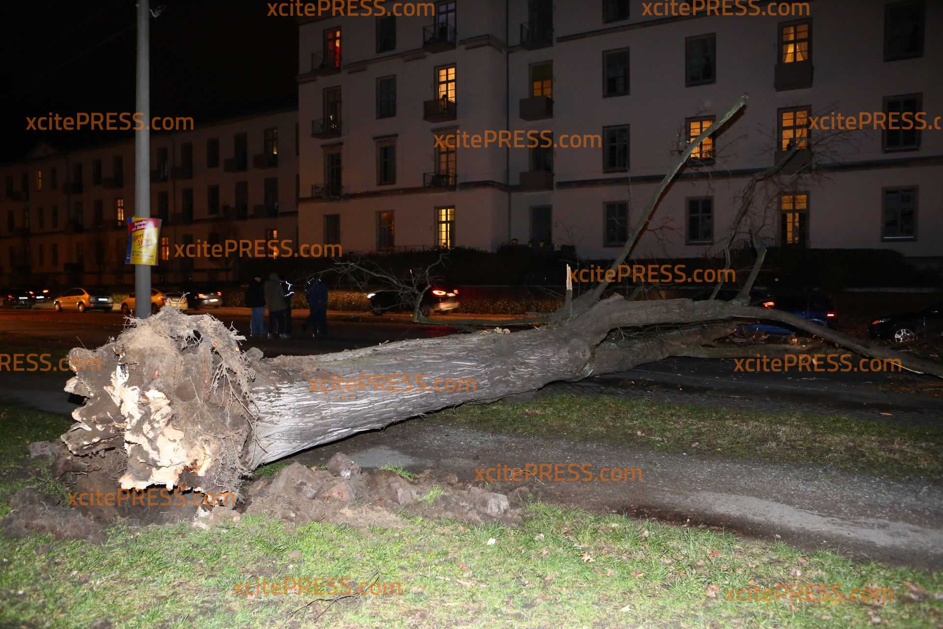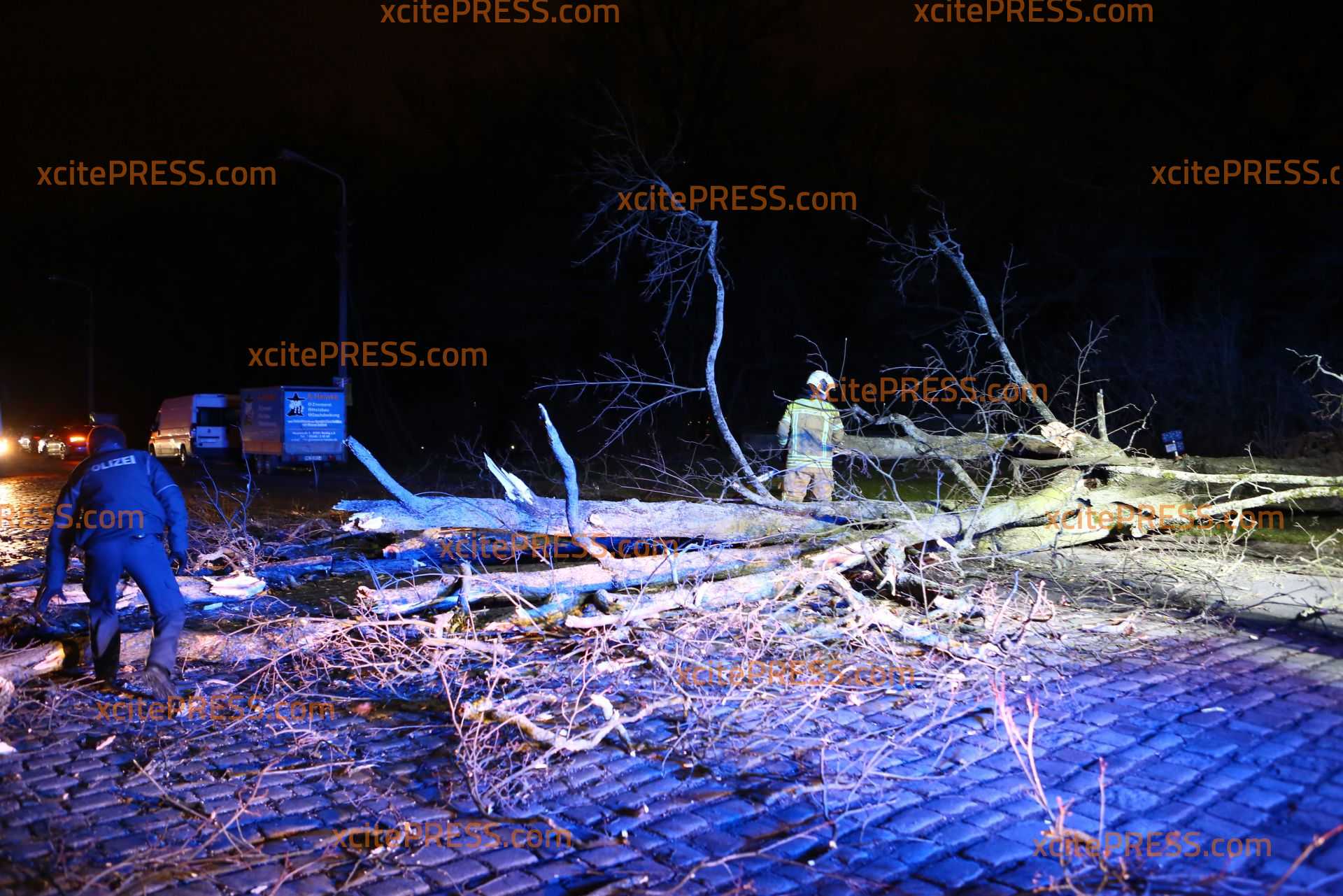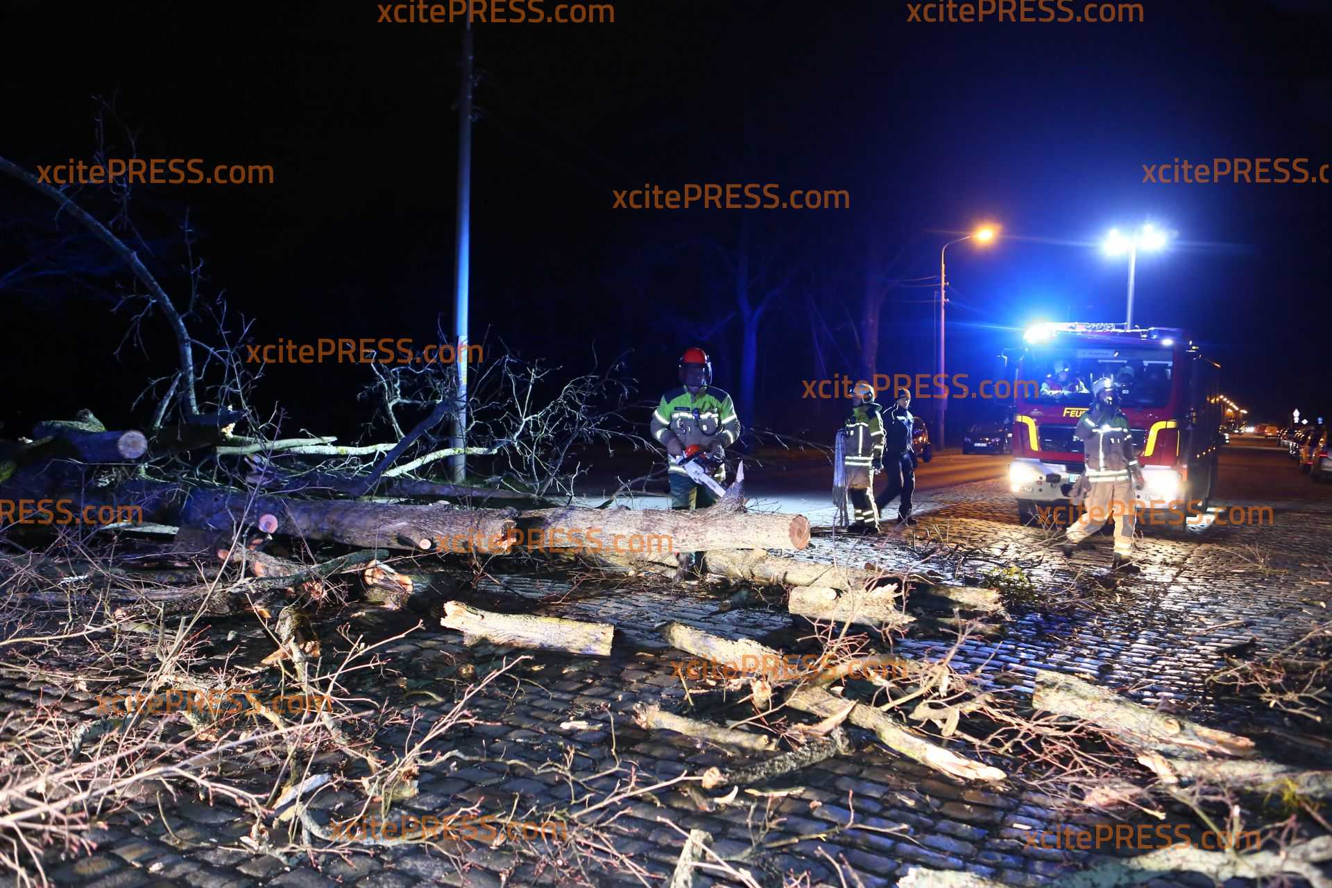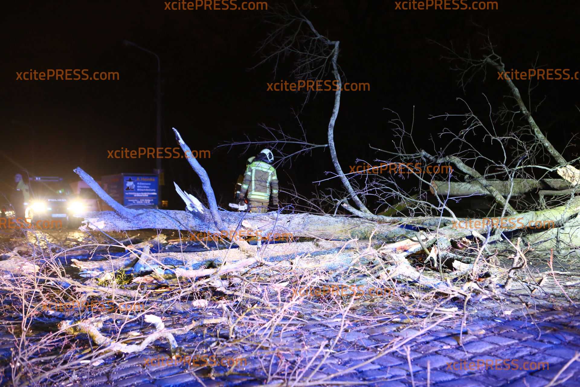 In Dresden zeigte Orkantief "Friederike" am späten Donnerstagnachmittag welche Kraft sie hatte: Mehrere Bäume wurden entwurzelt und blockierten Straßen. Die Stauffenbergallee als wichtige Verbindungsstraße zur Autobahn wurde durch am Abend ebenso durch einen umgestürzten Stamm versperrt. Die Feuerwehr konnte mit Motorsäge den dicken Stamm bei Seite schaffen.