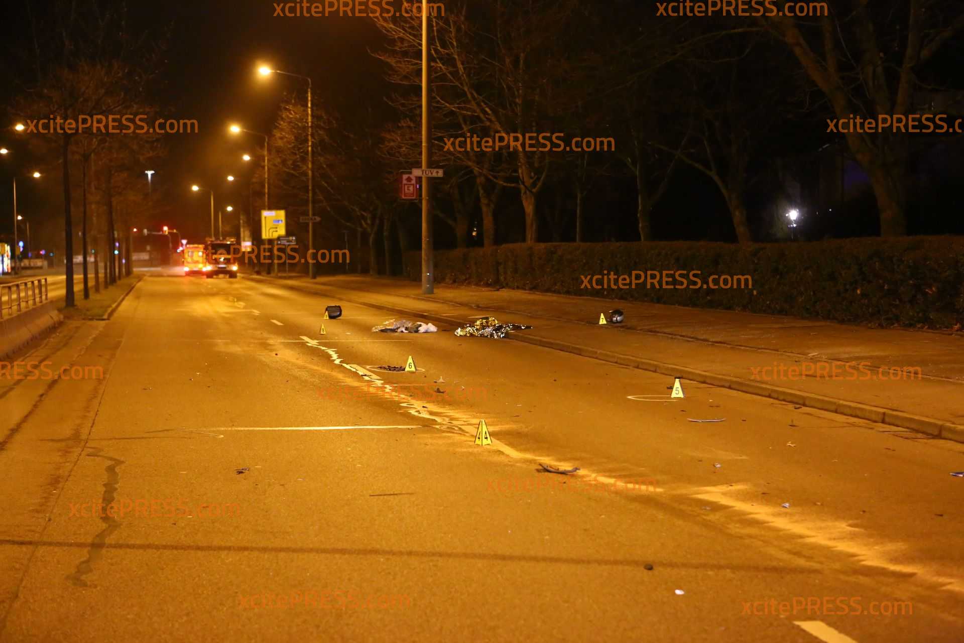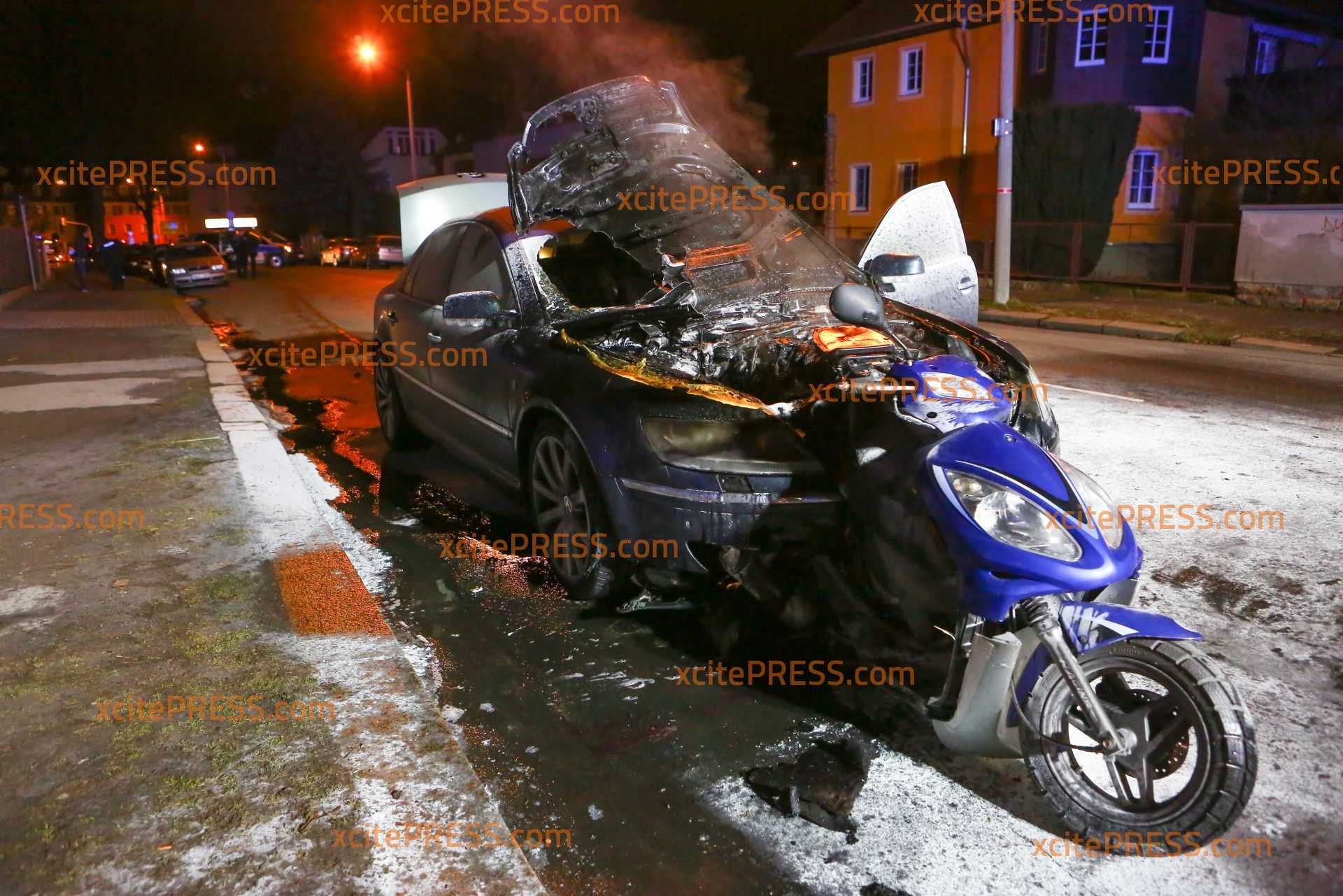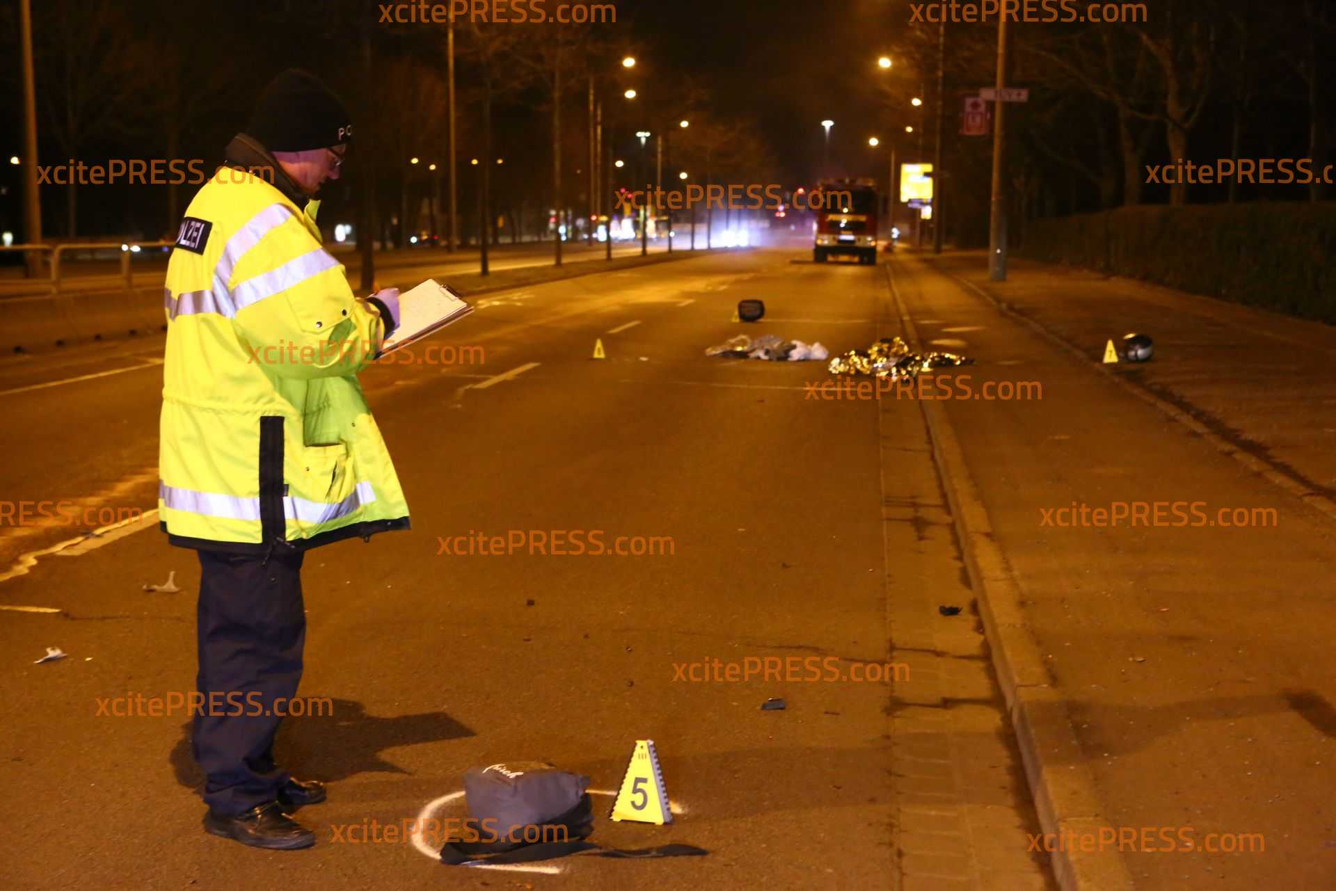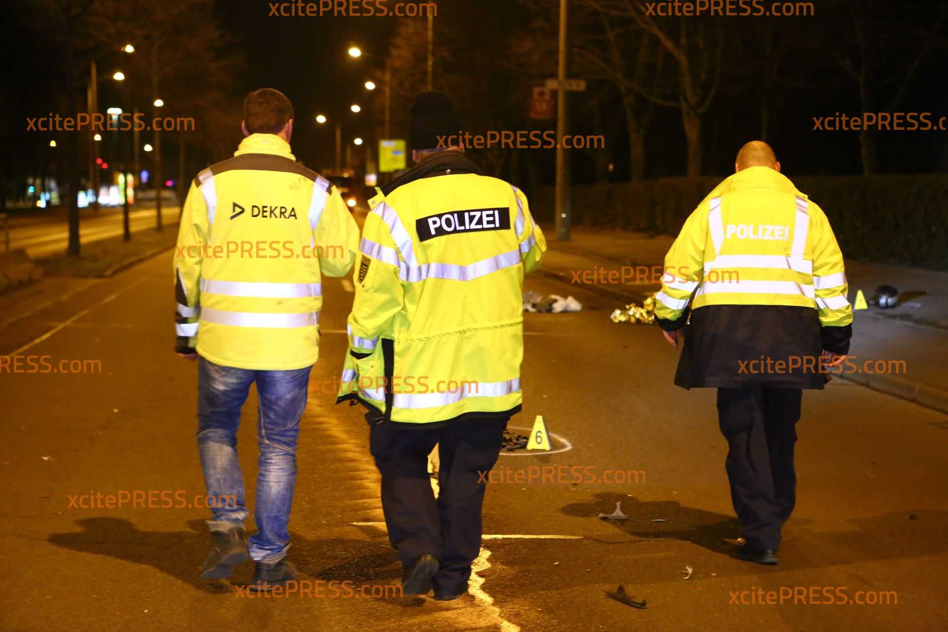 Ein furchtbarer Unfall ereignete sich am Sonntagabend 20.50 Uhr am Zellescher Weg in Dresden. Am Zellescher Weg (Höhe Tizianstraße) kollidierte der Fahrer eines VW Phaeton mit einem Motorroller. Der Fahrer des Motorroller flog meterweit durch die Luft und landete auf dem Asphalt. Anstatt anzuhalten fuhr der Fahrer des VW einfach weiter, schleifte den Motorroller etwa 1,5 Kilometer über die Teplitzer Straße bis letztlich zur Gostritzer Strasse, wo das Moped und Fahrzeug Feuer fing. Offenbar rannte der Fahrer des PKW zunächst weg. Ein Anwohner löschte zunächst den Brand mit Feuerlöschern, bevor ihn die Feuerwehr unterstützte.