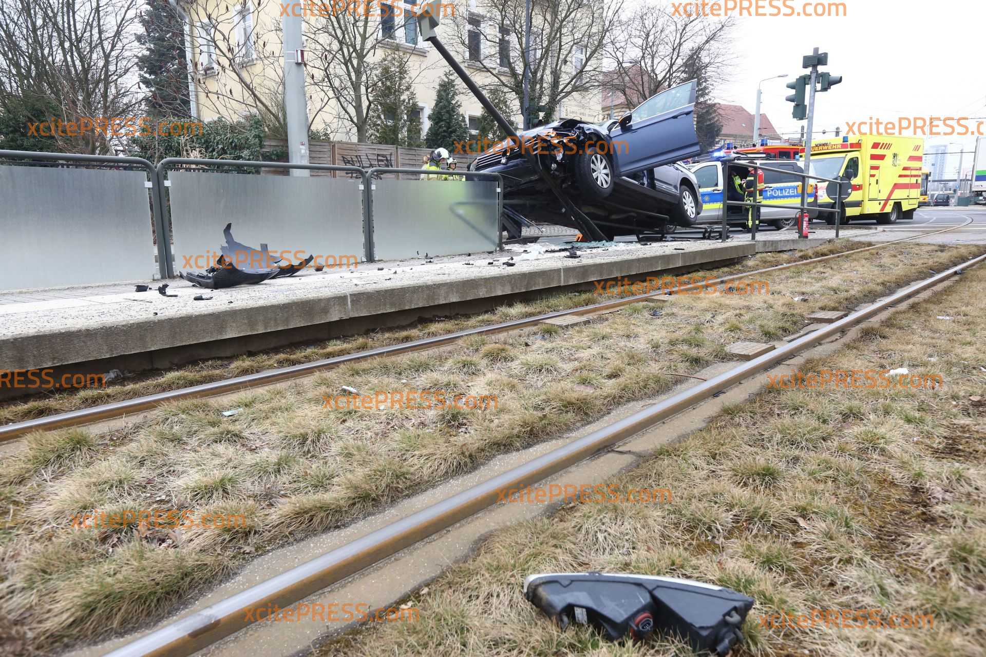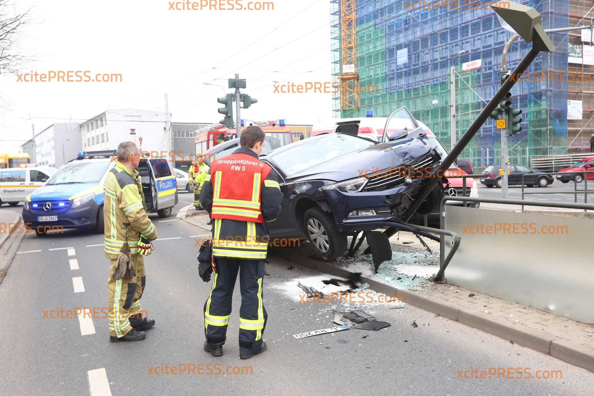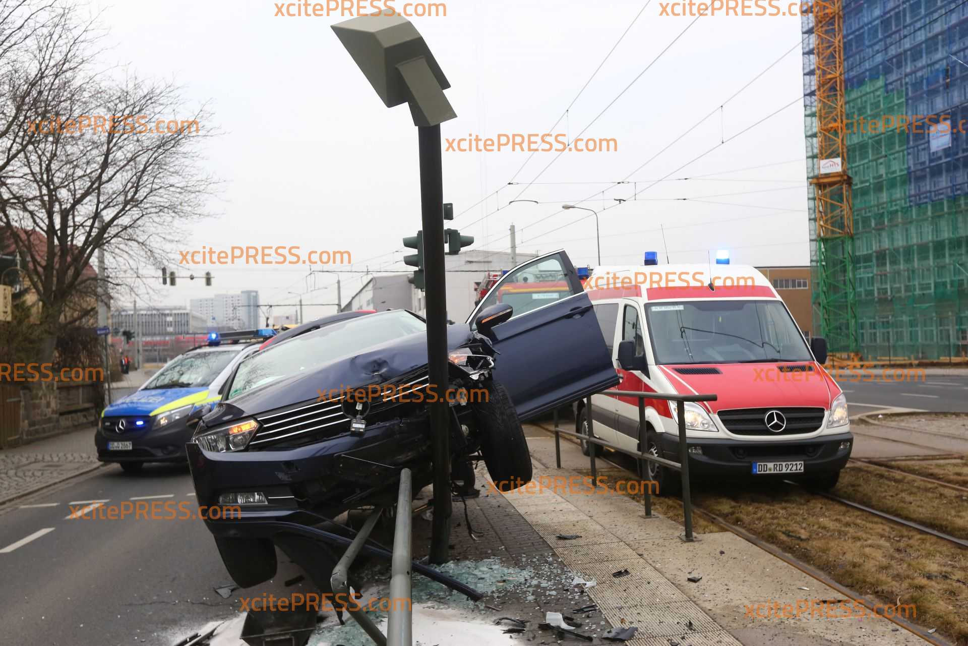 Ein kurioser Unfall ereignete sich am Montagmittag gegen 11.10 Uhr an der Breitscheidstrasse in Dresden. Auf der Straße Moränenende kam der Fahrer eines VW aus noch offenbar auf Grund gesundheitlicher Probleme nach links von der Fahrbahn ab, fuhr ein Stück auf den Fußweg und infolge dessen auf die Absperrung einer Straßenbahnhaltestelle. Eine Straßenlaterne kam das Fahrzeug schließlich zum Stehen. Der Fahrer wurde in ein Krankenhaus gebracht. Die Feuerwehr sicherte die Unfallstelle ab. Die Polizei muss nun ermitteln wie es zu dem Unfall kam.