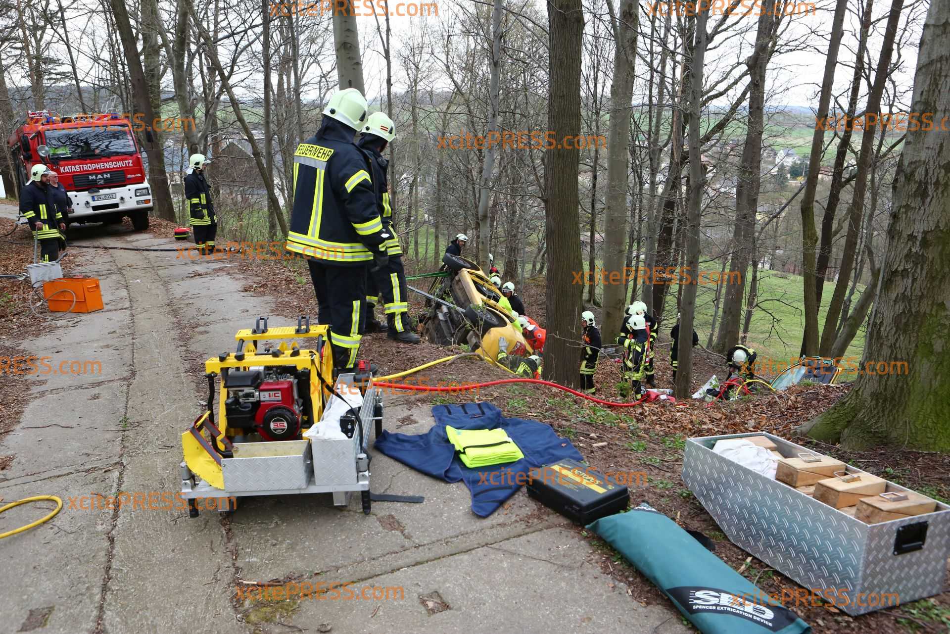 Ein schwerer Unfall hat sich am Donnerstagmorgen in Rabenau OT Oelsa ereignet. Auf einer Plattenstraße unweit der Bergstraße war ein Chevrolet von der Fahrbahn abgekommen und in eine Baumgruppe gekracht. Der Wagen schleuderte gegen Bäume und blieb seitlich auf einem Hang liegen. Die Feuerwehr musste schwere Technik einsetzen, um den Wagen zu sichern und den eingeklemmten Fahrer zu befreien. Fast 45 Minuten war dieser in dem Wrack eingeschlossen. Rettungskräfte brachten ihn schwer verletzt in ein Krankenhaus. Die Polizei hat die Ermittlungen aufgenommen.