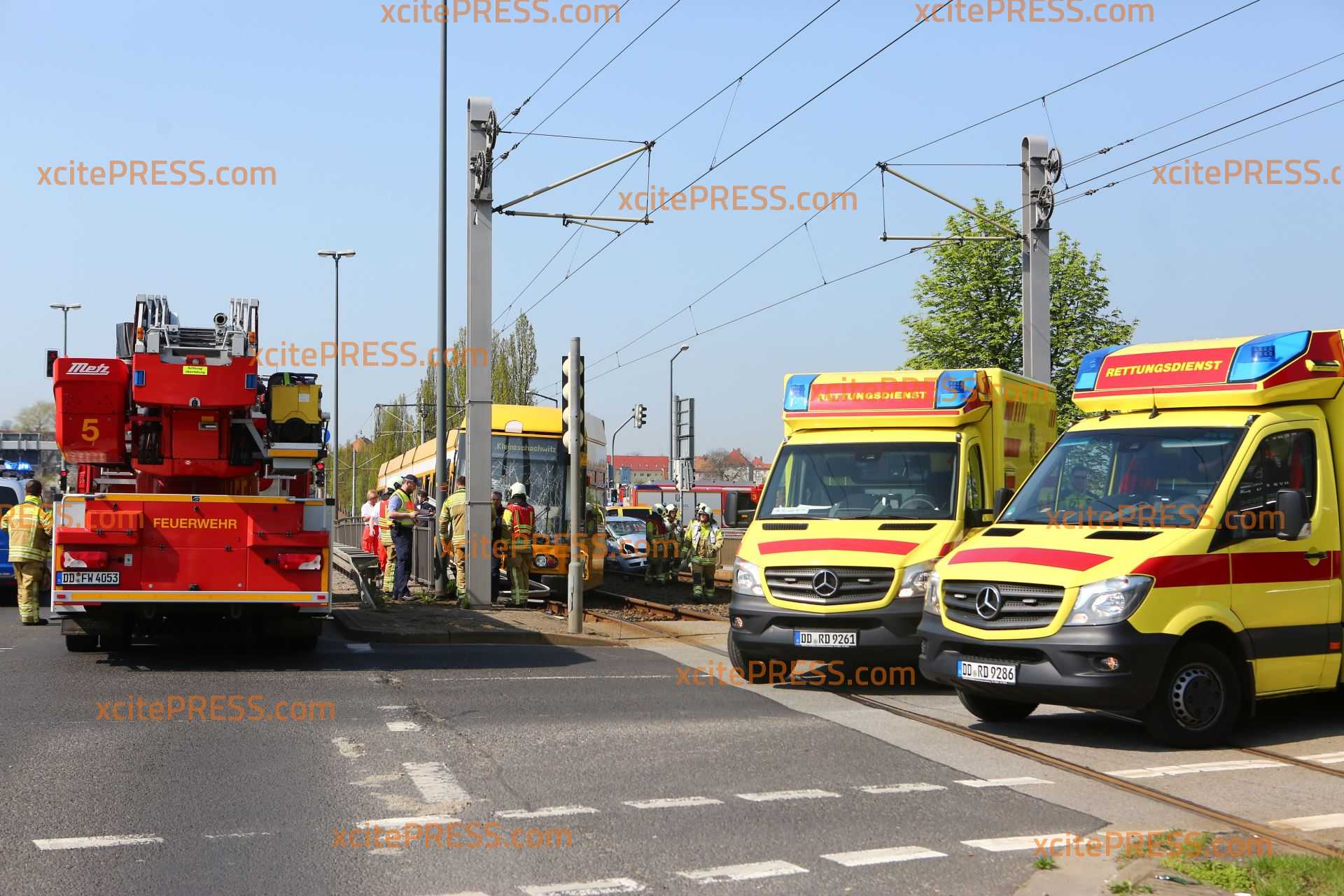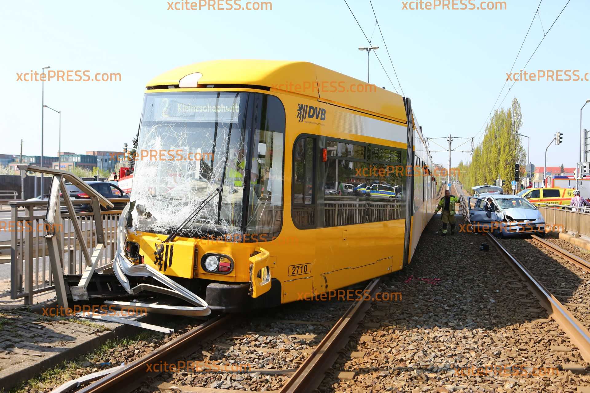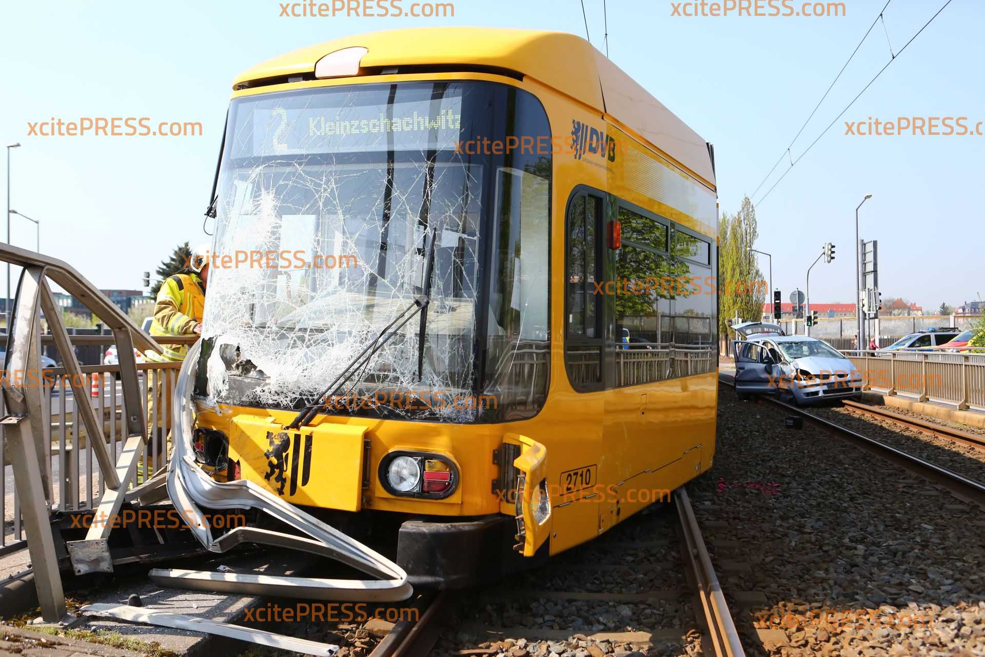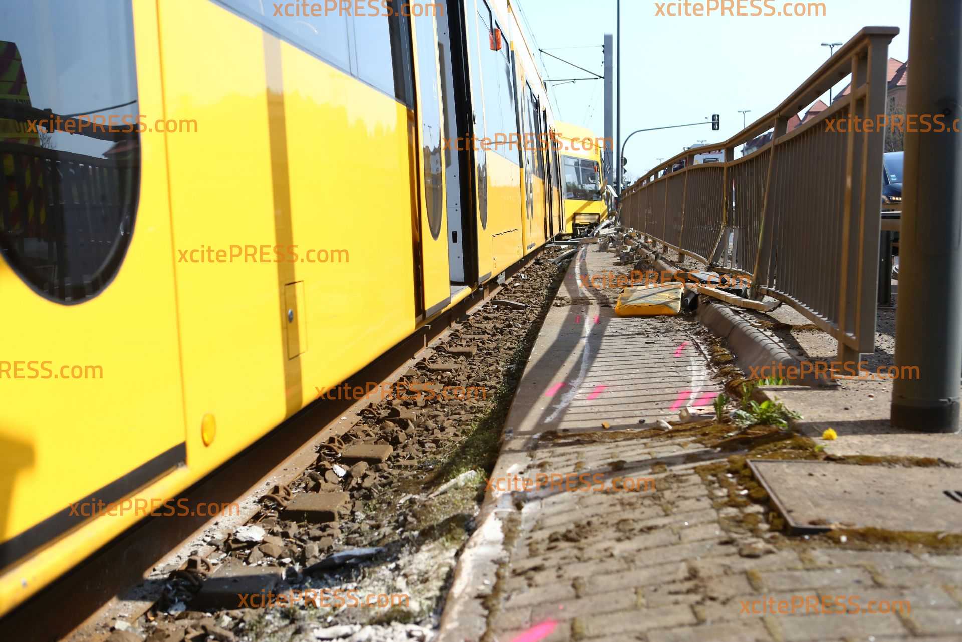 Zu einem schweren Straßenbahnunfall kam es am Donnerstagmittag gegen 10.50 Uhr. Aus noch ungeklärter Ursache kollidierten ein PKW und eine Straßenbahn an der Kreuzung Fröbelstraße / Emerich-Ambros-Ufer. Die Straßenbahn "mähte" in der Folge etliche Pfeiler eines Brückengeländer ab und entgleiste. Mindestens 2 Personen wurde verletzt. Die Einsatzkräfte sind mit einem Großaufgebot angerückt.