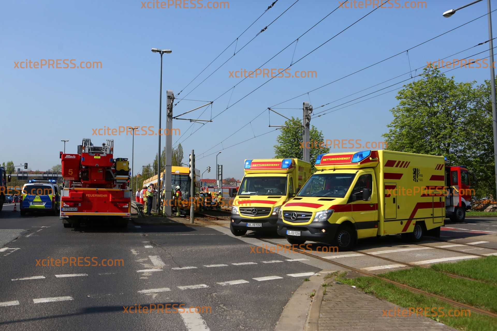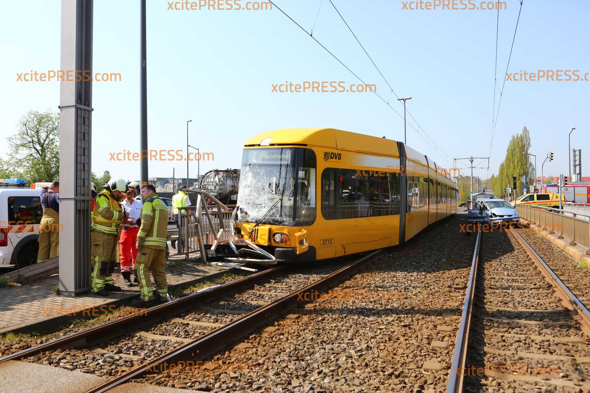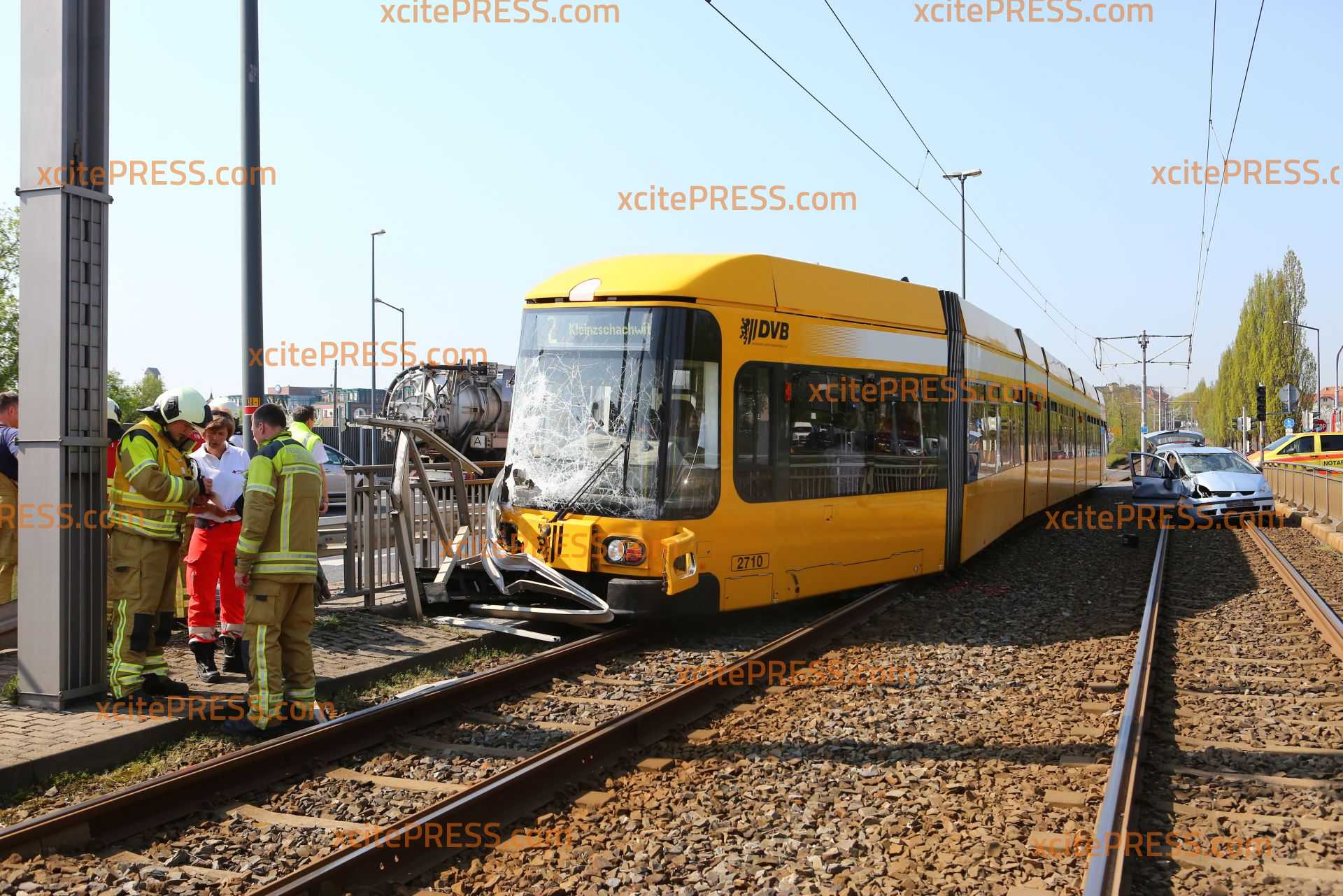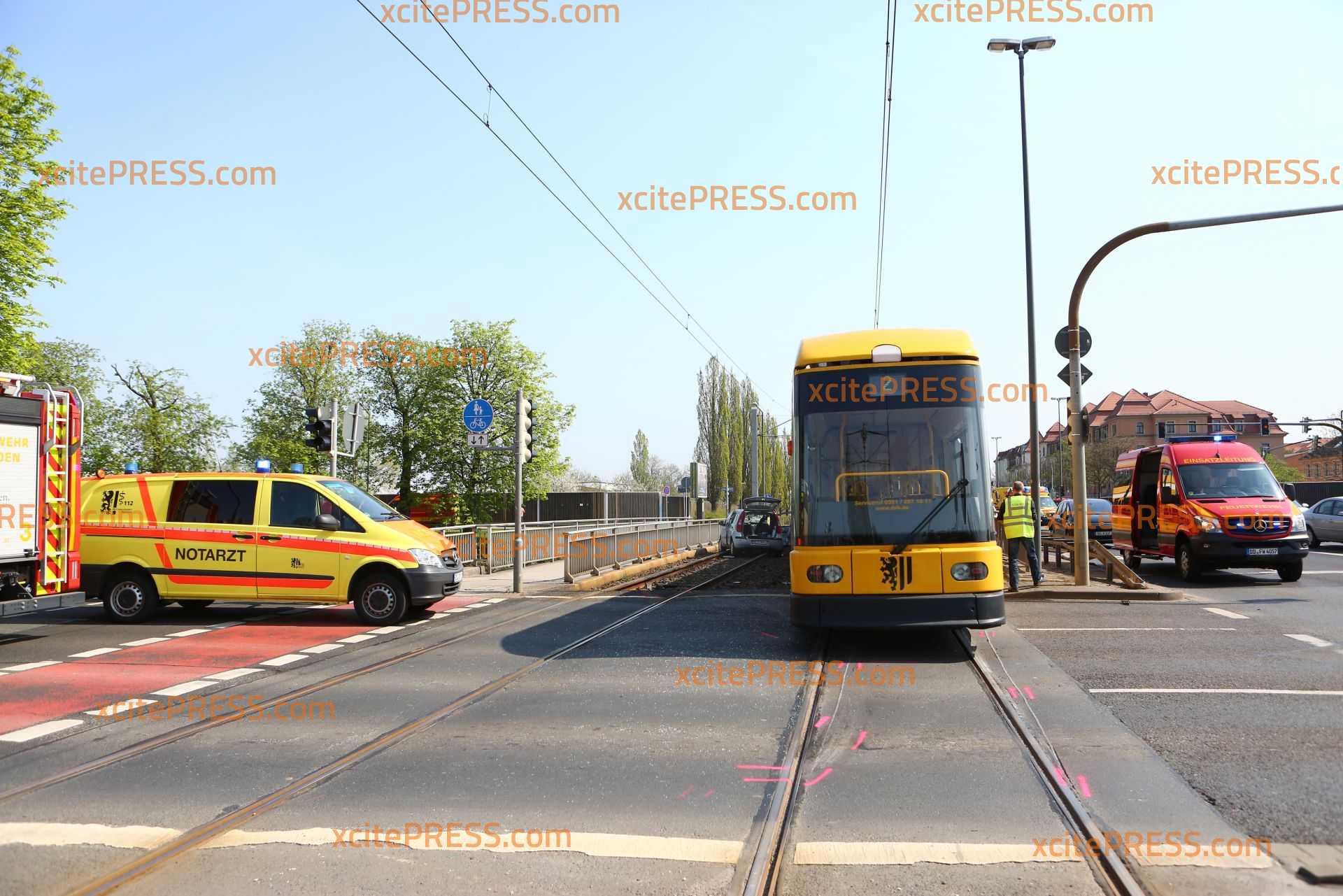 Zu einem schweren Straßenbahnunfall kam es am Donnerstagmittag gegen 10.50 Uhr. Aus noch ungeklärter Ursache kollidierten ein PKW und eine Straßenbahn an der Kreuzung Fröbelstraße / Emerich-Ambros-Ufer. Die Straßenbahn "mähte" in der Folge etliche Pfeiler eines Brückengeländer ab und entgleiste. Mindestens 2 Personen wurde verletzt. Die Einsatzkräfte sind mit einem Großaufgebot angerückt.