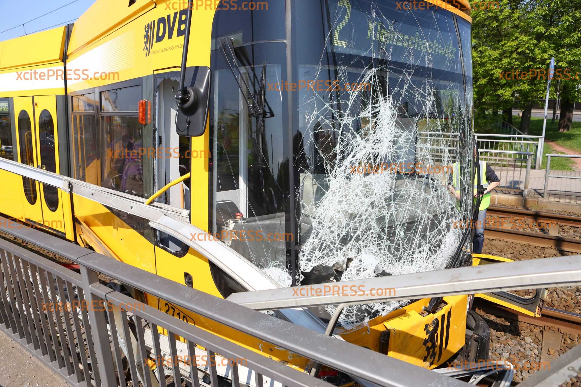 Straßenbahn kollidiert mit Brückengeländer und entgleist, mindestens 2 Verletzte
