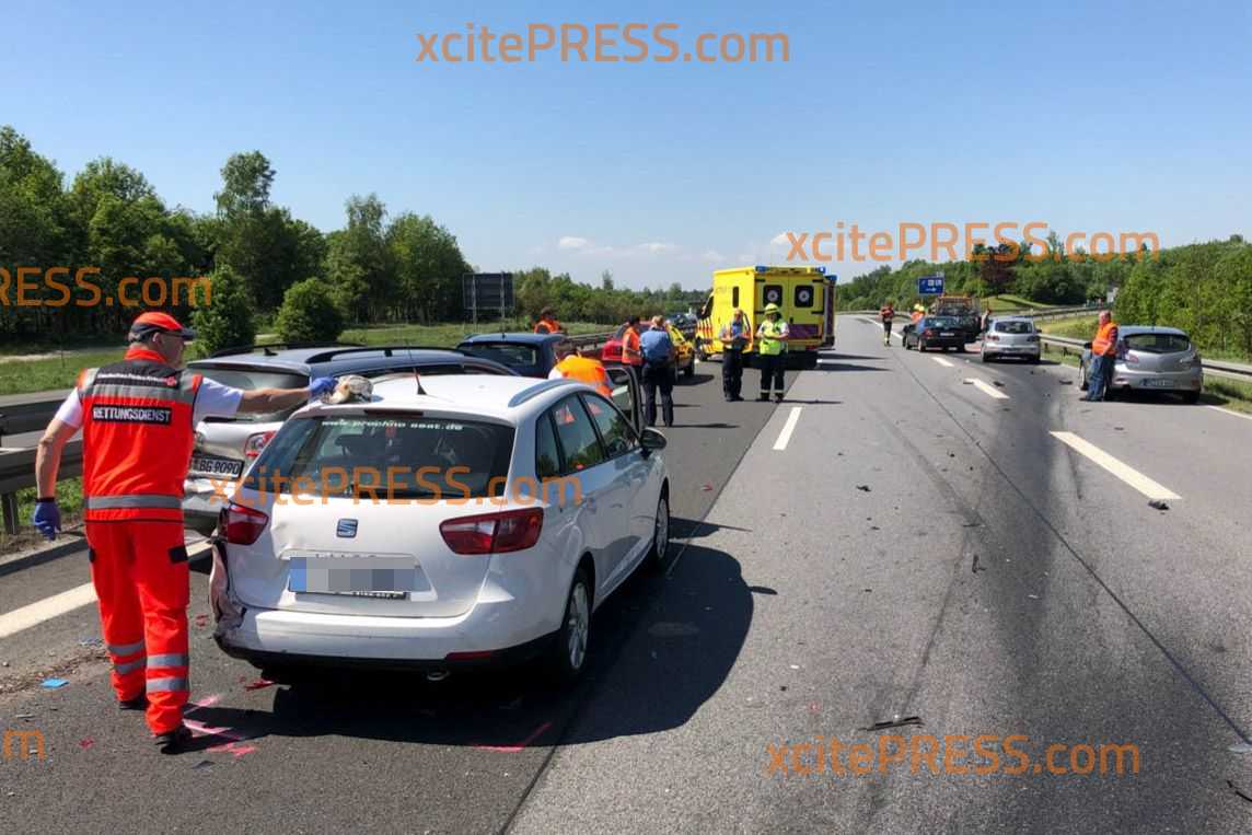 Aktuell sind drei Rettungswägen sowie Notarzt im Einsatz - unter den Verletzten ist offenbar auch ein Kind. Die Autobahn in Richtung Dresden war zu Rettungs-und Bergungsarbeiten voll gesperrt, es bildete sich ein langer Rückstau.