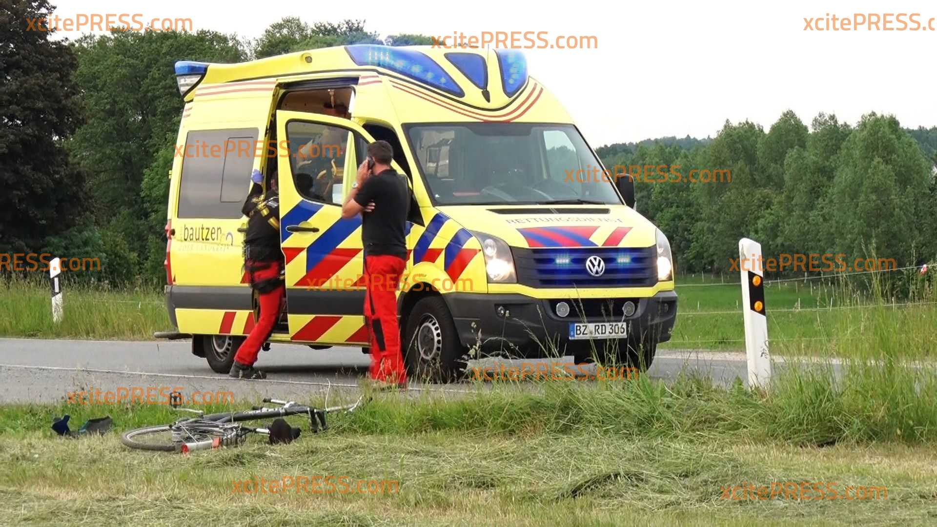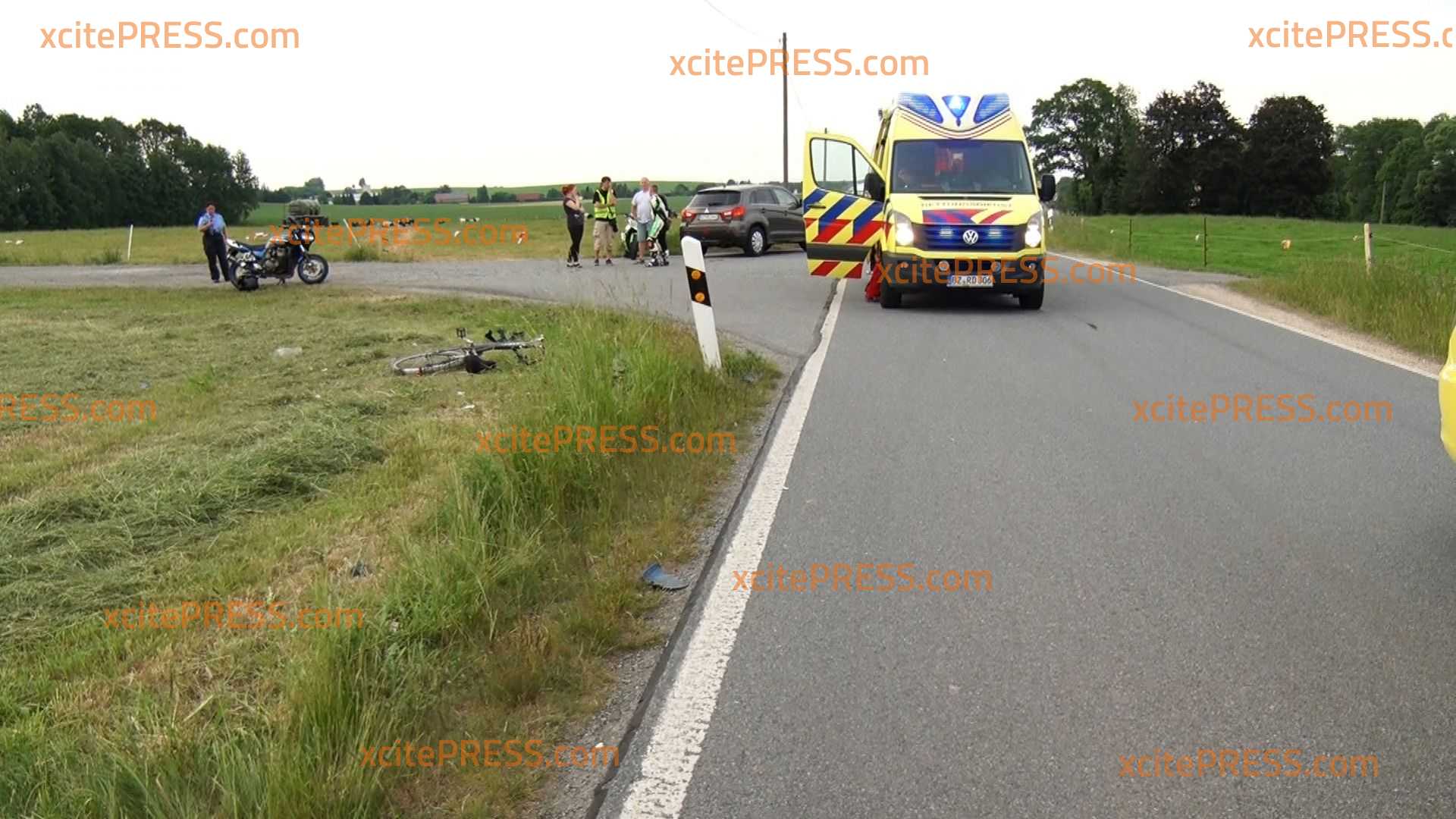 Zu einem schweren Unfall kam es am Donnerstagabend gegen 19.45 Uhr in Großharthau. Auf der Ortsverbindungsstraße nach Frankenthal kam der Fahrer eines Motorrads offenbar in einer Kurve an der äußeren Fahrbahnrand. In Höhe eines Weges, welcher auf die Straße führt, fuhr genau in diesem Moment ein Radler auf. Es kam zur Kollision zwischen Biker und Radfahrer bei welcher der Biker zunächst nicht ansprechbar war. Im Zuge der Rettungsmaßnahmen konnte er stabilisiert werden, trug aber schwere Verletzungen davon. Der Radfahrer musste einen Schutzengel gehabt haben - er kam nur mit leichteren Verletzungen bei dem Unfall davon.
