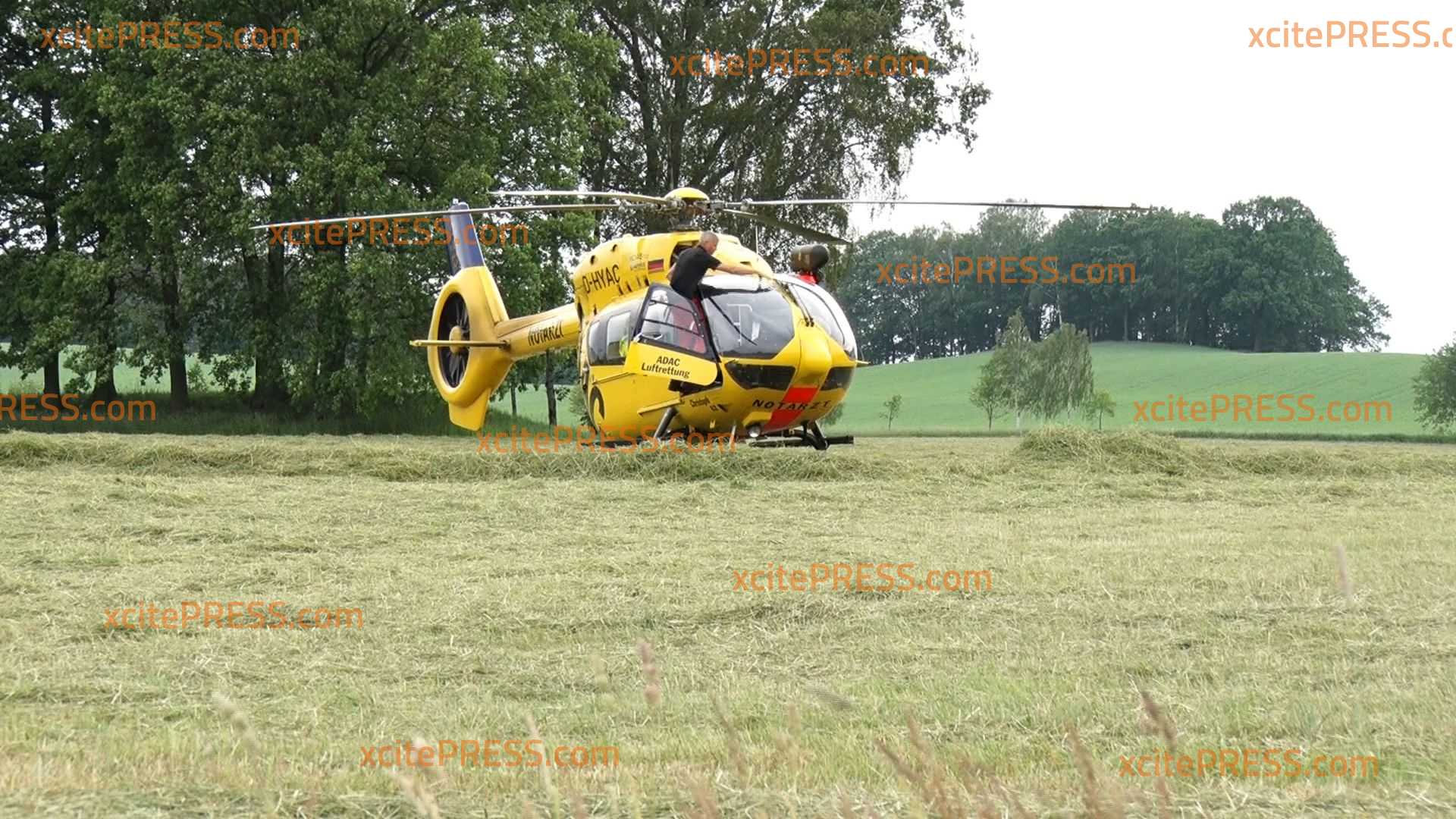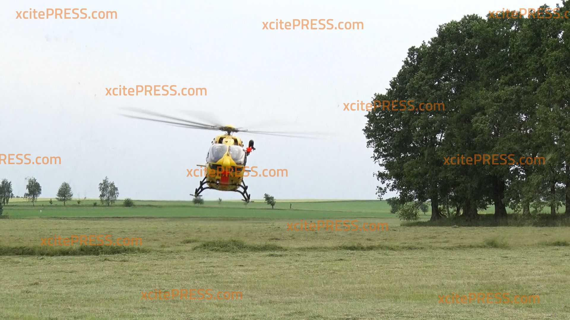 Motorrad kollidiert mi Fahrrad: 2 Verletzte - Rettungshubschrauber im Einsatz