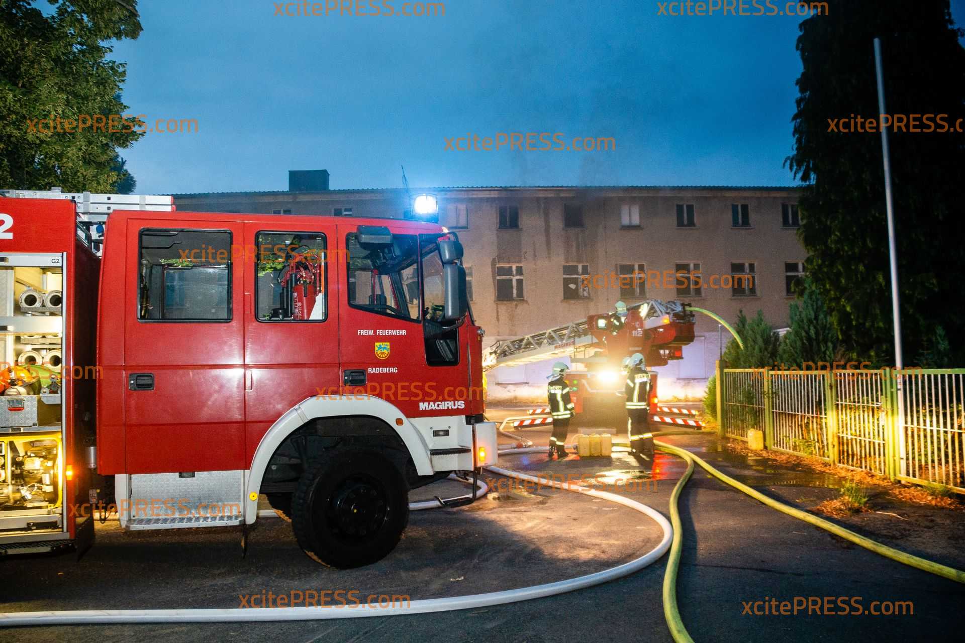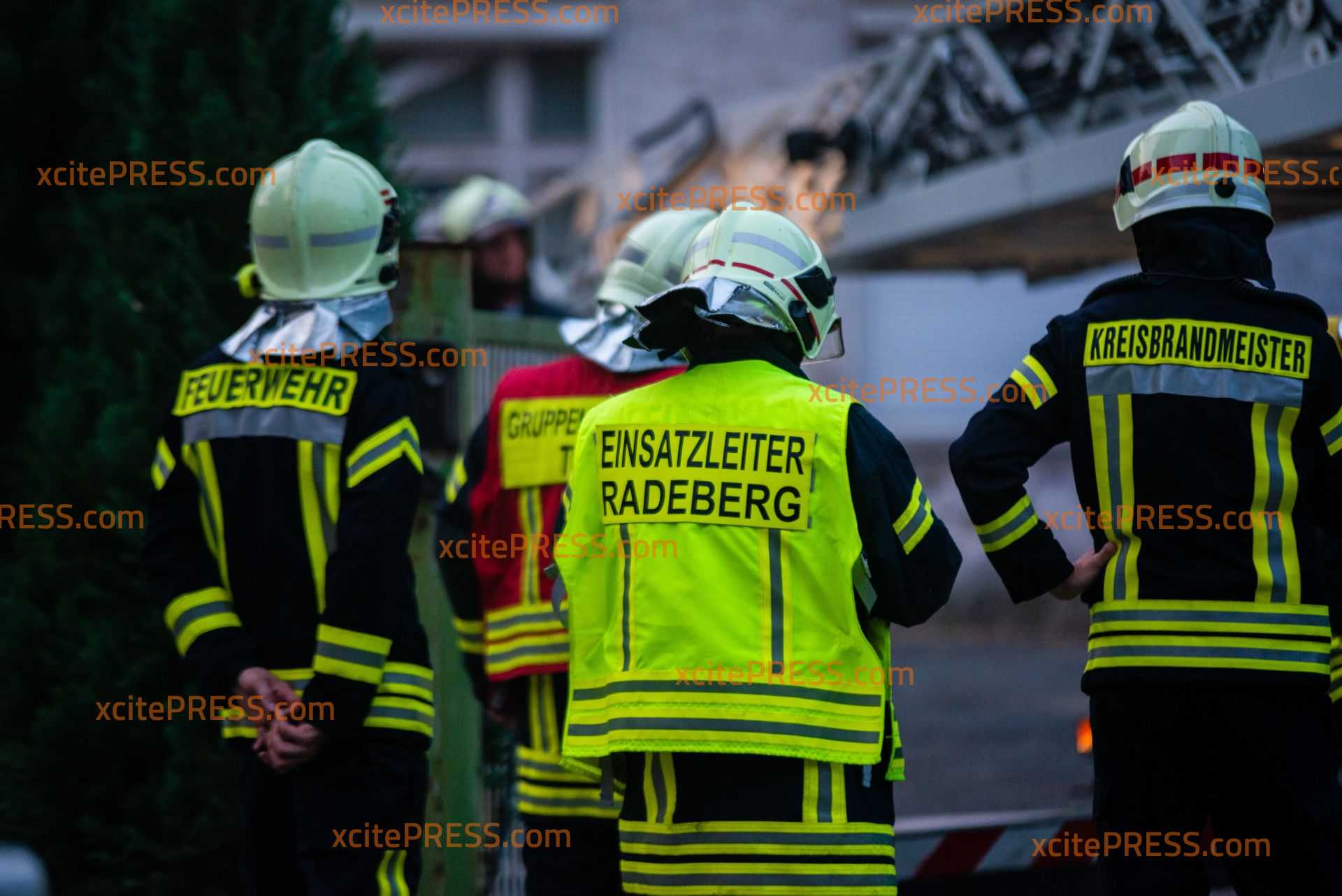 Ein großer Feuerwehreinsatz hat am Samstagabend in Radeberg für Aufsehen gesorgt. Aus einem leerstehenden Gebäude an der Forststraße drang stundenlang beißender Qualm in den Abendhimmel empor. Grund dafür war ein Dachstuhlbrand, der von den Feuerwehrleuten einiges abverlangte. Gegen 20.30 Uhr wurden die Kameraden alarmiert. Während anfangs nur eine Rauchentwicklung zu dem Einsatz führte, dehnte sich der Brand im weiteren Verlauf immer weiter aus. Zuerst versuchte die Feuerwehr, mit einem Angriffstrupp unter schwerem Atemschutz die Brandbekämpfung einzuleiten. Doch die Kameraden mussten das Vorgehen abbrechen - zu hoch war die Gefahr eines Deckeneinsturzes. Also versuchte man, mithilfe der Drehleiter an das Fenster des betroffenen Brandraumes heranzukommen. Zwei Einsatzkräfte nahmen über diesen Weg ein Strahlrohr vor, um die Flammen zu löschen. Doch auch das gestaltete sich als Äußerst schwierig. Das Feuer hatte sich schon zu weit in die Substanz gefressen, als dass man es hätte durch das Fenster mit Wasser löschen können. Man griff hier schließlich auf den Einsatz von Schaummittel zurück. Dieses wurde dem Löschwasser zugemischt, um einen besseren Erfolg zu erzielen. Und tatsächlich: der Schaum blieb am Brandgut haften und erstickte so nach und nach die Flammen. Dennoch zogen sich die Restablöschungen bis in den späten Abend hin. Im Einsatz waren neben der Freiwilligen Feuerwehr Radeberg auch die Wehren aus Liegau-Augustusbad, Großerkmannsdorf, Ullersdorf und Leppersdorf. Der Rettungsdienst sicherte die Löscharbeiten ab und die Polizei nahm erste Ermittlungen zur Brandursache auf. Brandstiftung kann ersten Angaben zufolge nicht ausgeschlossen werden.