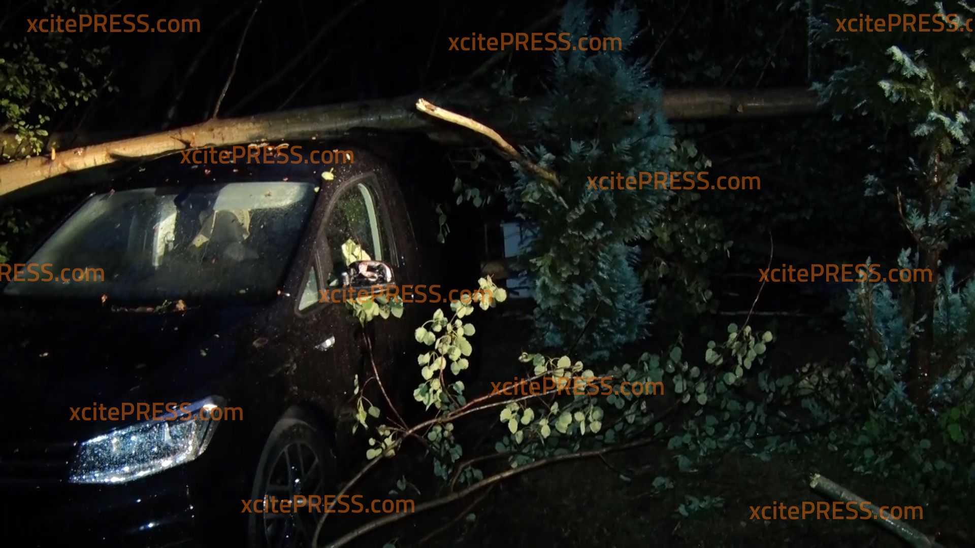 Bäume blockieren Straßen, Campingplatz zum Teil unter Wasser, Baum auf PKW gekracht