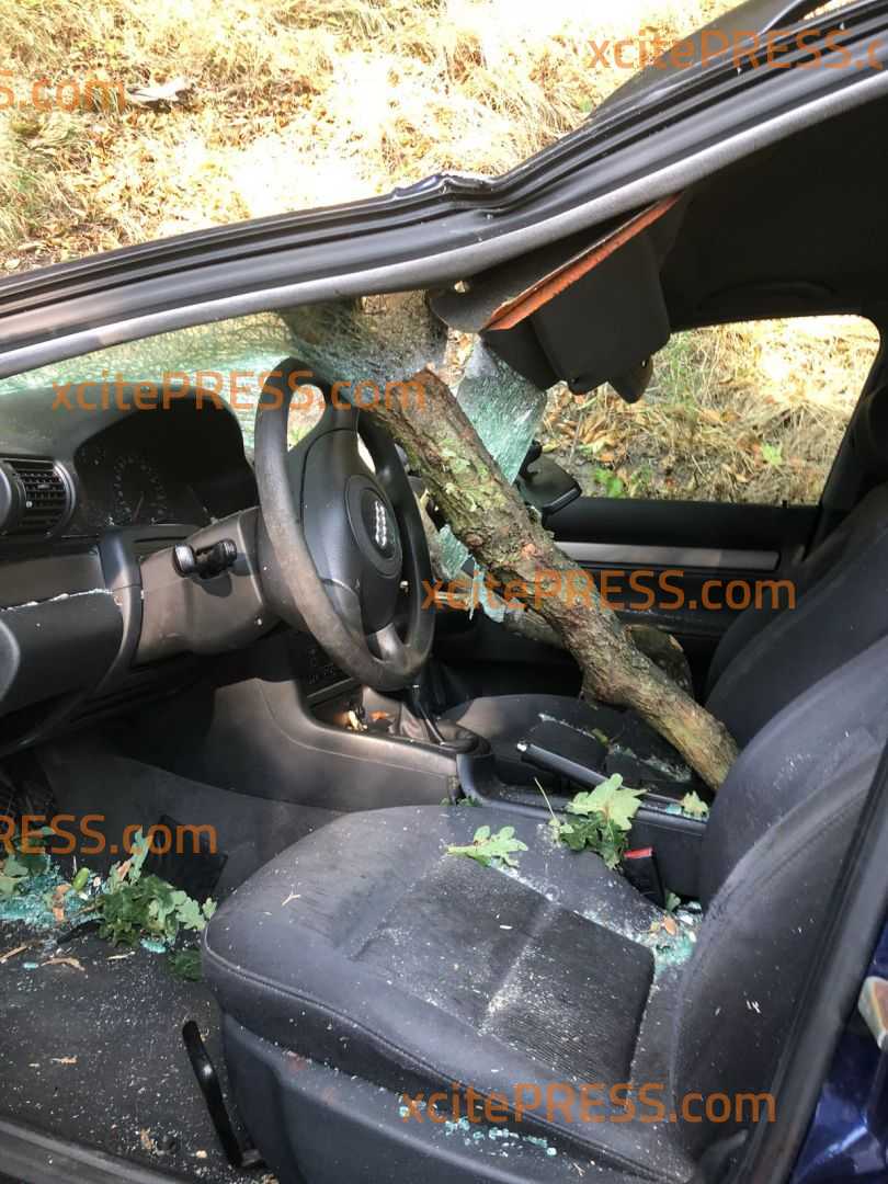 Zu einem schweren Unfall kam es am Mittwochvormittag auf der B97 bei Laußnitz. Auf Grund der Trockenheit brach ein Ast eines Baumes an der Bundesstraße ab, flog direkt in den fahrenden PKW und durchbohrte dort die Frontscheibe. Die Familie mit 3 Kindern, welche auf dem Heimweg aus dem Urlaub war, hatte dabei offensichtlich gleich mehrere Schutzengel. Die Äste verfehlten die Frau haarscharf.