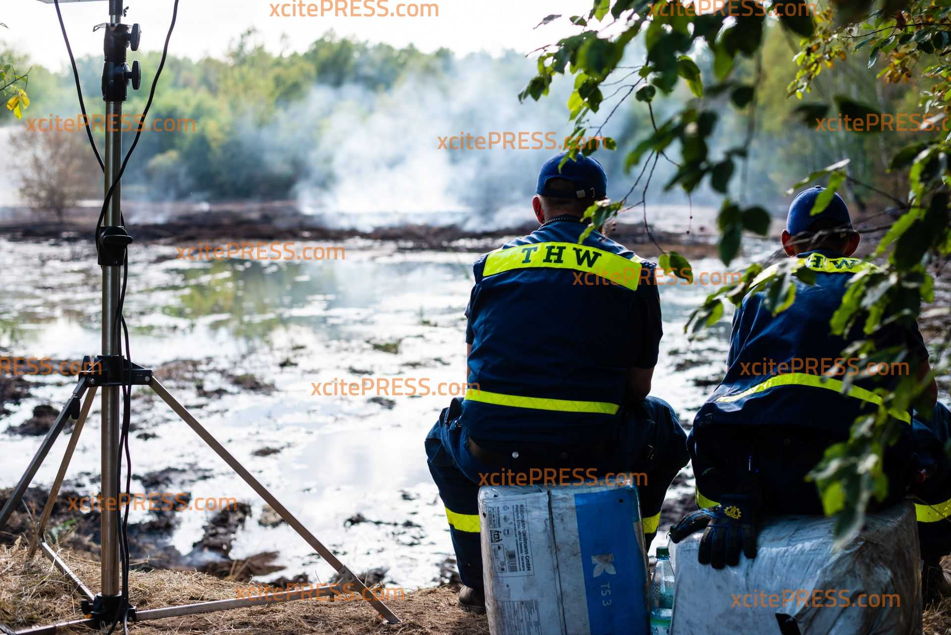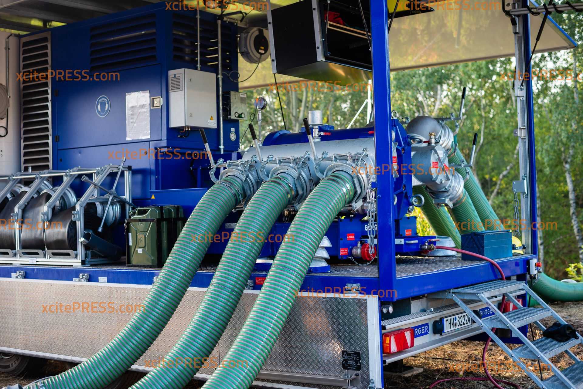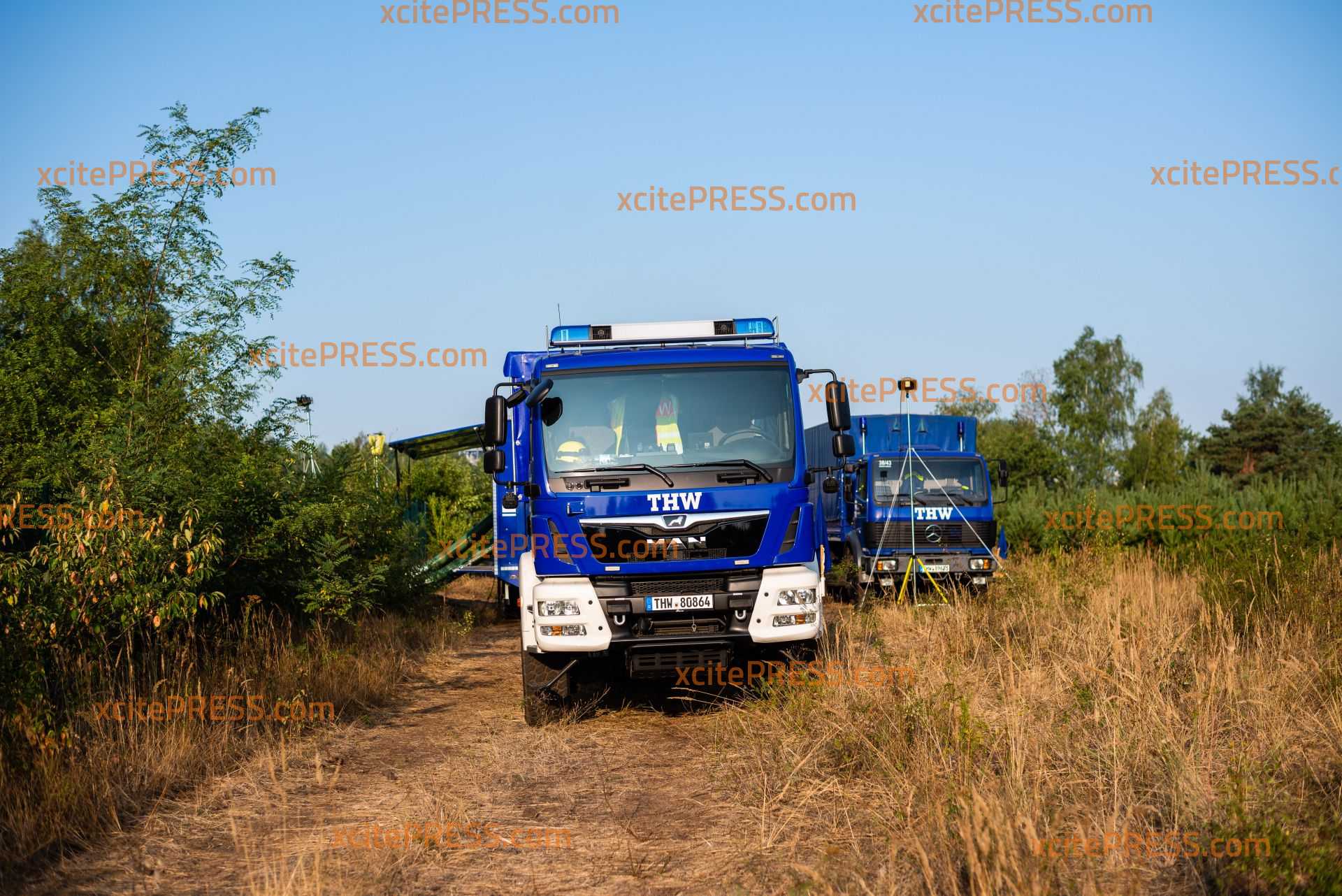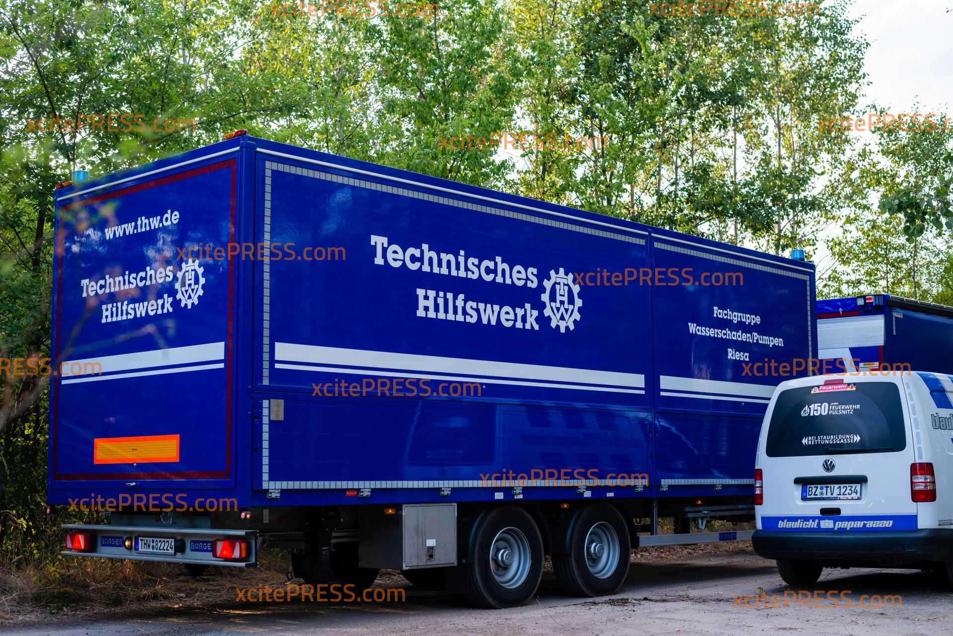In der Gemeinde Spreetal im Landkreis Bautzen ist es am Montag zu einem Ödlandbrand in einem Kohlestaubbecken gekommen. Auf einer Fläche von rund 10.000 Quadratmetern stand der Waldboden hier in Flammen. Die Feuerwehren der Gemeinde Spreetal, sowie die Berufsfeuerwehr Hoyerswerda versuchten mit allen Mitteln, den Brand zu bekämpfen. Zur Unterstützung wurde auch die Feuerwehr Spremberg aus dem benachbarten Brandenburg hinzugezogen. Doch der Löscherfolg hielt sich in Grenzen. Immer wieder drang Rauch aus dem Boden nach oben. Die Kohleablagerungen sind so tief im Erdreich, dass es fast unmöglich ist, diese komplett abzulöschen. Das Feuer brennt stets unterirdisch weiter und dringt irgendwann wieder nach oben. Am Dienstag entschied man sich, das Becken mit Hilfe des Technischen Hilfswerkes zu fluten. Während anfangs das THW aus Bautzen mit einer Hannibal-Pumpe anrückte, folgten am Mittwoch die Ortsverbände aus Kamenz, Riesa und Radebeul. Neben einer Vielzahl an Tauchpumpen haben die Kräfte aus Riesa eine nagelneue Großpumpe dabei. Diese fördert bei idealen Bedingungen bis zu 25.000 Liter Wasser. In Deutschland ist es das erste Mal, dass eine Großpumpe dieser Art zum Einsatz kommt. Aufgrund der örtlichen Gegebenheiten kann die Technik zwar nicht mit voller Leistung arbeiten, dennoch werden seit der Nacht zum Donnerstag schätzungsweise rund 30.000 Liter Wasser pro Minute in das Kohlestaubbecken gepumpt. Trotz alledem wird der Einsatz noch Tage andauern, ehe der Brand komplett gelöscht sein wird. Am späten Donnerstag Nachmittag möchte sich auch der THW-Präsident ein Bild von der Lage machen und die Kameraden vor Ort besuchen.