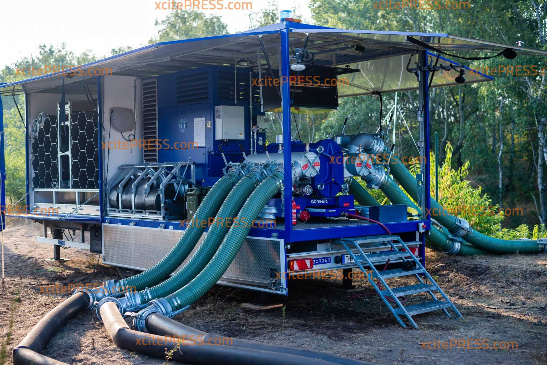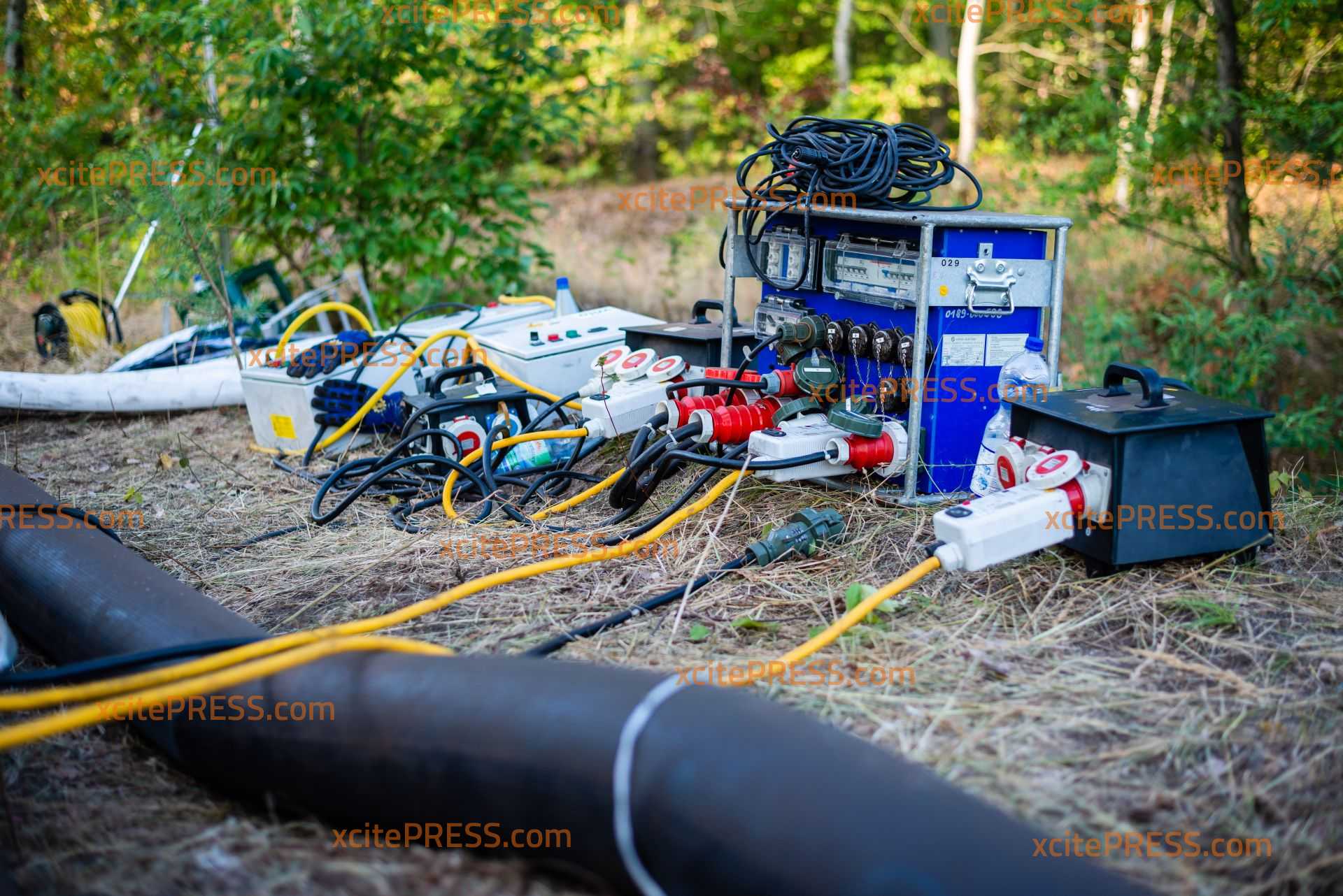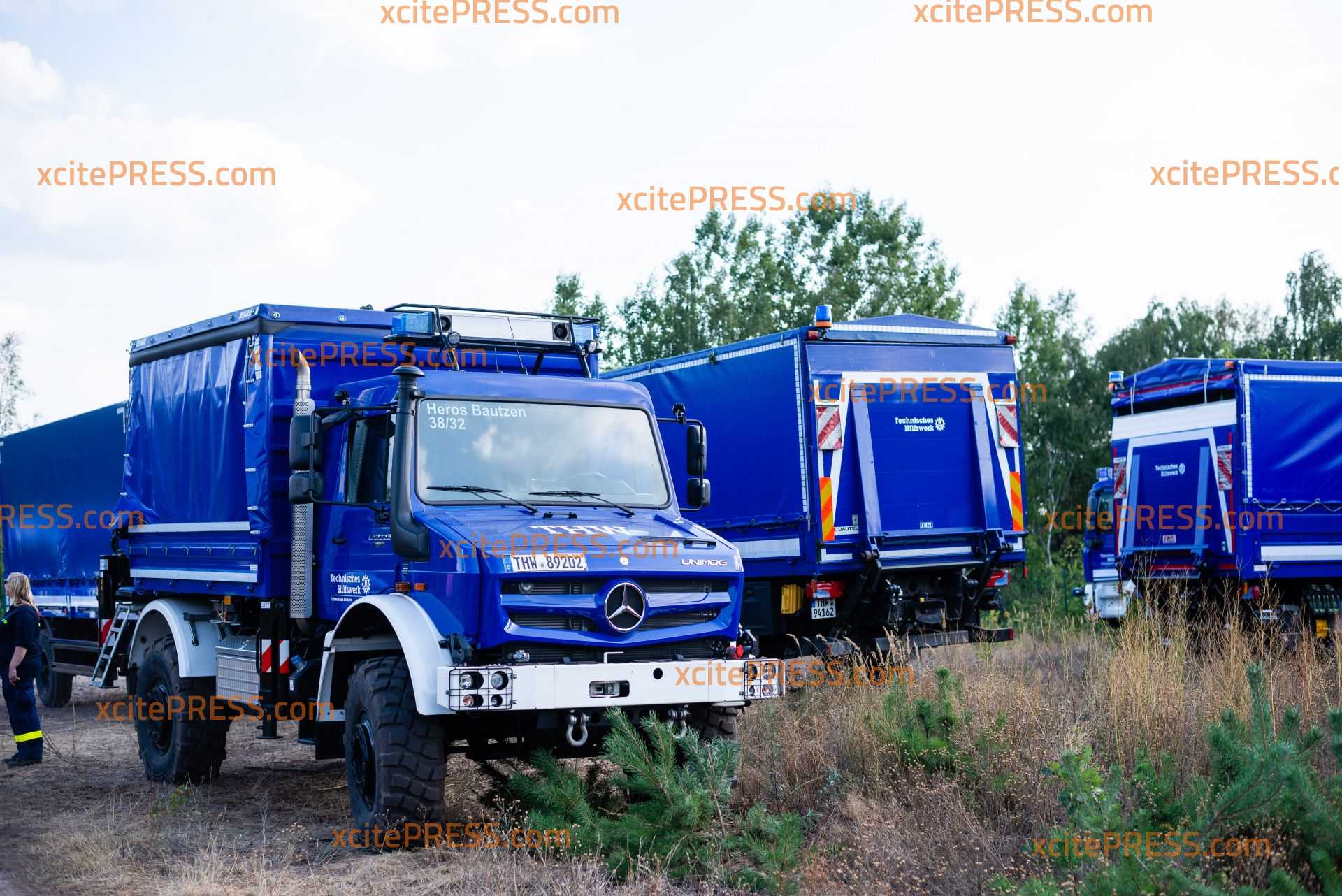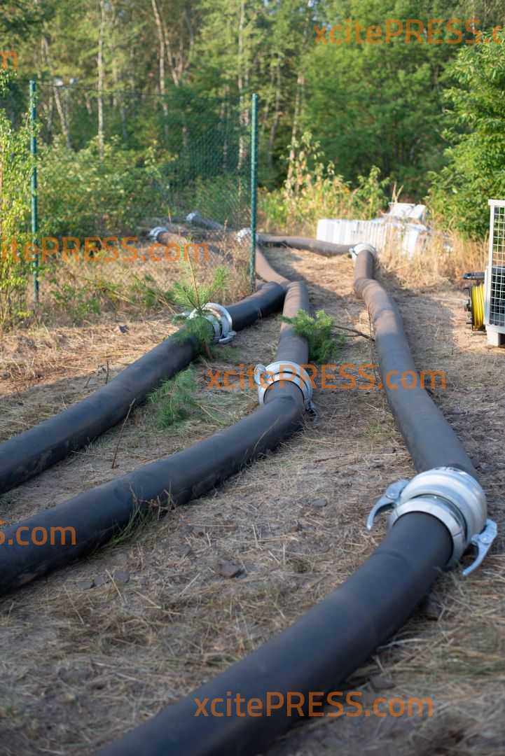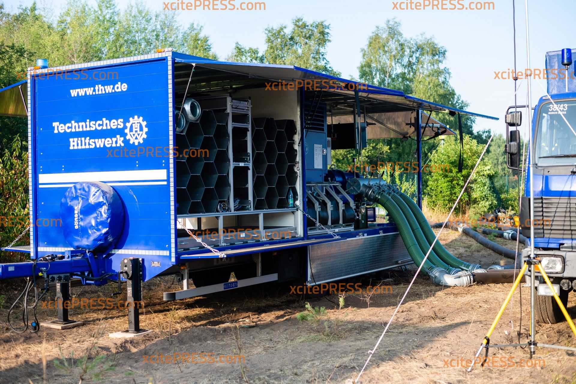 In der Gemeinde Spreetal im Landkreis Bautzen ist es am Montag zu einem Ödlandbrand in einem Kohlestaubbecken gekommen. Auf einer Fläche von rund 10.000 Quadratmetern stand der Waldboden hier in Flammen. Die Feuerwehren der Gemeinde Spreetal, sowie die Berufsfeuerwehr Hoyerswerda versuchten mit allen Mitteln, den Brand zu bekämpfen. Zur Unterstützung wurde auch die Feuerwehr Spremberg aus dem benachbarten Brandenburg hinzugezogen. Doch der Löscherfolg hielt sich in Grenzen. Immer wieder drang Rauch aus dem Boden nach oben. Die Kohleablagerungen sind so tief im Erdreich, dass es fast unmöglich ist, diese komplett abzulöschen. Das Feuer brennt stets unterirdisch weiter und dringt irgendwann wieder nach oben. Am Dienstag entschied man sich, das Becken mit Hilfe des Technischen Hilfswerkes zu fluten. Während anfangs das THW aus Bautzen mit einer Hannibal-Pumpe anrückte, folgten am Mittwoch die Ortsverbände aus Kamenz, Riesa und Radebeul. Neben einer Vielzahl an Tauchpumpen haben die Kräfte aus Riesa eine nagelneue Großpumpe dabei. Diese fördert bei idealen Bedingungen bis zu 25.000 Liter Wasser. In Deutschland ist es das erste Mal, dass eine Großpumpe dieser Art zum Einsatz kommt. Aufgrund der örtlichen Gegebenheiten kann die Technik zwar nicht mit voller Leistung arbeiten, dennoch werden seit der Nacht zum Donnerstag schätzungsweise rund 30.000 Liter Wasser pro Minute in das Kohlestaubbecken gepumpt. Trotz alledem wird der Einsatz noch Tage andauern, ehe der Brand komplett gelöscht sein wird. Am späten Donnerstag Nachmittag möchte sich auch der THW-Präsident ein Bild von der Lage machen und die Kameraden vor Ort besuchen.