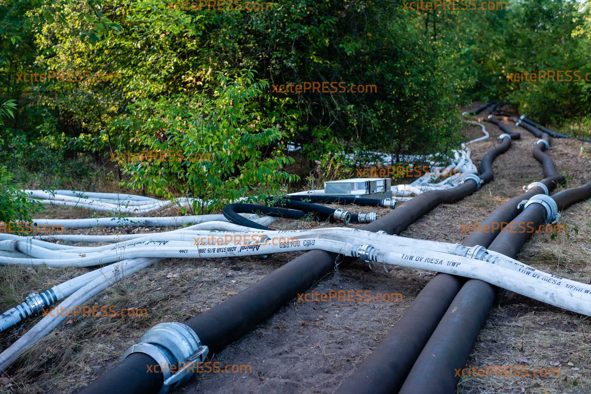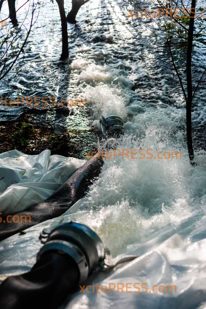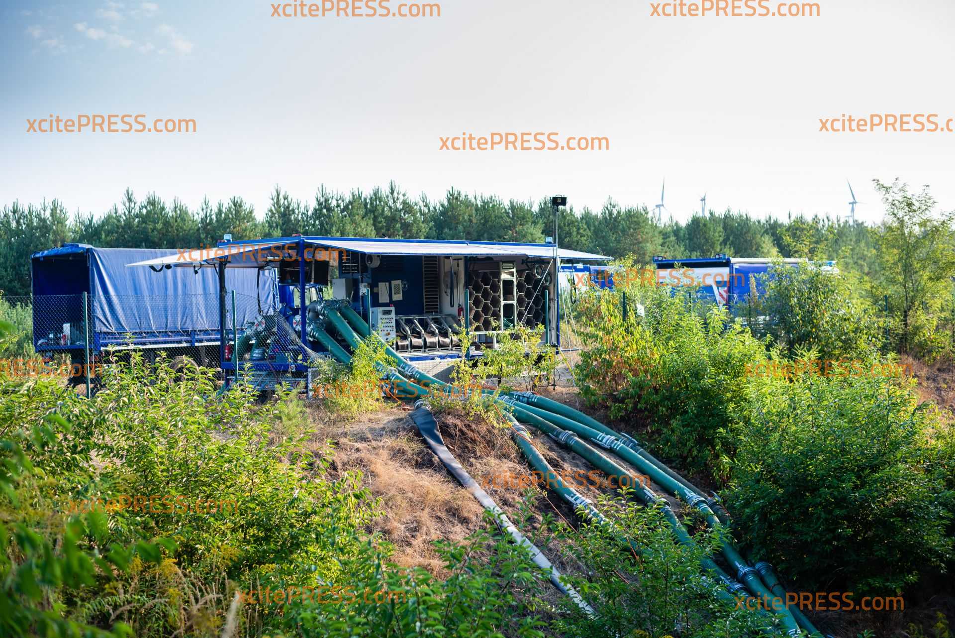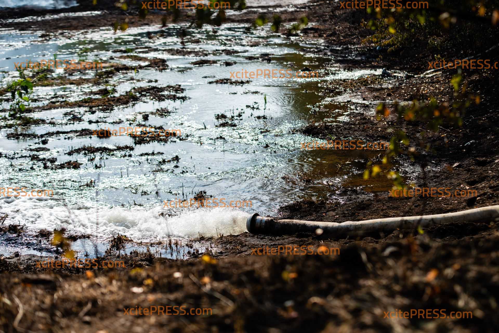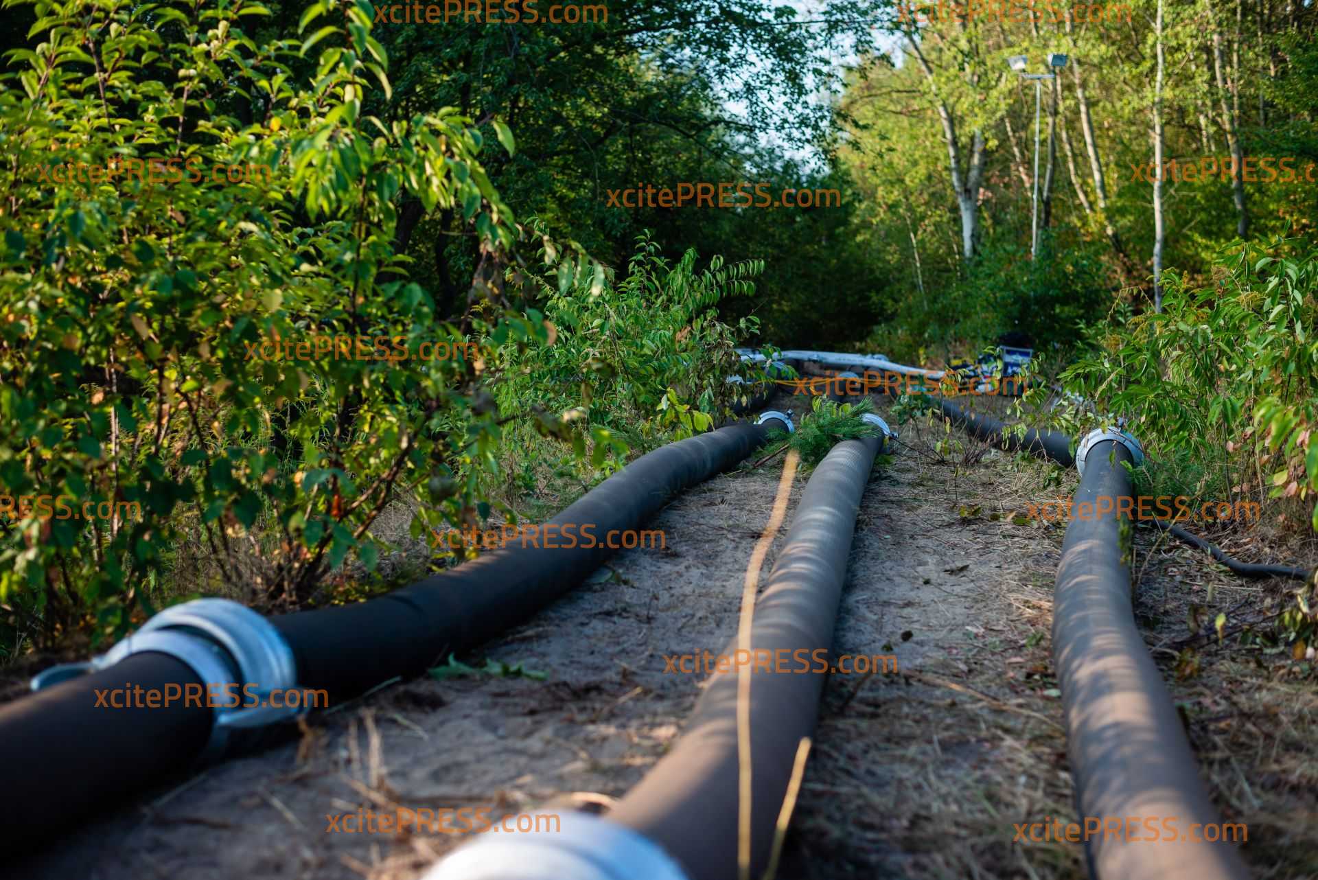 In der Gemeinde Spreetal im Landkreis Bautzen ist es am Montag zu einem Ödlandbrand in einem Kohlestaubbecken gekommen. Auf einer Fläche von rund 10.000 Quadratmetern stand der Waldboden hier in Flammen. Die Feuerwehren der Gemeinde Spreetal, sowie die Berufsfeuerwehr Hoyerswerda versuchten mit allen Mitteln, den Brand zu bekämpfen. Zur Unterstützung wurde auch die Feuerwehr Spremberg aus dem benachbarten Brandenburg hinzugezogen. Doch der Löscherfolg hielt sich in Grenzen. Immer wieder drang Rauch aus dem Boden nach oben. Die Kohleablagerungen sind so tief im Erdreich, dass es fast unmöglich ist, diese komplett abzulöschen. Das Feuer brennt stets unterirdisch weiter und dringt irgendwann wieder nach oben. Am Dienstag entschied man sich, das Becken mit Hilfe des Technischen Hilfswerkes zu fluten. Während anfangs das THW aus Bautzen mit einer Hannibal-Pumpe anrückte, folgten am Mittwoch die Ortsverbände aus Kamenz, Riesa und Radebeul. Neben einer Vielzahl an Tauchpumpen haben die Kräfte aus Riesa eine nagelneue Großpumpe dabei. Diese fördert bei idealen Bedingungen bis zu 25.000 Liter Wasser. In Deutschland ist es das erste Mal, dass eine Großpumpe dieser Art zum Einsatz kommt. Aufgrund der örtlichen Gegebenheiten kann die Technik zwar nicht mit voller Leistung arbeiten, dennoch werden seit der Nacht zum Donnerstag schätzungsweise rund 30.000 Liter Wasser pro Minute in das Kohlestaubbecken gepumpt. Trotz alledem wird der Einsatz noch Tage andauern, ehe der Brand komplett gelöscht sein wird. Am späten Donnerstag Nachmittag möchte sich auch der THW-Präsident ein Bild von der Lage machen und die Kameraden vor Ort besuchen.
