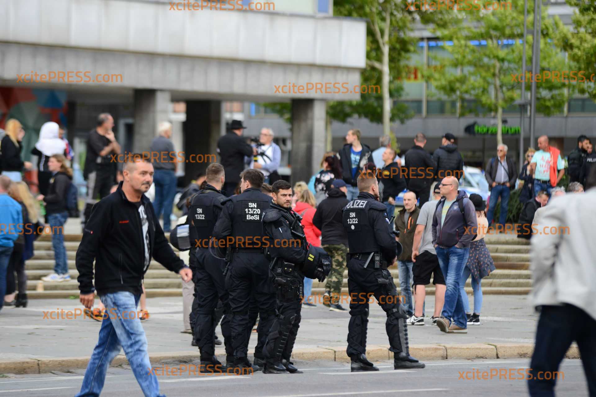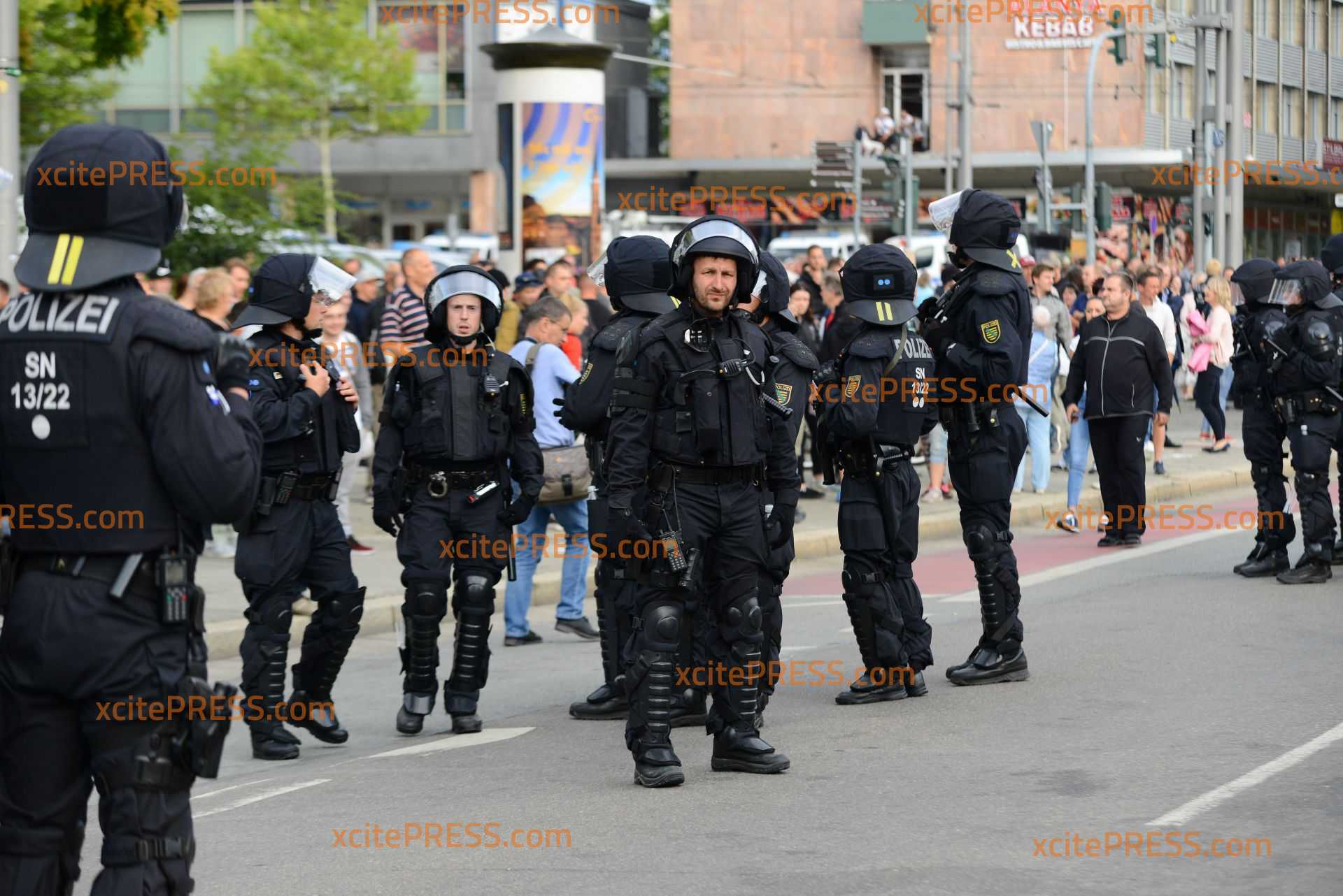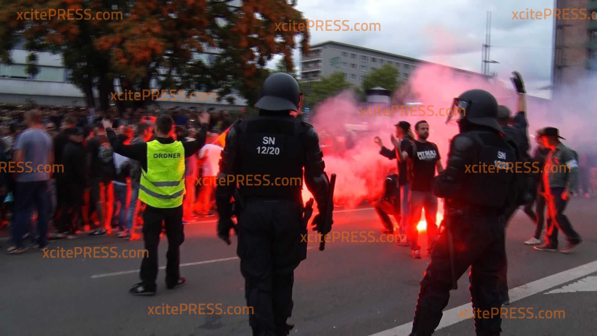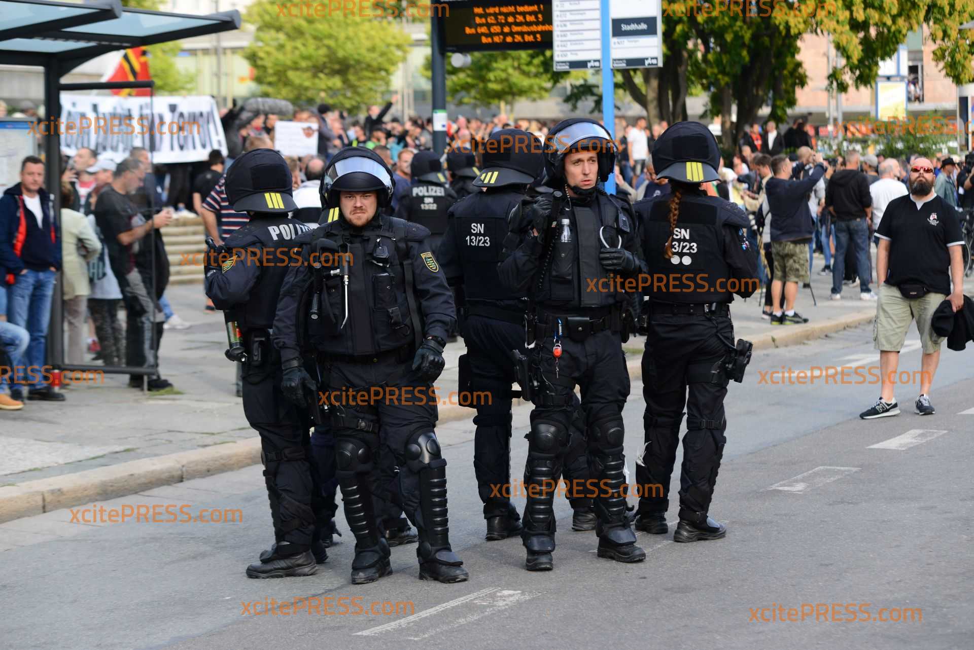 Großeinsatz in der Chemnitzer Innenstadt am Montagabend: Nach einer tödlichen Messerstecherei in der Nacht von Samstag auf Sonntag mobilisierten seit Sonntag sowohl rechte als auch linke Gruppierungen in die sächsische Stadt. Zwischen Karl-Marx-Monument und Stadthallenpark drohte zeitweise die Lage zu eskalieren: Laut Polizei gab es mehrere Verletzte durch geworfene Gegenstände und gezündete Raketen. Die Polizei war mit einem verstärkten Aufgebot vor Ort - konnte aber letztlich offensichtlich nicht für ausreichende Kräfte in