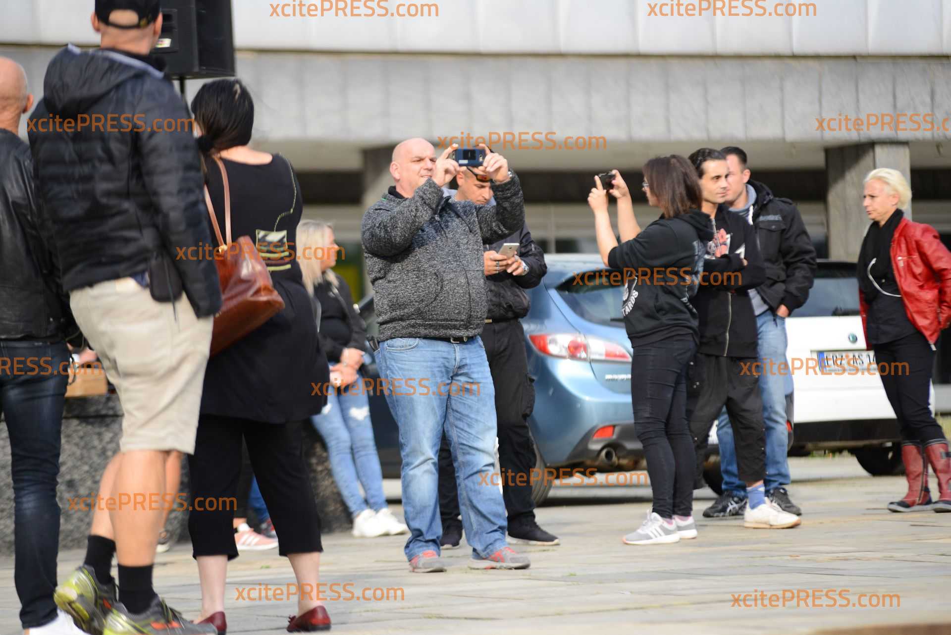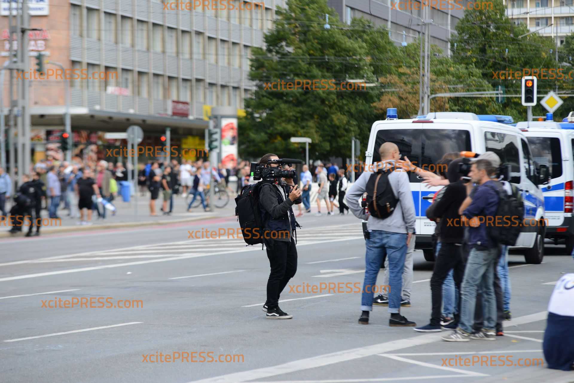 - rechte Demonstranten zeigen Journalisten das nackte Gesäß