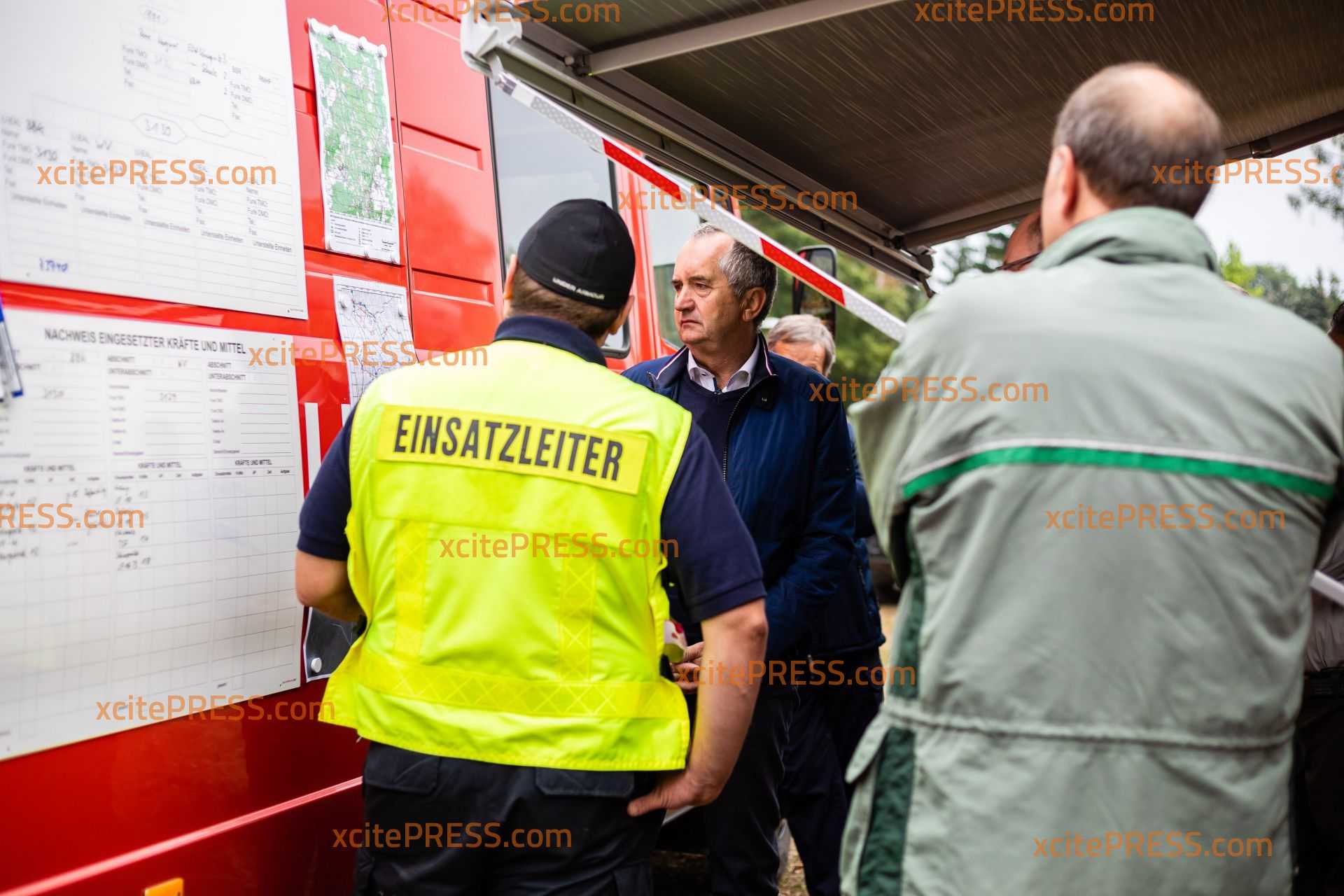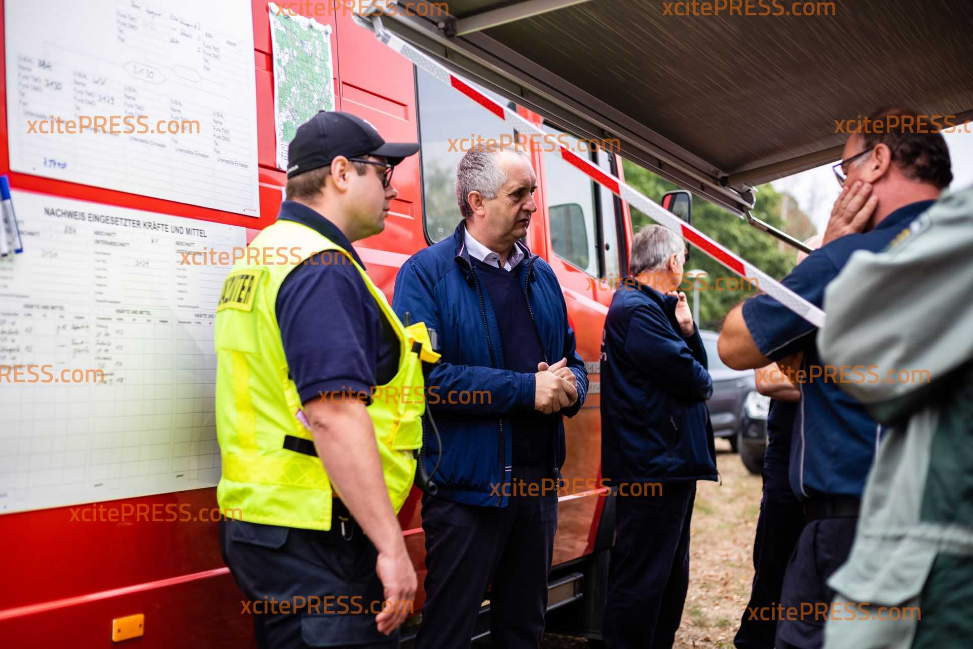 Der Waldbrand in der Königsbrücker Heide bei Schwepnitz ist zum größten Teil gelöscht. Das bestätigte am Freitagmorgen Einsatzleiter René Wagner. Derzeit gebe es noch einzelne Glutnester, die von mehreren Tanklöschfahrzeugen abgelöscht werden. Man rechnet damit, der der angekündigte Regen für eine weitere Entspannung der Lage sorgen wird. Dennoch ist die Situation für die Einsatzkräfte nicht minder gefährlich. Durch den Brand wurde auf dem ehemaligen Truppenübungsplatz jede Menge Munition freigelegt. Immer wieder finden die Kameraden Kampfmittel. Man schätzt, dass rund 20 Tonnen scharfer Sprengstoff auf der vom Brand betroffenen Fläche liegen. Ein Großteil davon dürfte bei dem Brand in Flammen aufgegangen sein, größere Detonationen habe man vor Ort nicht festgestellt. Der Kampfmittelräumdienst war und ist auch weiterhin vor Ort im Einsatz. Für eine weitere Lageerkundung wird jetzt ein Hubschrauber der Polizei erwartet. Auch eine Spezialdrohne befindet sich vor Ort, um Glutnester mit einer Wärmebildkamera aus der Luft zu finden. Wie lange sich die Maßnahmen noch hinziehen erden ist nicht abschätzbar. Am Morgen war auch der sächsische Umweltminister Thomas Schmidt vor Ort um sich ein Bild von dem Ausmaß zu verschaffen. Er sprach mit den Feuerwehrleuten über den Einsatzverlauf und die Erfahrungen, die in diesem Schwerpunktgebiet gesammelt wurden.
