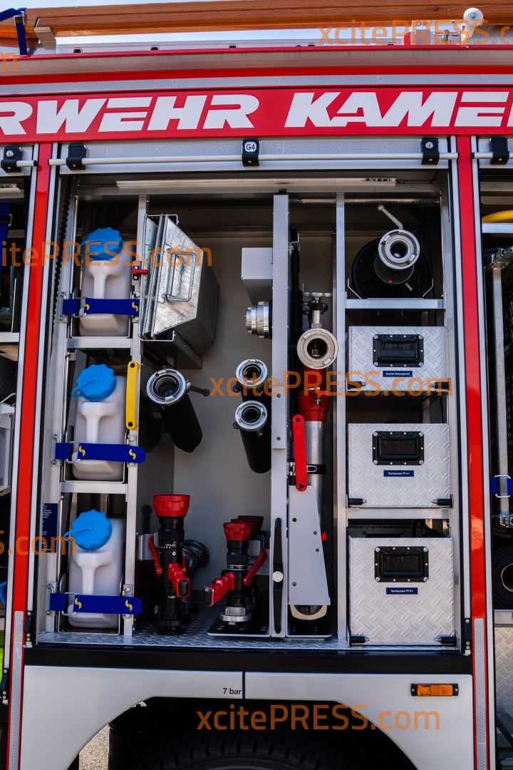 Das neue Multitalent ist sowohl für die Brandbekämpfung, als auch für die technische Hilfeleistung ausgelegt. Als Fahrgestell wird ein MAN 13.290 4x4 genutzt. Außerdem entschied man sich für einen Varus-Aufbau aus dem Hause Schlingmann. Mit 2.000 Litern Löschwasser an Bord lässt sich zügig mit der Brandbekämpfung im Ernstfall beginnen. Eine Feuerlöschkreiselpumpe FPN 10-3000 sorgt dafür, dass das Löschmittel mit ausreichend Druck zu den Strahlrohren gebracht wird. Hinzu kommt ein integrierter Schaummitteltank mit 150 Litern Volumen, sowie einer Druckzumischanlage DZ 30. So kann direkt vom Fahrzeug aus mit Schaum gearbeitet werden.