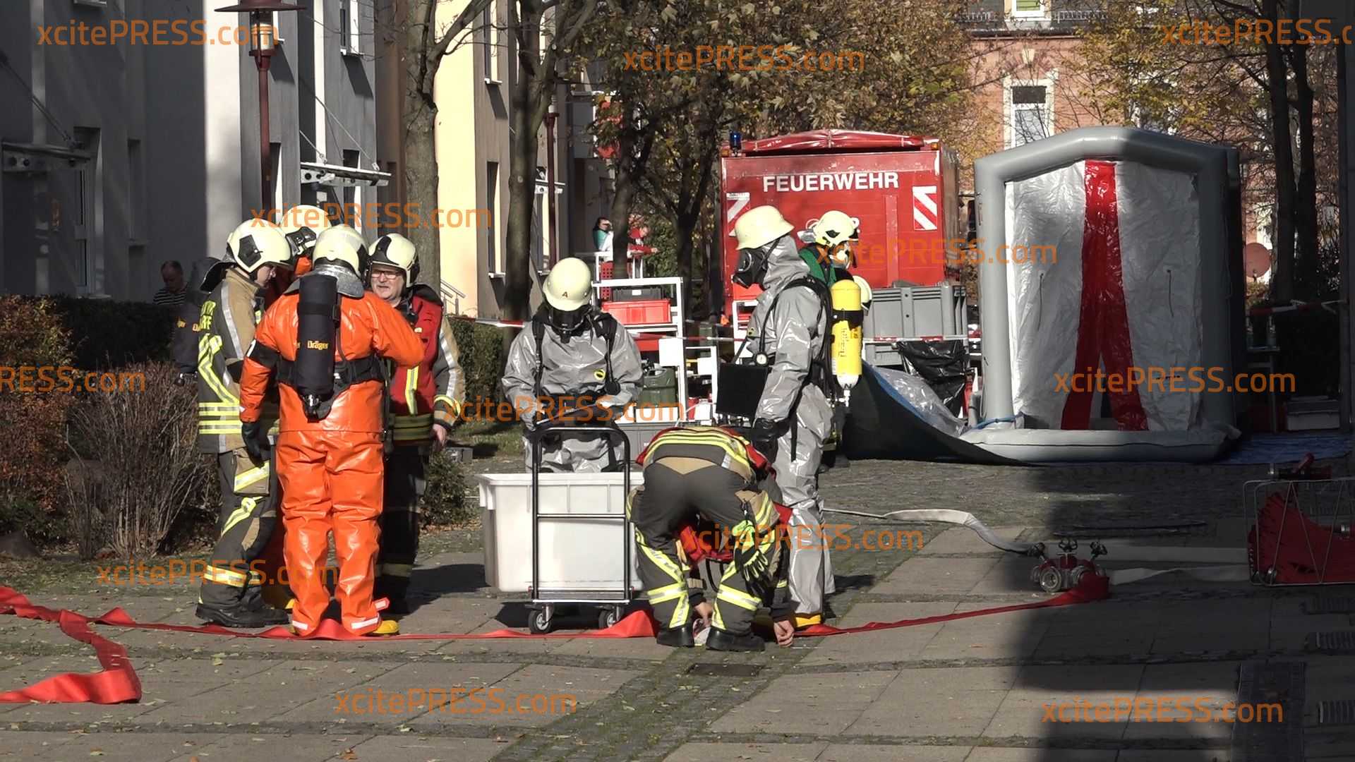 Zu einem ABC-Einsatz kam es am Samstagvormittag gegen 9.30 Uhr auf der Brückenstrasse 15 in Freital. Die Feuerwehr rückte mit einem Großaufgebot an.