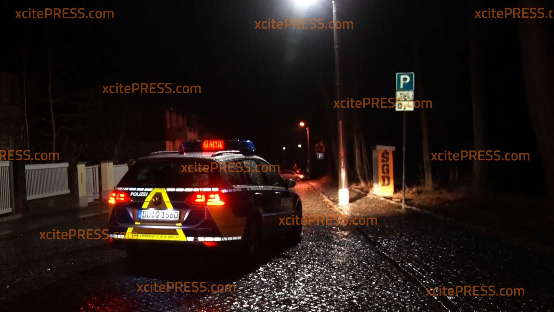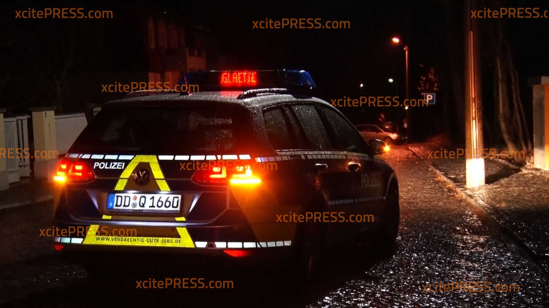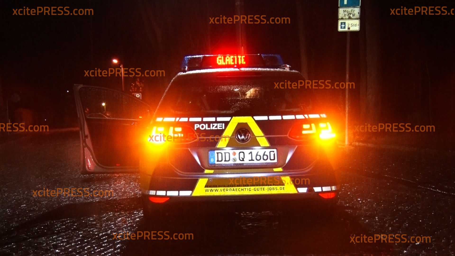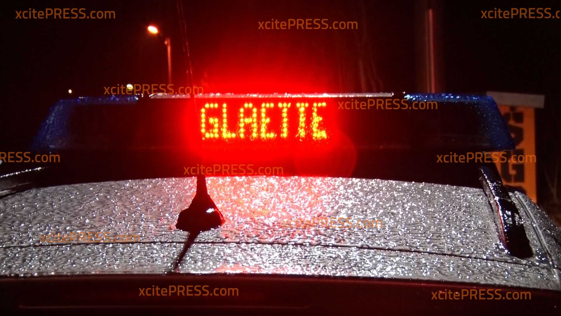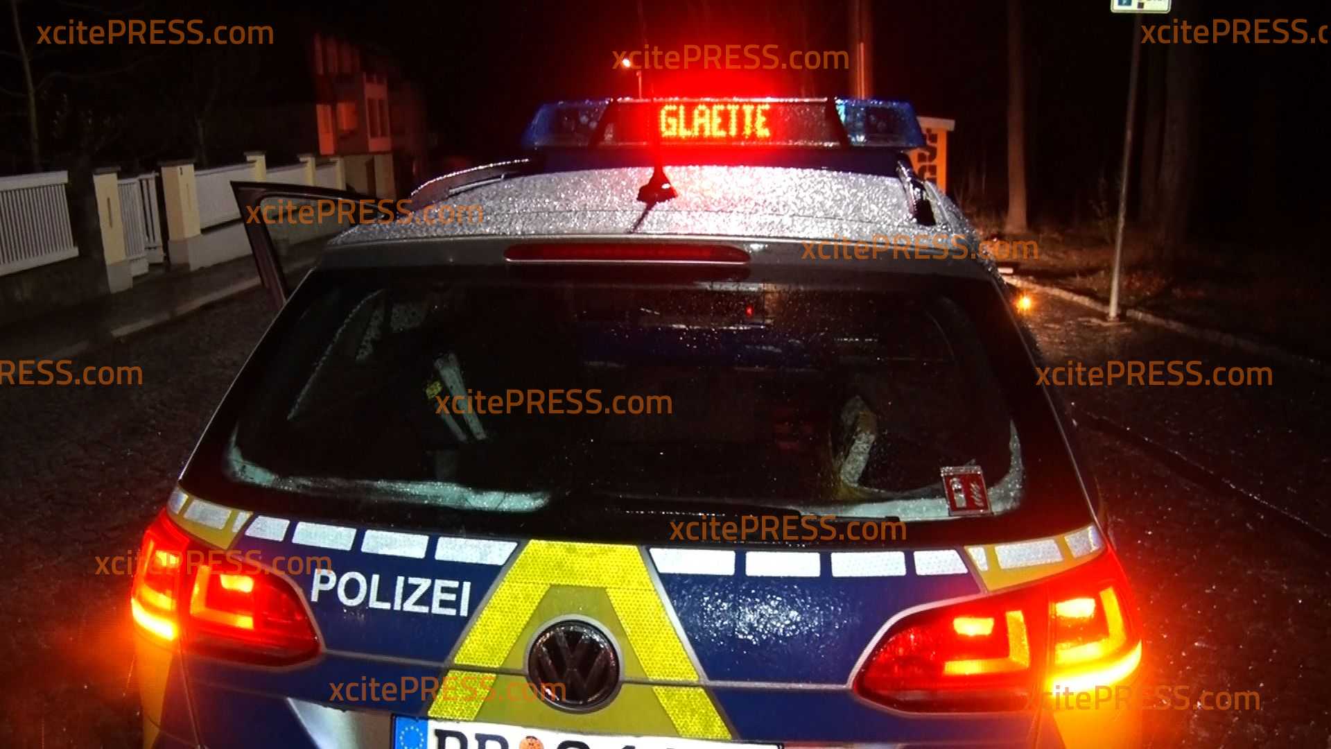 - Streifenwagen mit Leuchtschrift "GLÄTTE"