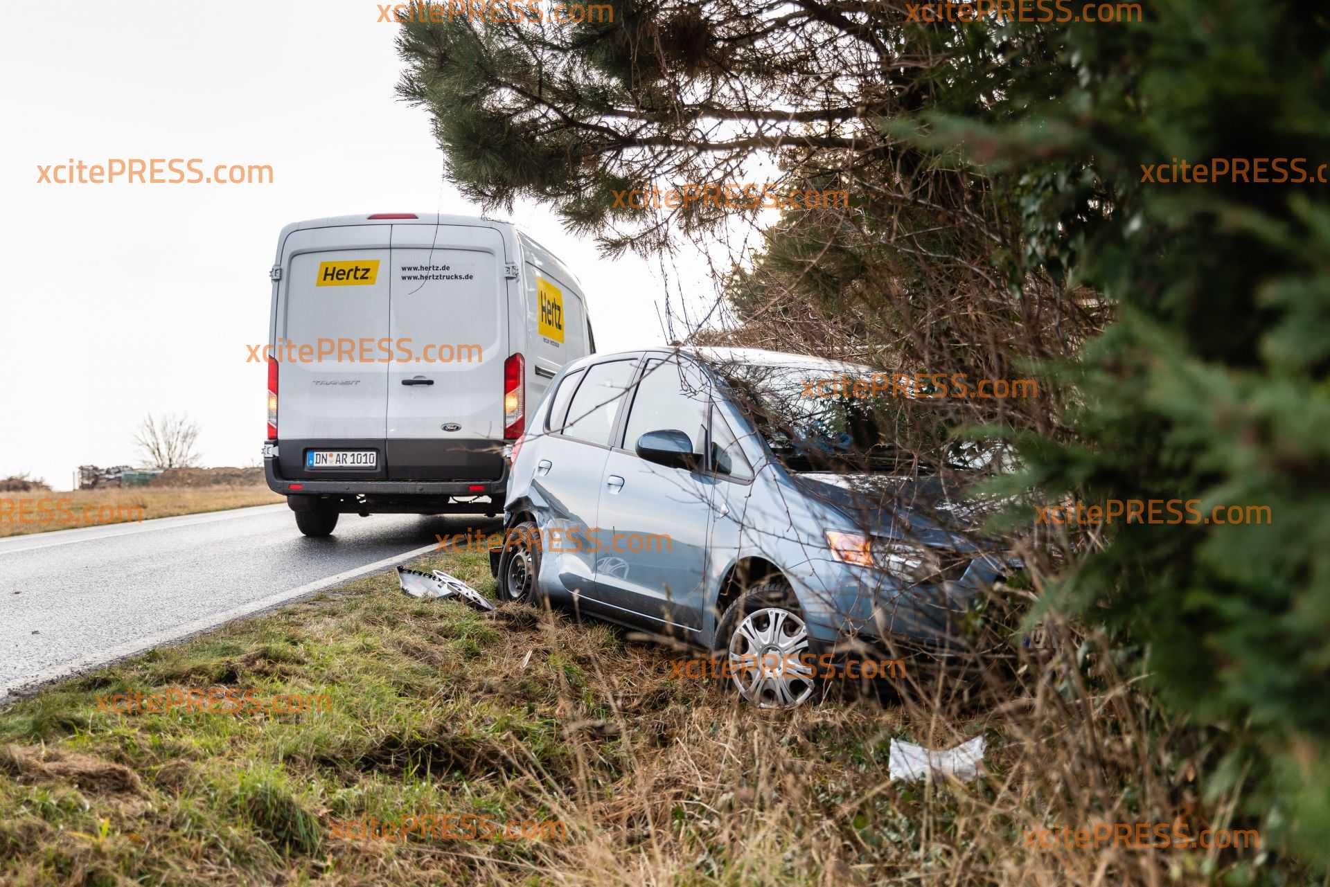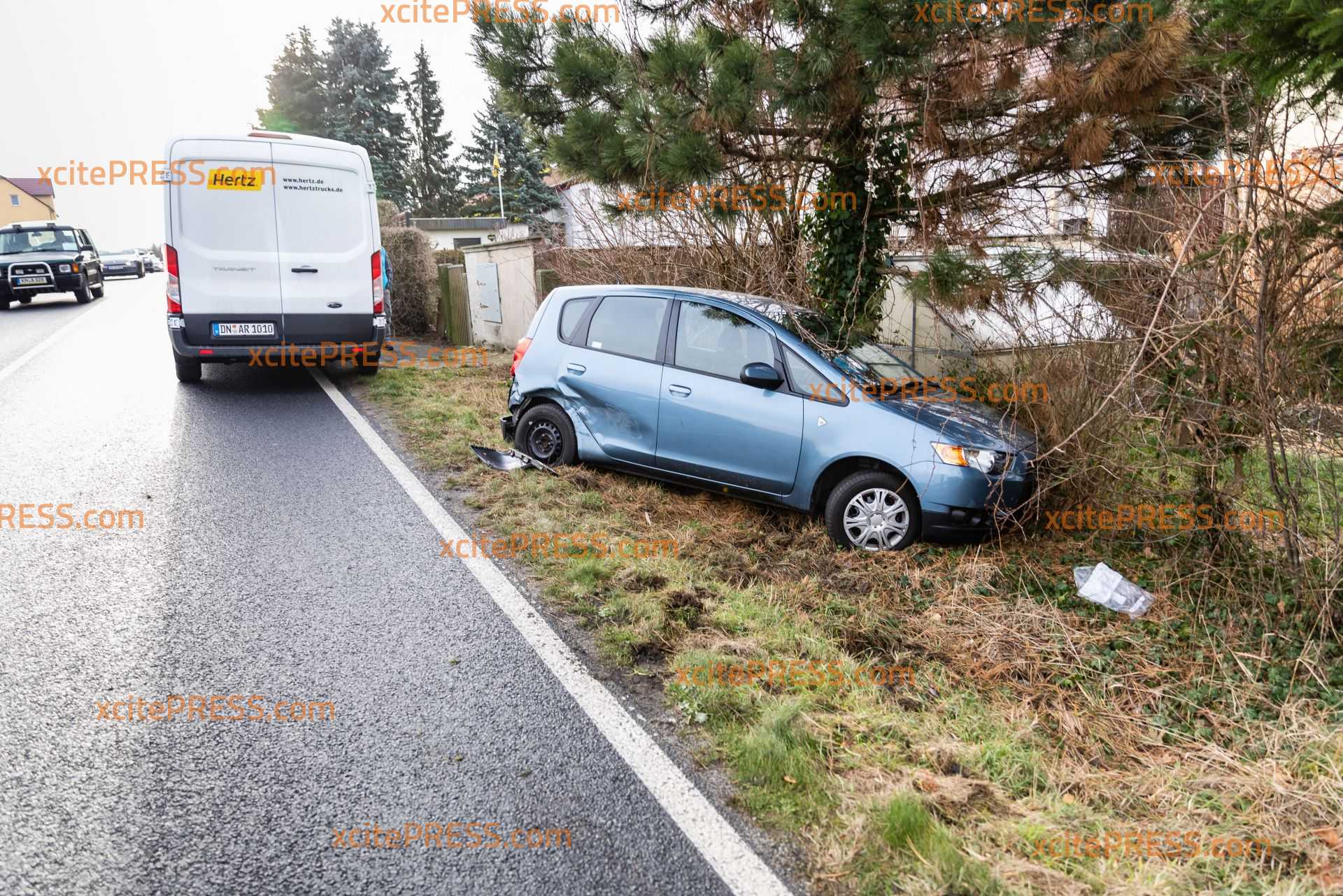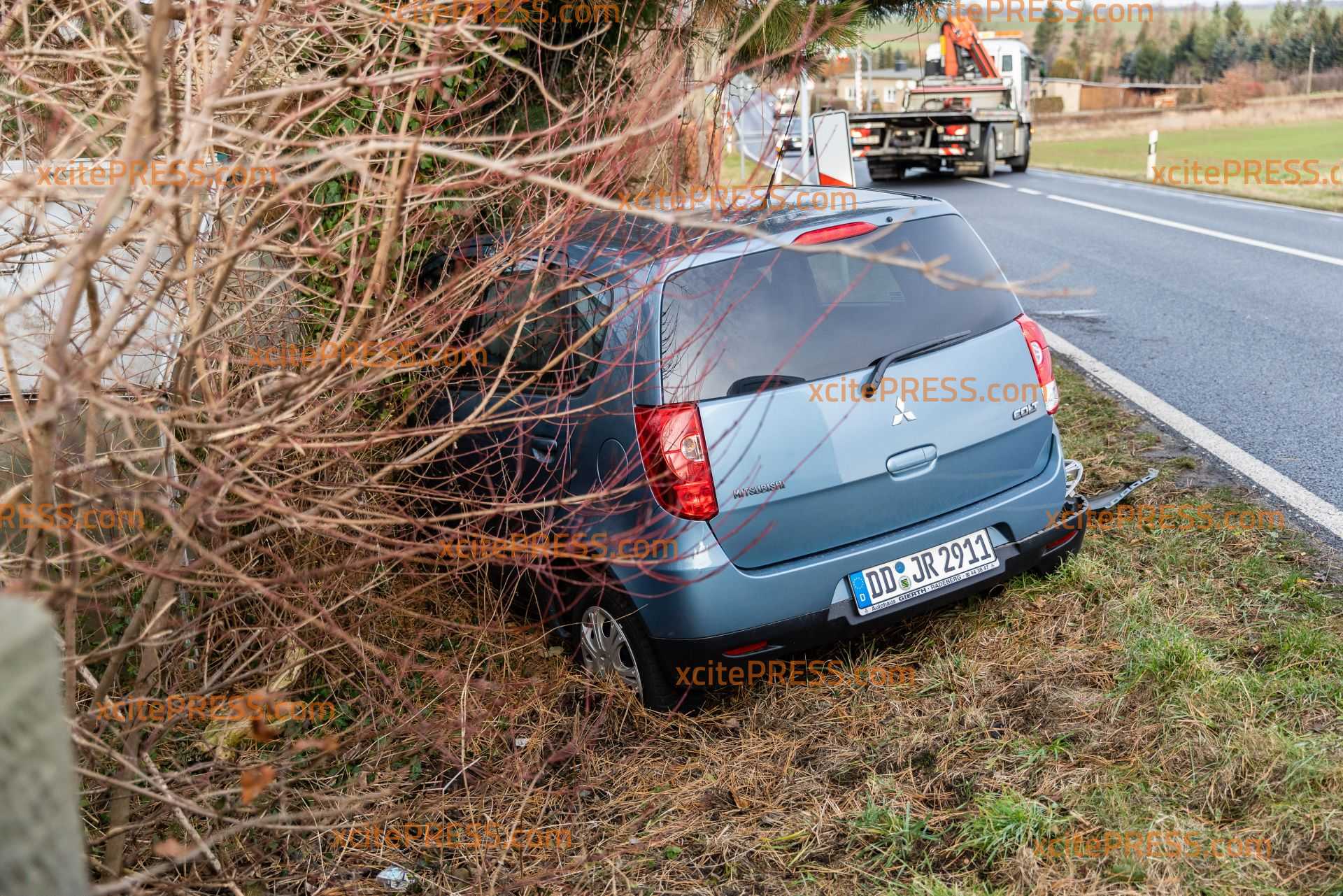 Zu einem Unfall zwischen einem Transporter und einem PKW kam es am frühen Mittwochvormittag auf der Radeberger Straße in Arnsdorf. Der Fahrer eines Ford Transit wollt von der Glashüttensiedlung auf die Radeberger Straße abbiegen und übersah dabei offenbar einen auf der Vorfahrtstraße fahrenden Mitsubishi. Es kam zum Zusammenstoß, wobei der PKW in einer Hecke landete. Die zwei Insassen des Autos kamen ins Krankenhaus, der Transporterfahrer blieb unverletzt.