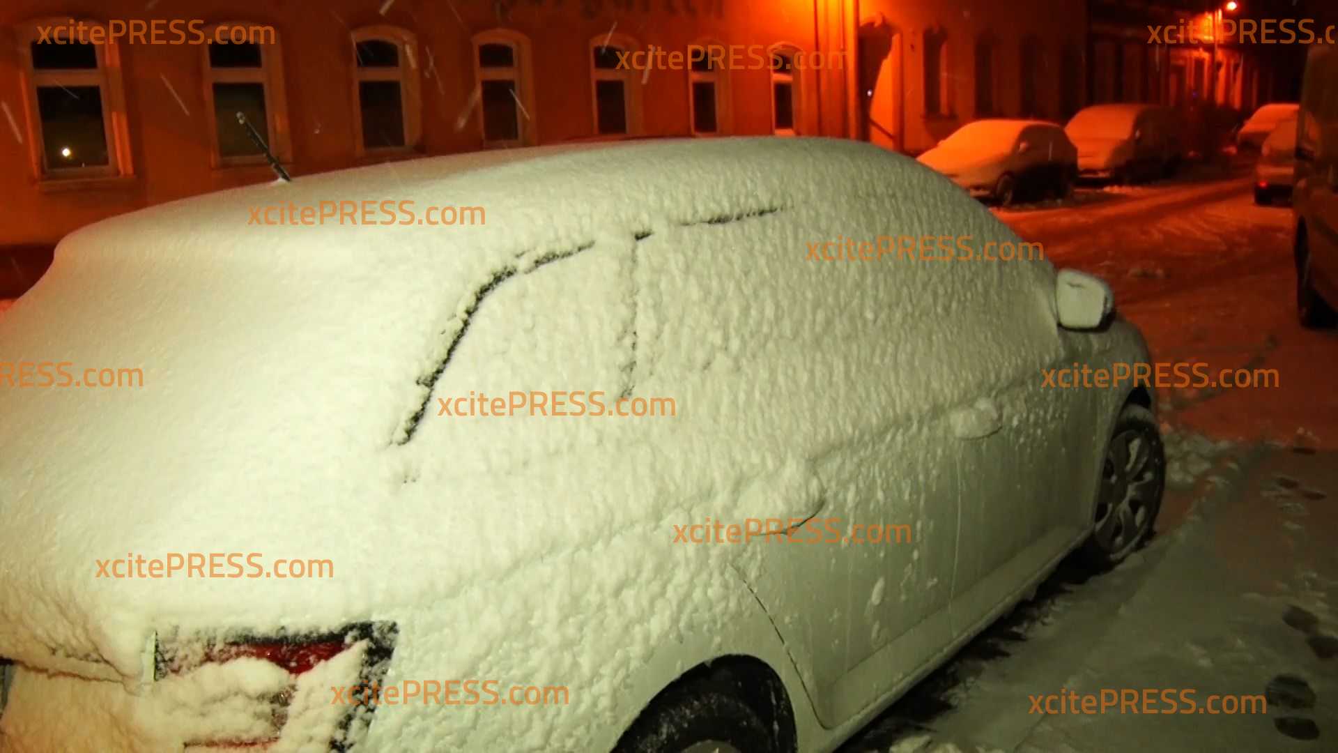 Wintereinbruch auch in Ostsachsen: In Pulsnitz waren am frühen Morgen die Autos vom Schnee bedeckt, Anwohner räumten die Fußwege mit Schneeschaufeln frei.