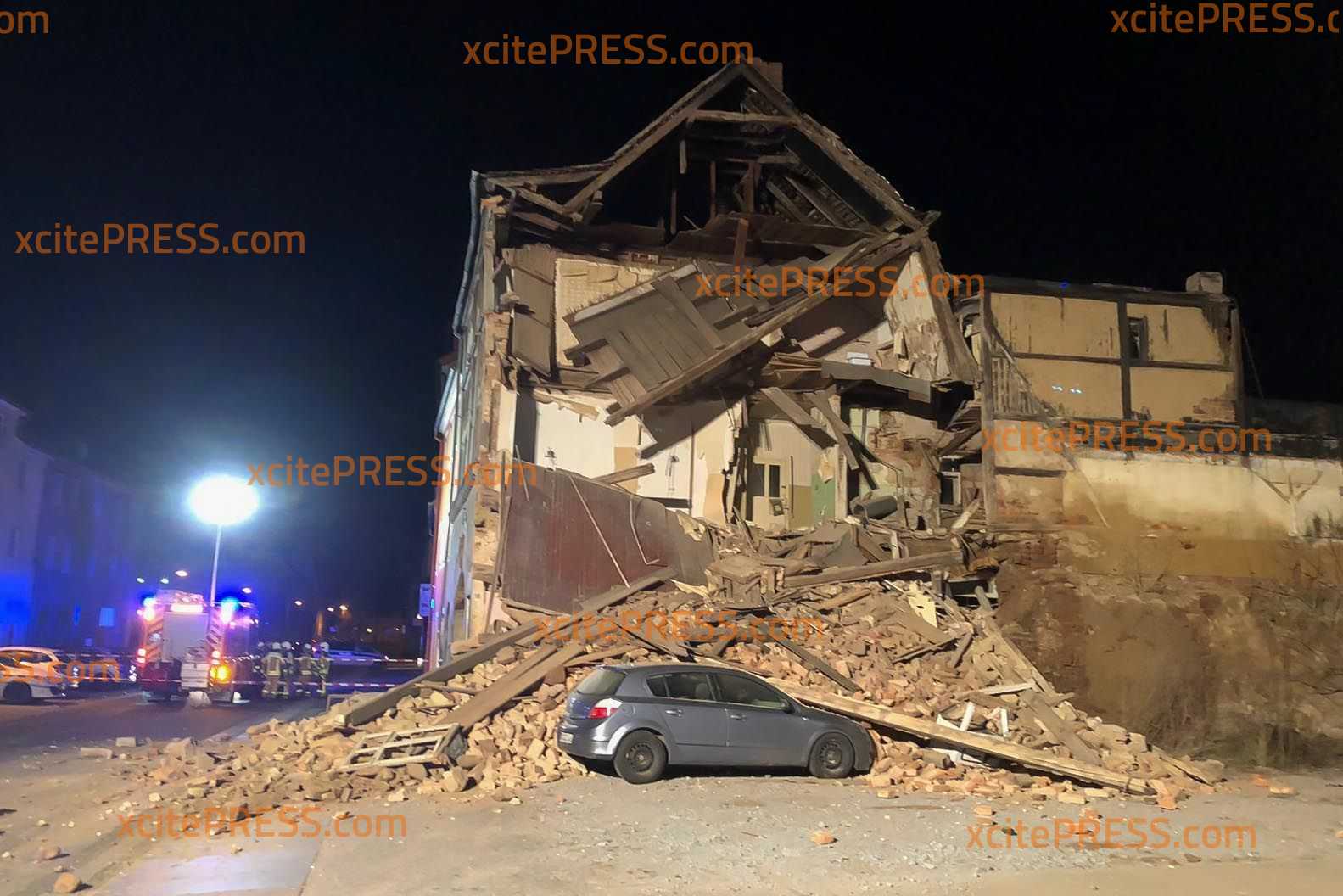 Leerstehendes Haus in sich zusammengekracht - Parkendes Fahrzeug völlig demoliert