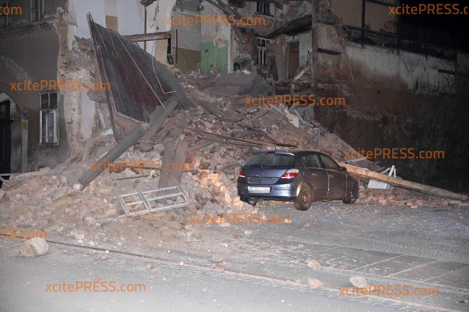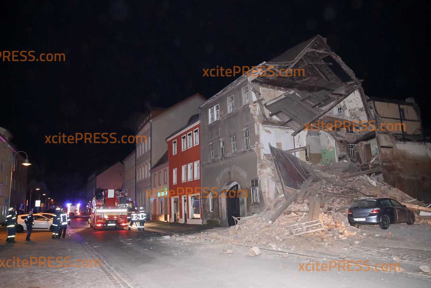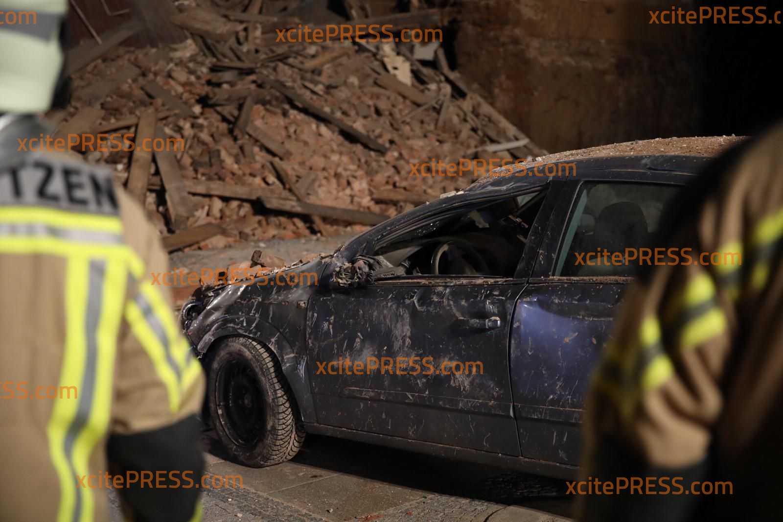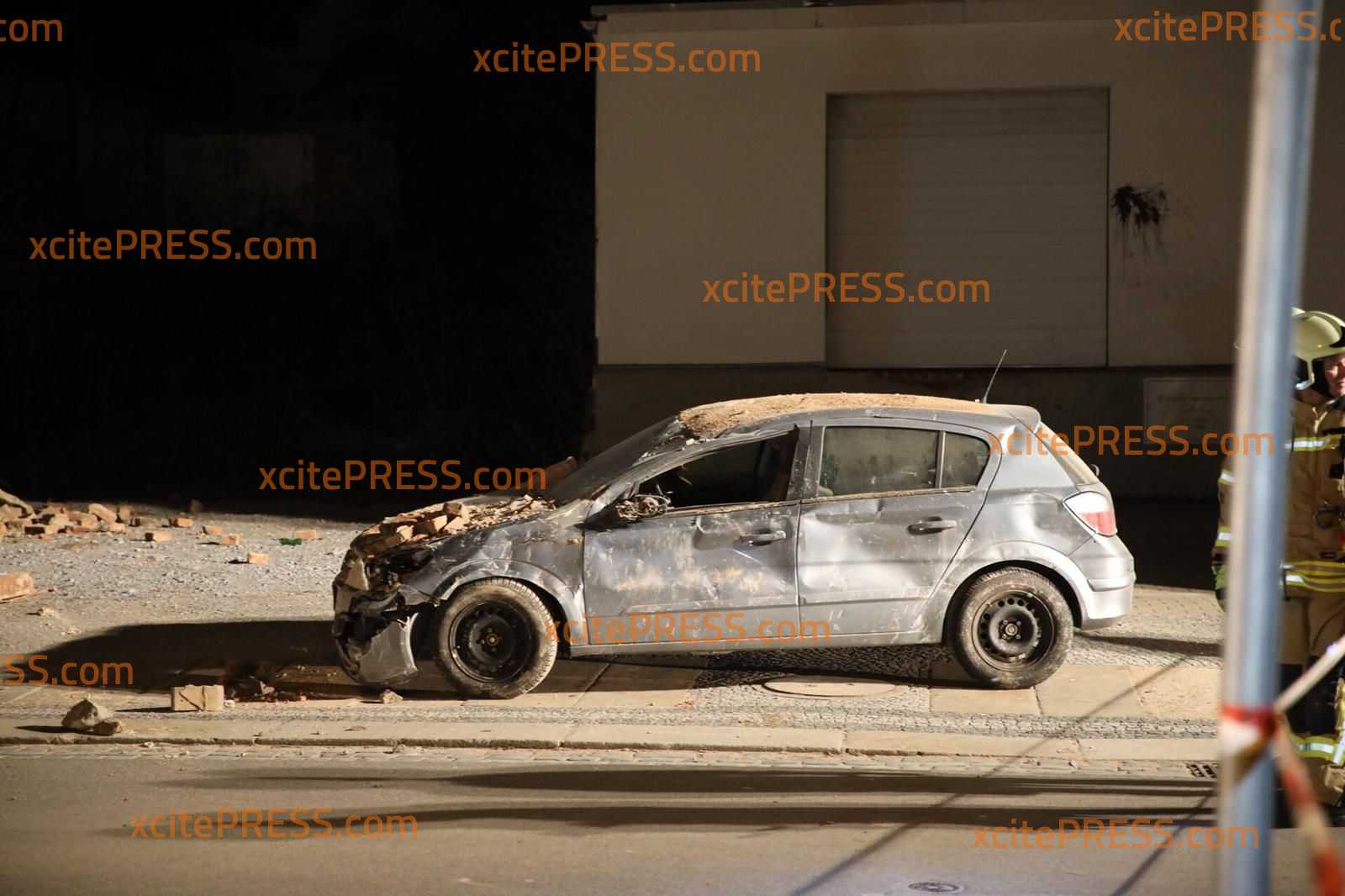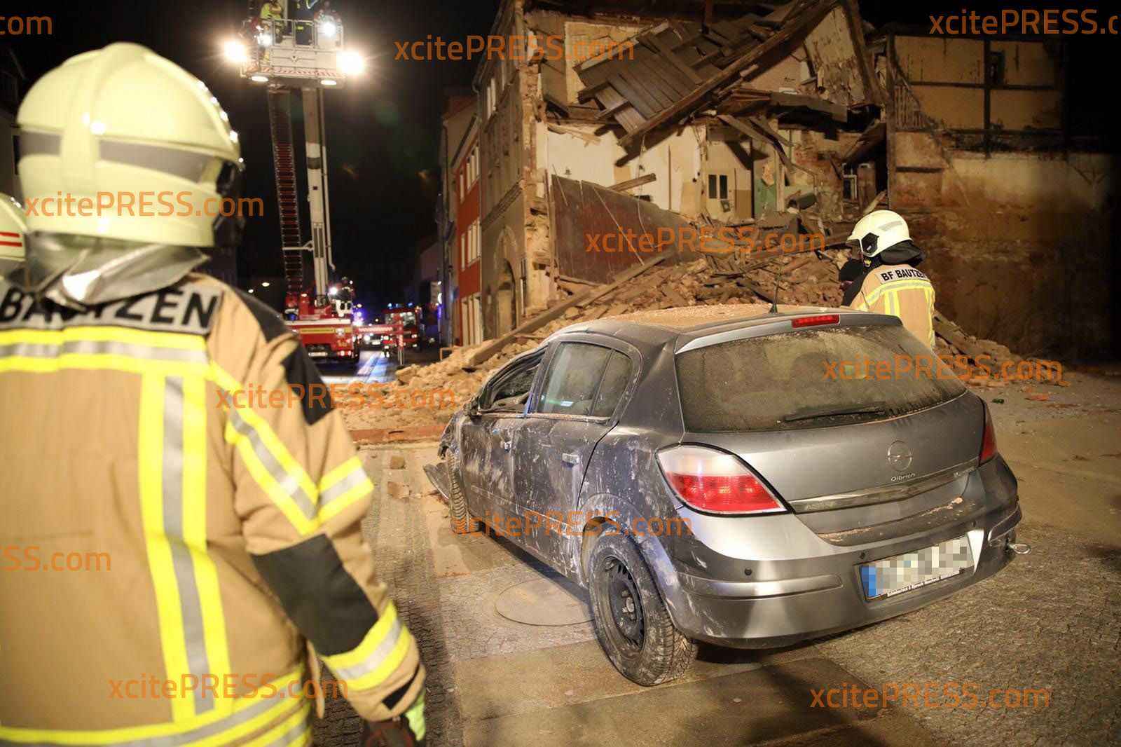Am Montagabend kurz vor 23.00 Uhr krachte aus noch ungeklärter Ursache ein Teil eines Gebäudes auf der Töpferstraße in Bautzen in sich zusammen. Ein Großteil des Schutts fiel auf den Gehweg und auf die Straße - auch ein in der Nähe parkender PKW wurde völlig demoliert.