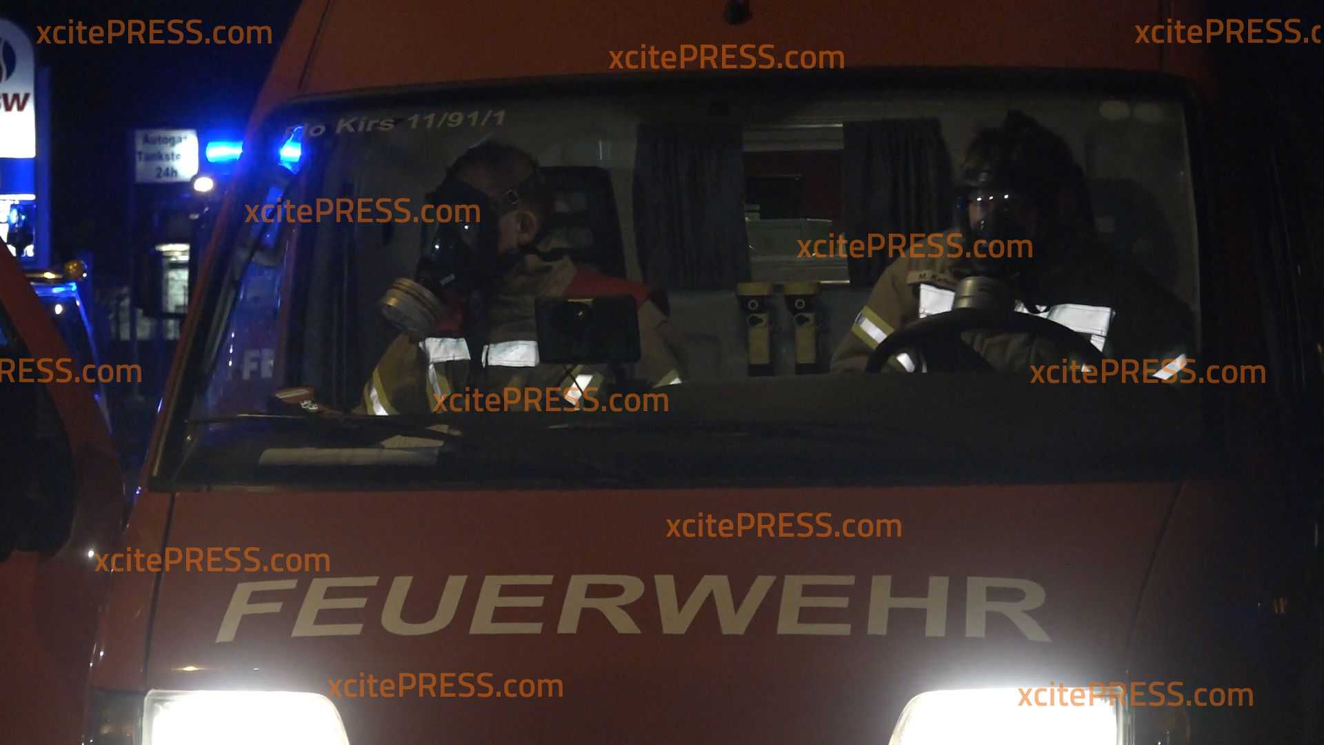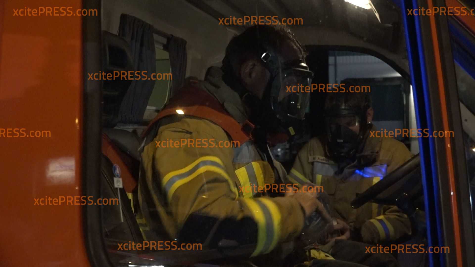 - Feuerwehrleute fahren mit Spezialmasken zu einer Messfahrt
