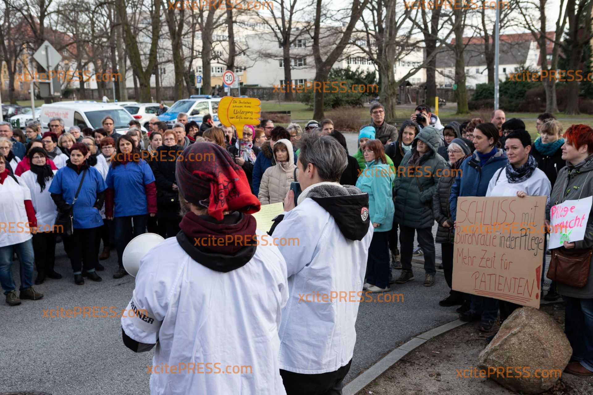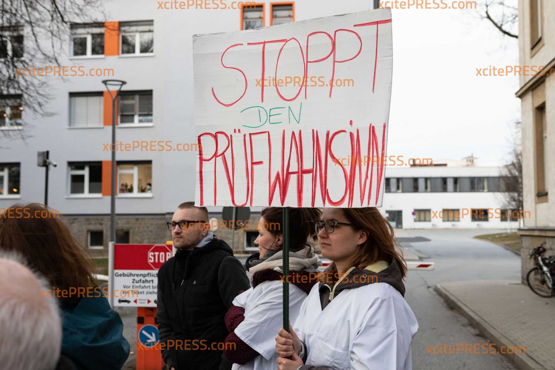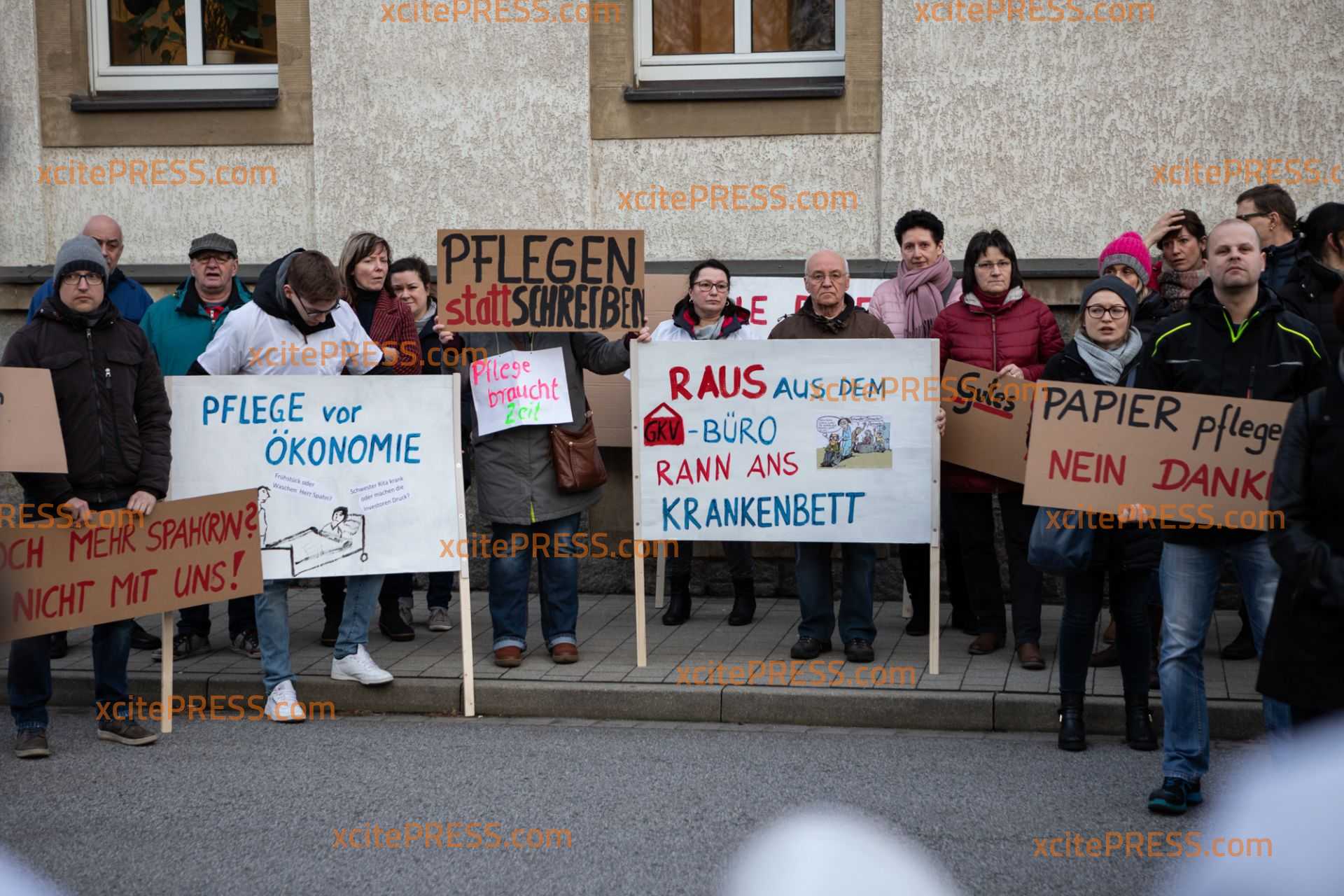 Bundesminister Jens Spahn kam nach einer Podiumsdiskussion in Dresden zum politischen Aschermittwoch nach Bautzen - Pfleger und Ärzte machen mit einer Demo vor dem Klinikgelände auf sich aufmerksam. Viele der Pfleger und Ärzte sind unzufrieden mit der derzeitigen Lage: Unter anderem, weil die Kassen Rechnungen oft nicht zahlen oder nachträglich infrage stellen, müssen die Krankenhaus-Angestellten immer mehr dokumentieren. Sie fühlen sich überlastet, ihnen fehlt die Zeit für die viele, ihrer Sicht nach unnütze, Papierarbeit.