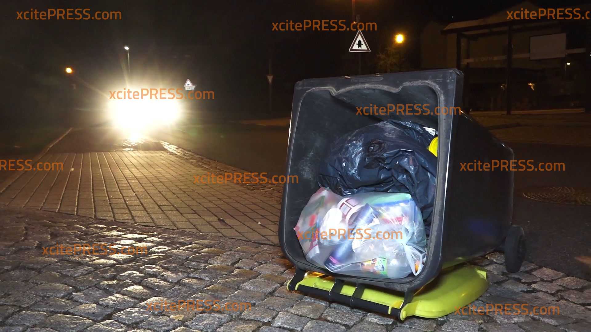 - Mültonnen auf die Straße geweht