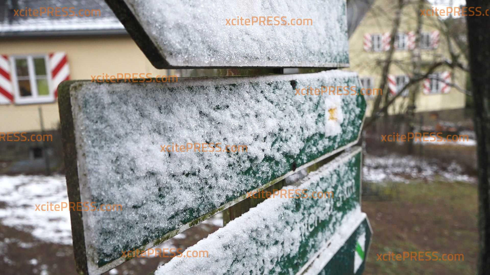 Sturmtief Eberhard ist vorüber und schon sinken die Temperaturen bis knapp über dem Gefrierpunkt. Bei 2 Grad Celsius setzte auf dem Keulenberg in Oberlichtenau am frühen Montagmorgen leichter Schneefall ein, der dafür sorgte, dass sich auf dem Gipfel eine Art Puderzuckerschicht bildete, die sogar liegen blieb. Auf 413 Metern Höhe kommt nun wieder ein wenig Winterflair auf.