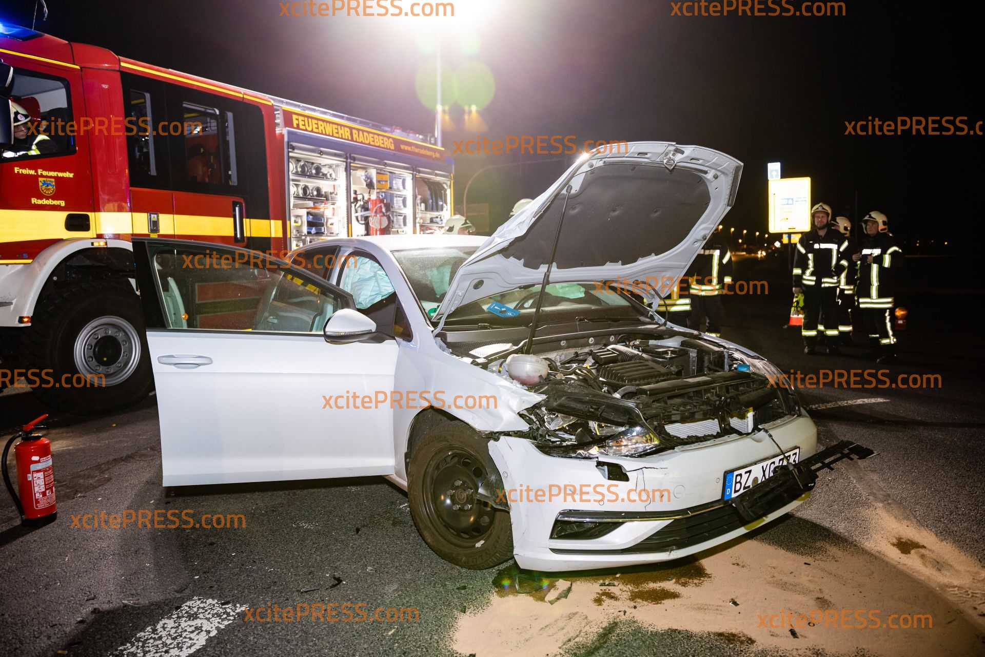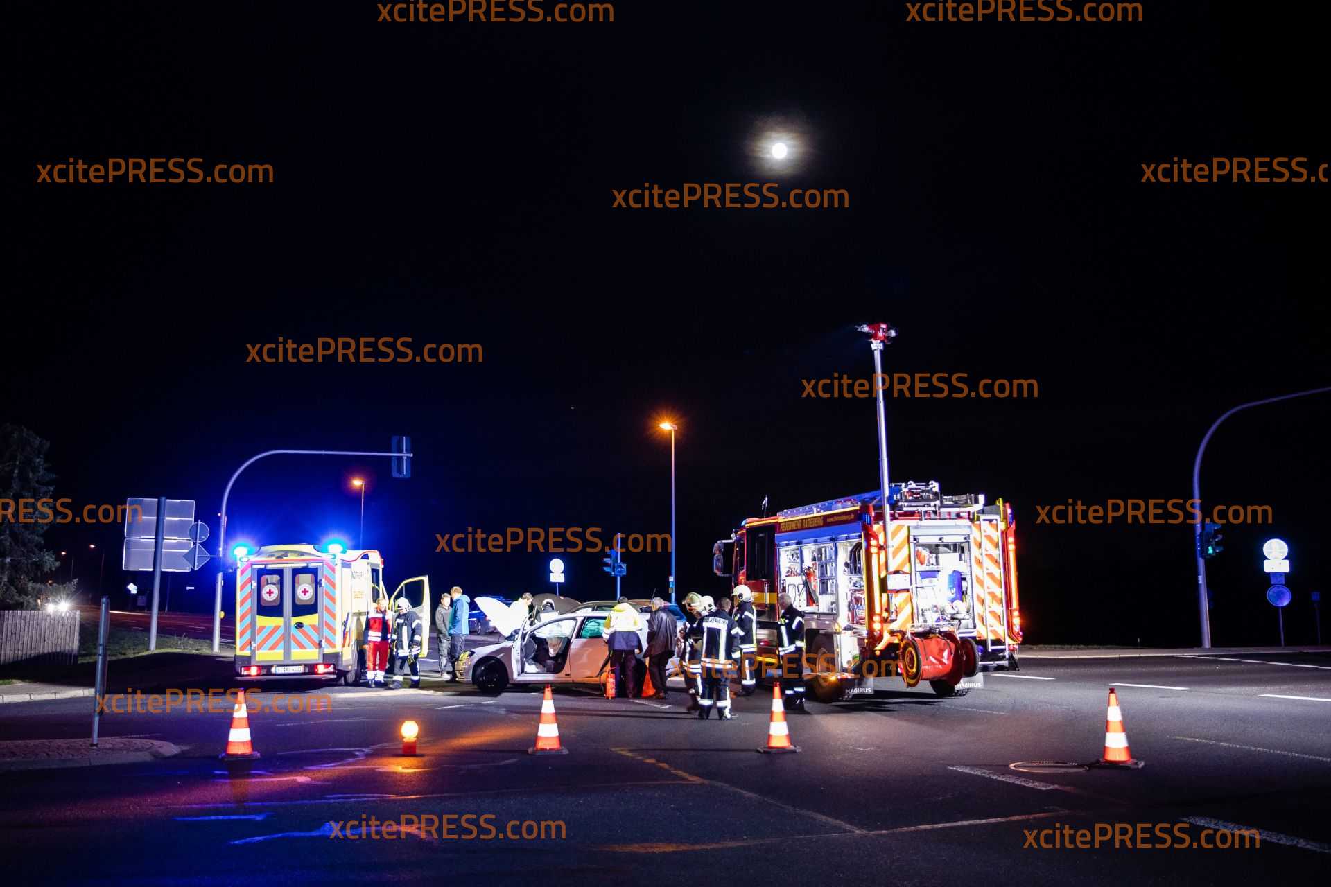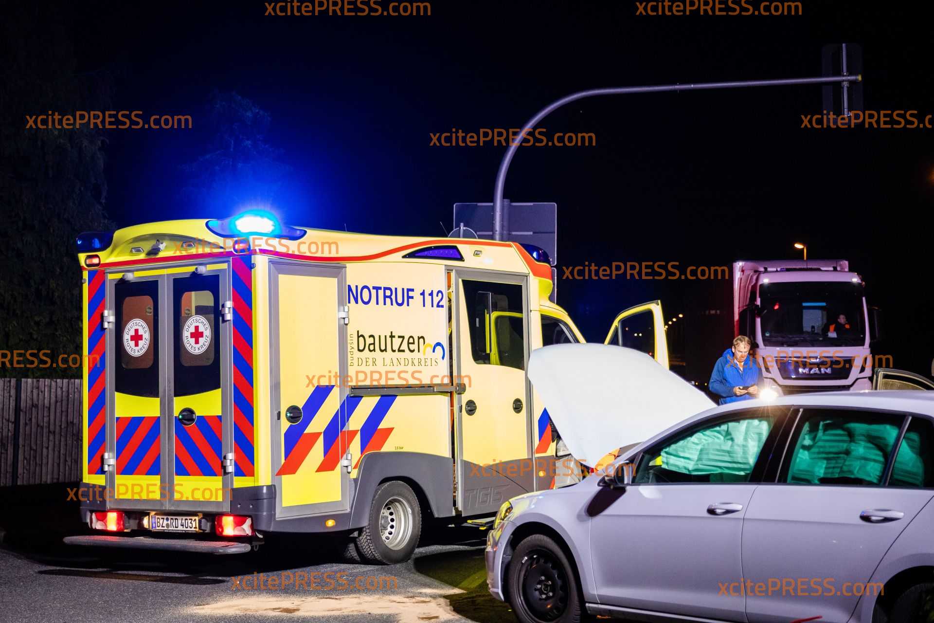 An einer Ampelkreuzung in Radeberg sind am Mittwochabend zwei Autos zusammengestoßen. Der Unfall geschah an der Kreuzung Kamenzer Straße/Großröhrsdorfer Straße. Noch ist unklar, warum der VW Golf mit dem Renault zusammenstieß. Die Ampelanlage war zum Zeitpunkt des Unfalls in Betrieb. Die Feuerwehr Radeberg rückte an, und sperrte den Kreuzungsbereich soweit ab, dass der Verkehr um die Unfallstelle herumgeführt wurde. Ein Rettungswagen versorgte einen Unfallbeteiligten und die Polizei nahm den Sachverhalt auf.