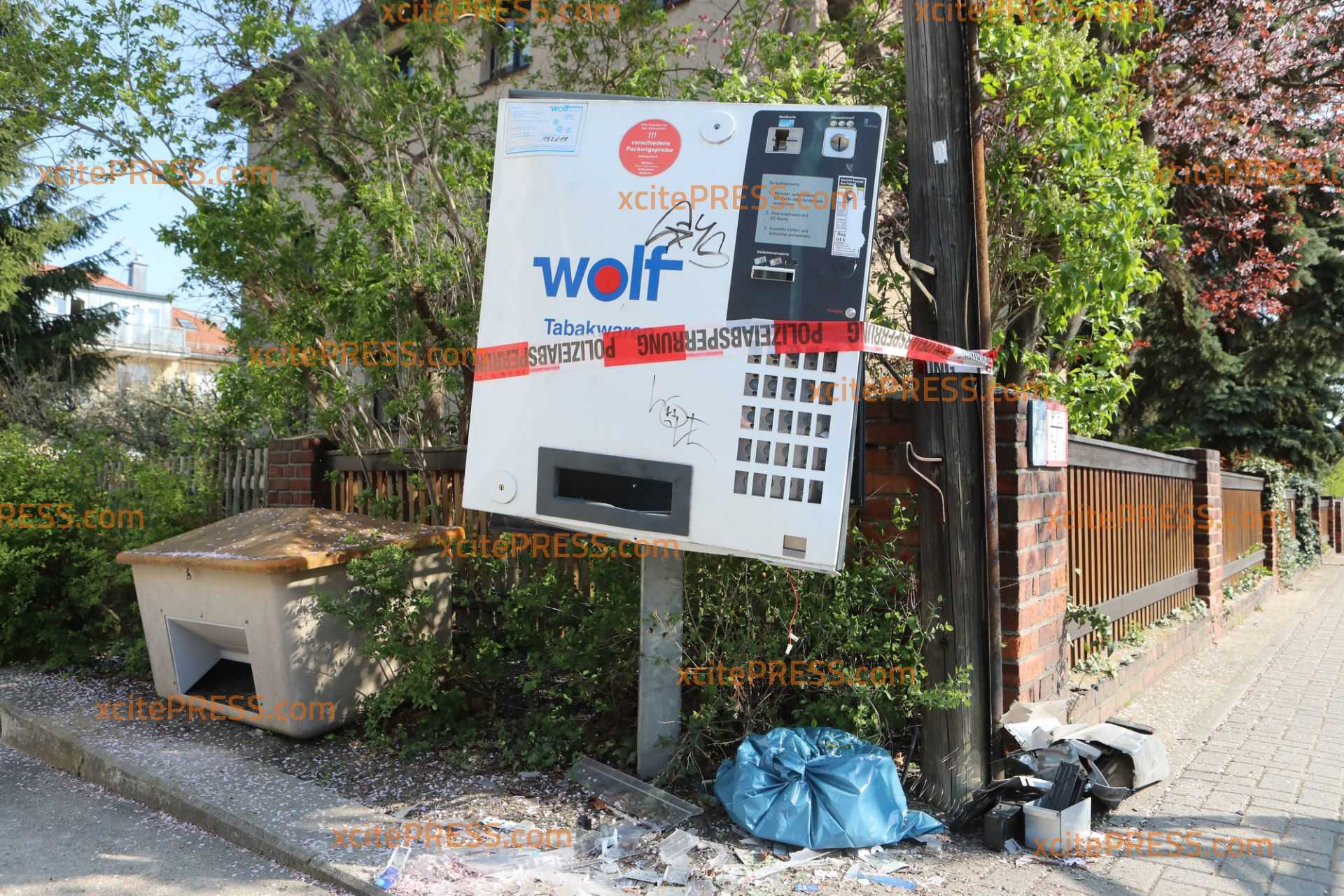 Eine Zeugin teilte über den Polizeinotruf mit, dass an der Boderitzer Strasse in Dresden-Mockritz gerade ein Zigarettenautomat gesprengt wurde. Sofort eingesetzte Polizeibeamte stellten fest, dass der Automat tatsächlich unter Verwendung von Pyrotechnik zerstört wurde. Im Rahmen der Fahndungsmaßnahmen konnten zwei Jugendliche im Alter von 15 und 17 Jahren gestellt werden. Zwei weitere Mittäter entkamen unerkannt.
