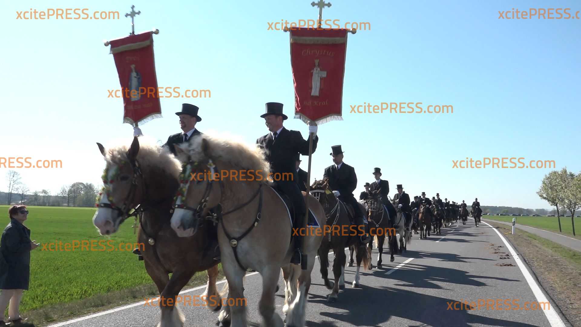Ostersonntags treffen sich die Prozessionen der ausschließlich männlichen sorbische Osterreiter an acht kath. Pfarrkirchen und dem Kloster Marienstern. Sie formieren sich zu zweit, die vorderen Paare tragen die farbigen Kirchenfahnen, ein mit der Stola geschmücktes Kruzifix – daher spricht man örtlich auch vom Kreuzreiten – und eine Statue des auferstandenen Christus.
