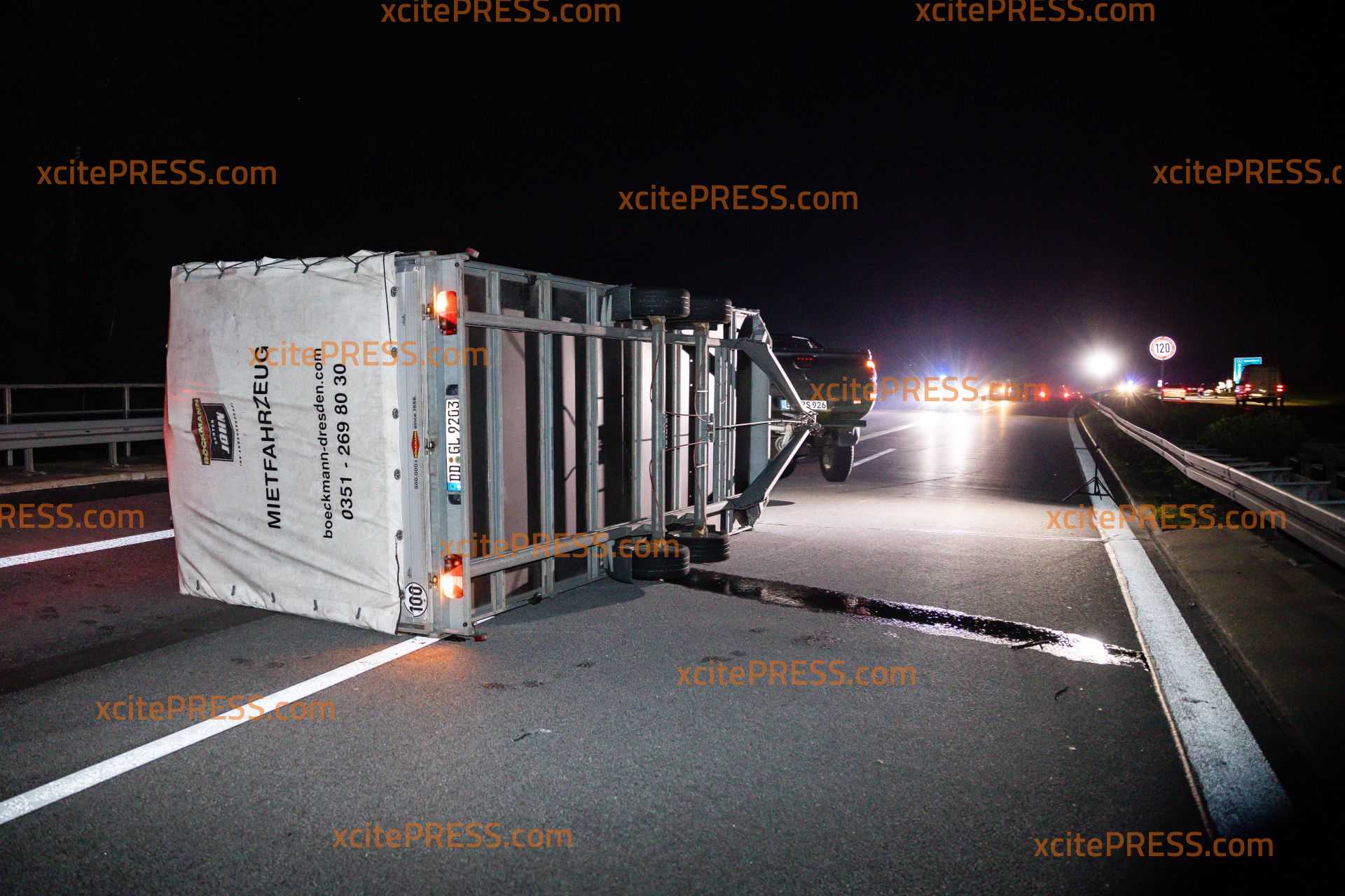 Am späten Dienstagabend hat es auf der A4 bei Uhyst am Taucher einen Unfall gegeben. Kurz nach der Anschlussstelle war ein PKW mit Anhänger in Richtung Dresden unterwegs. Das Gespann kam aus noch ungeklärter Ursache ins Schleudern und drehte sich. Schließlich kippte der Anhänger um und blieb auf der Seite liegen. Das Zugfahrzeug kam entgegen der Fahrtrichtung zum Stehen. Ersthelfer sicherten die Einsatzstelle sofort ab, bis die Polizei schließlich eintraf und beide Fahrspuren sperrte. Der Verkehr wurde über den Standstreifen an der Unfallstelle vorbeigeleitet. Verletzt wurde niemand.