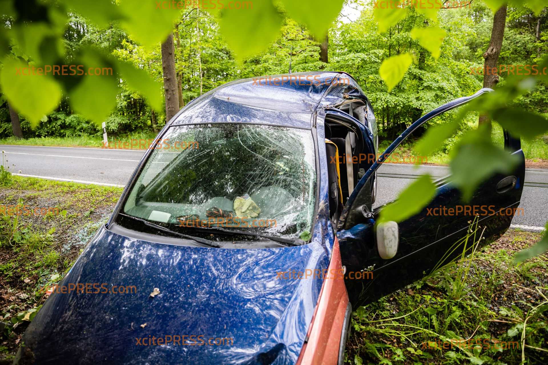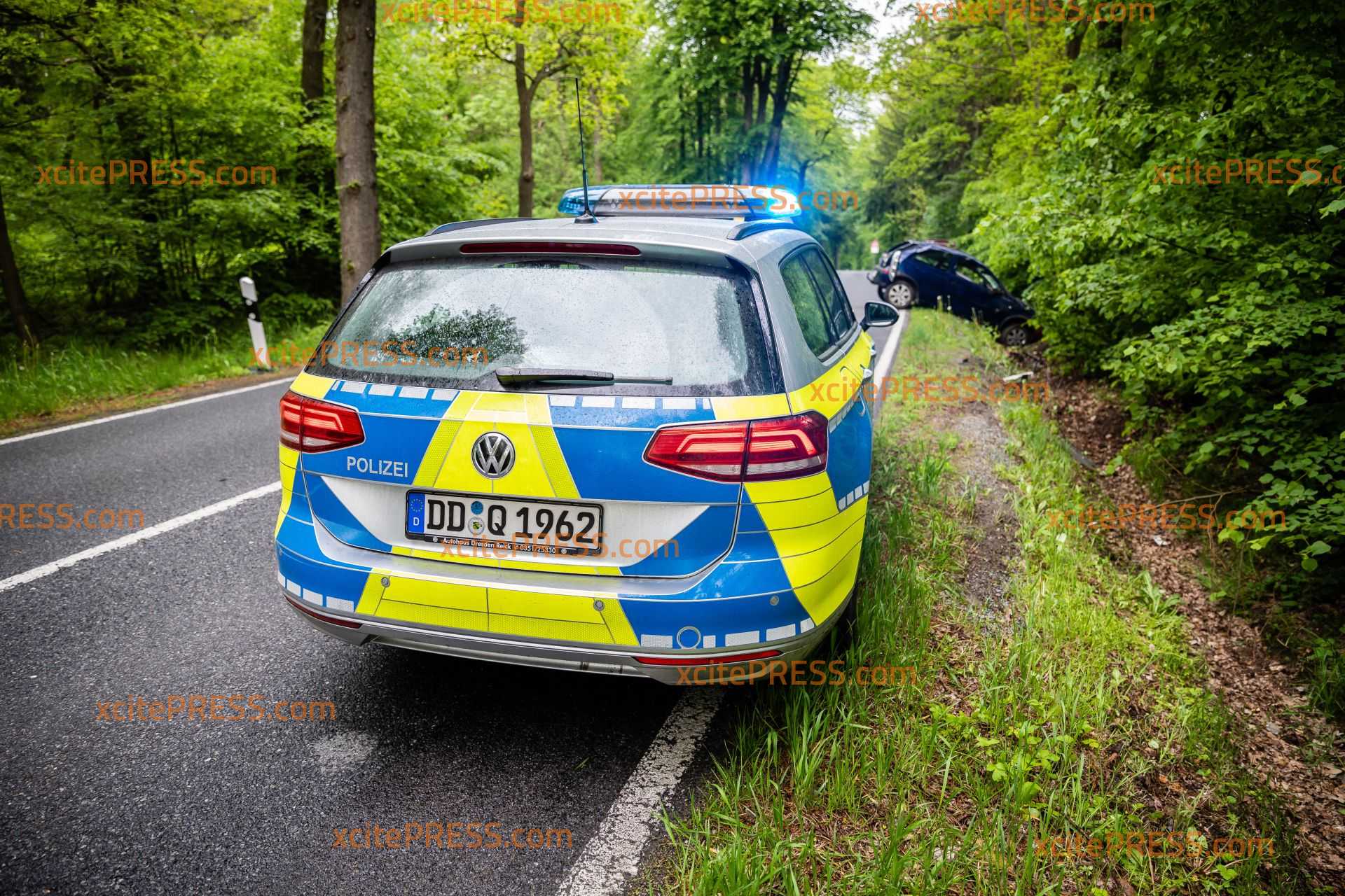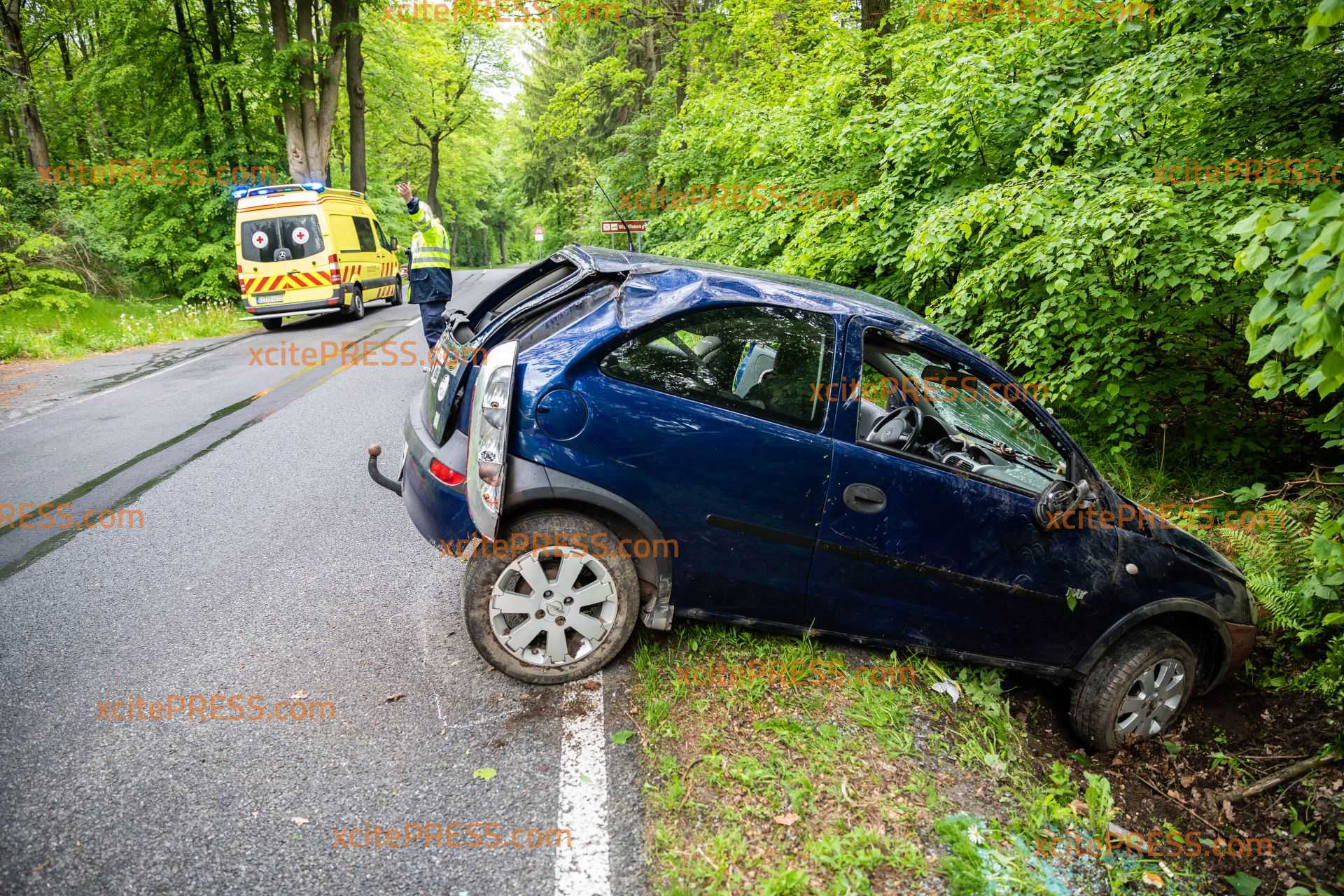 PKW kommt nach rechts von der Fahrbahn ab und kracht in Graben
