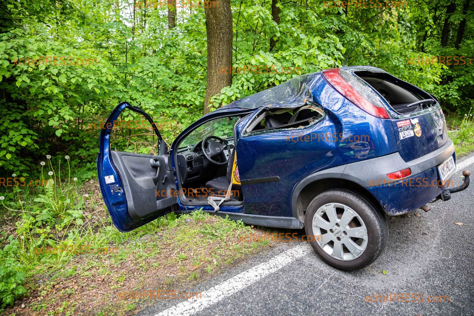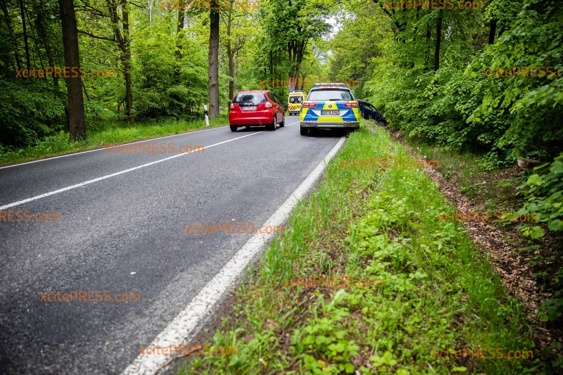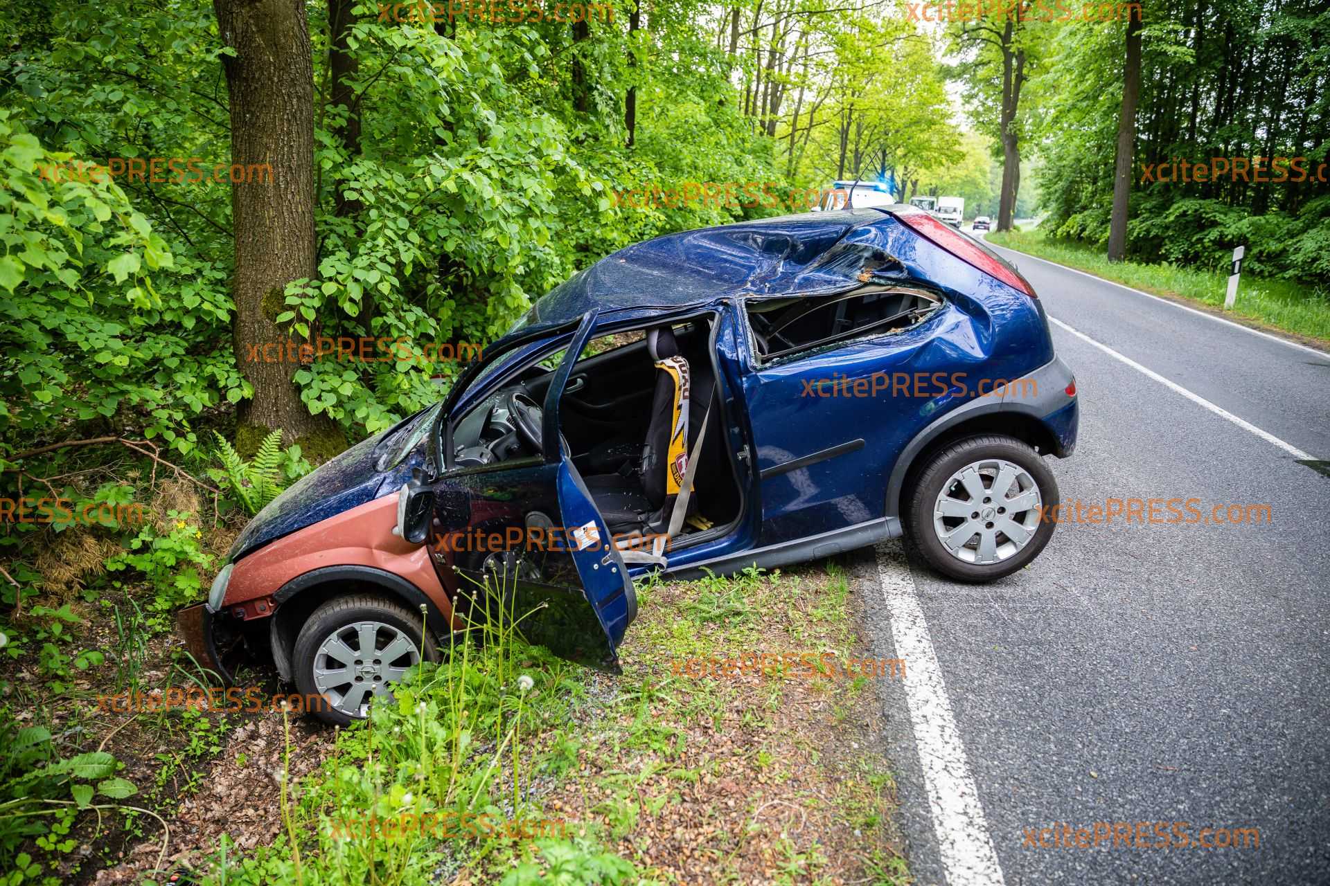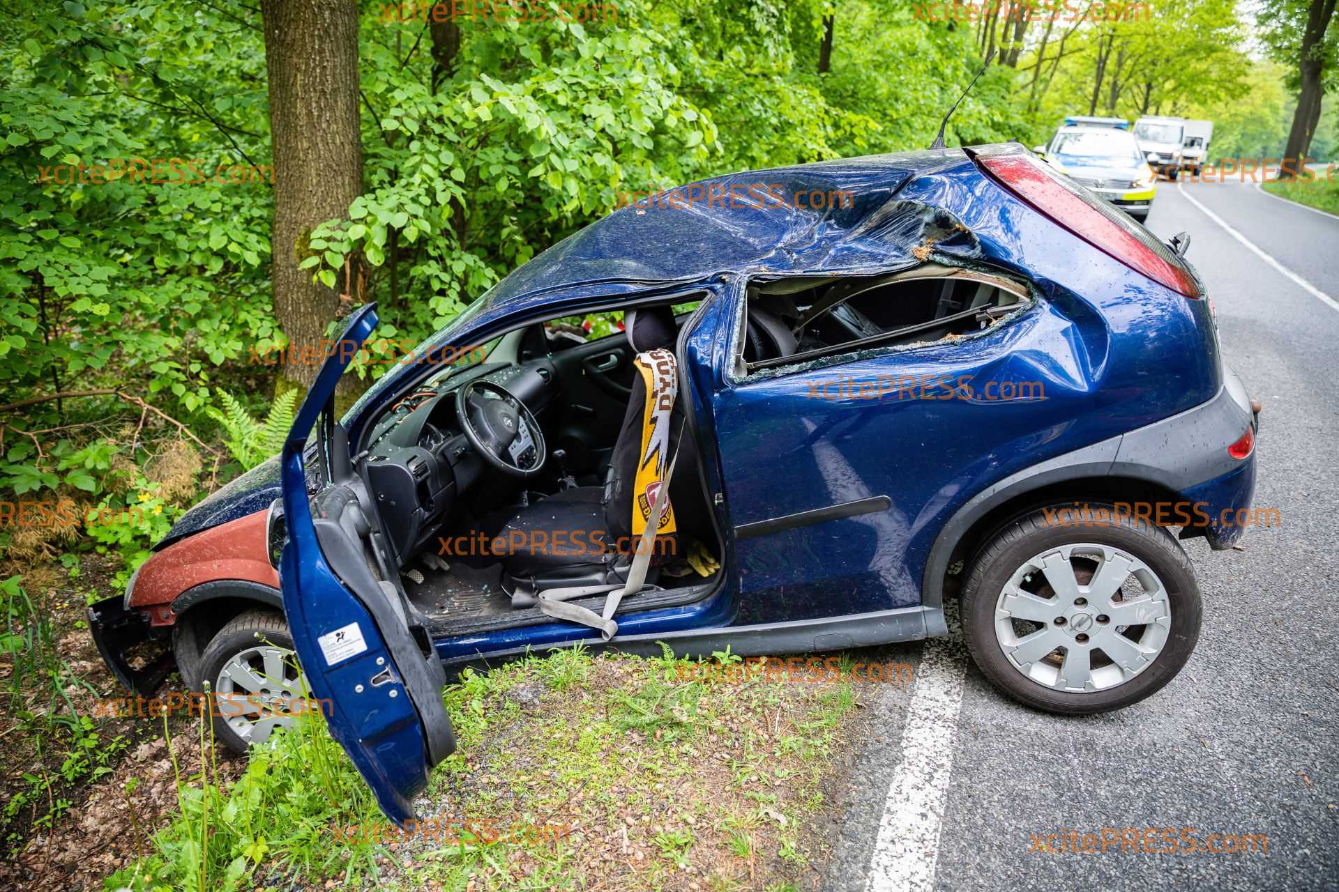 PKW kommt nach rechts von der Fahrbahn ab und kracht in Graben