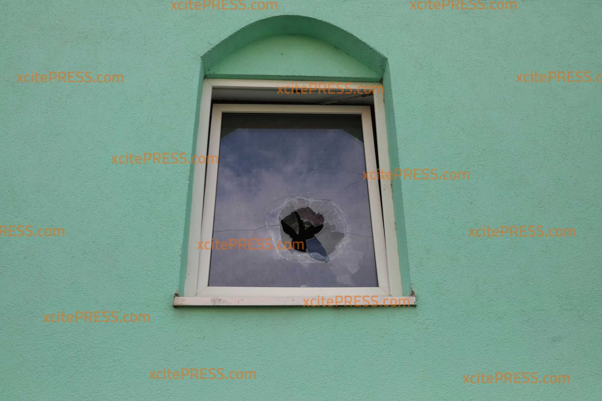 - eingeschlagene Scheiben der Moschee