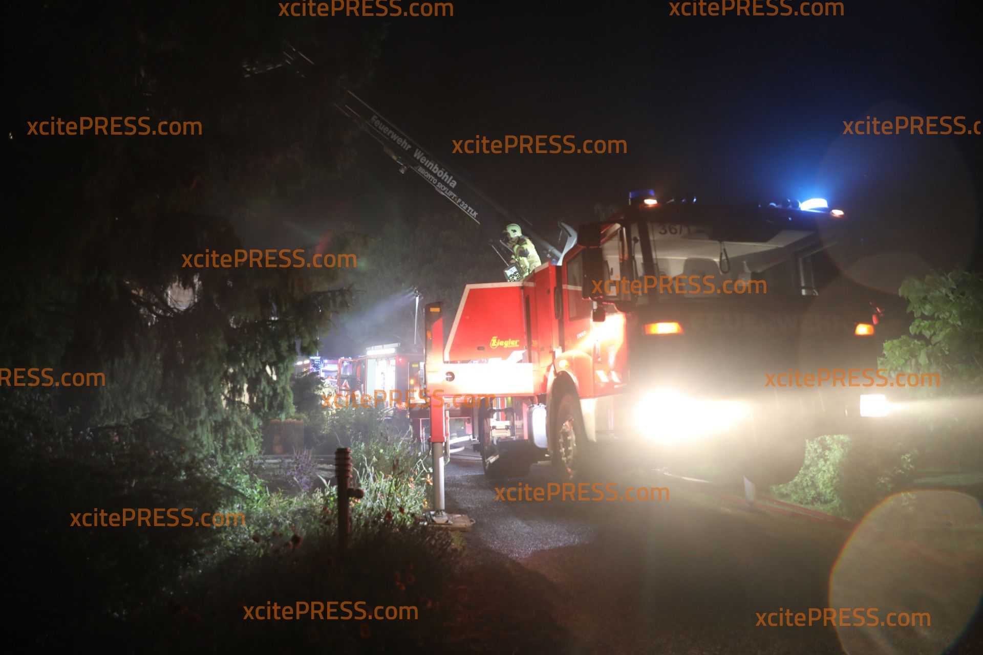 Zu einem Dachstuhlbrand kam es in der Nacht von Montag auf Dienstag in Weinböhla. Am Hügelweg traf offenbar im Unwetter ein Blitz den Dachstuhl eines Wohnhauses. Das Dach fing daraufhin Feuer. Bereits nach Alarmierung der Feuerwehr war bei Anfahrt die Lage durch die Kameraden zu sehen.