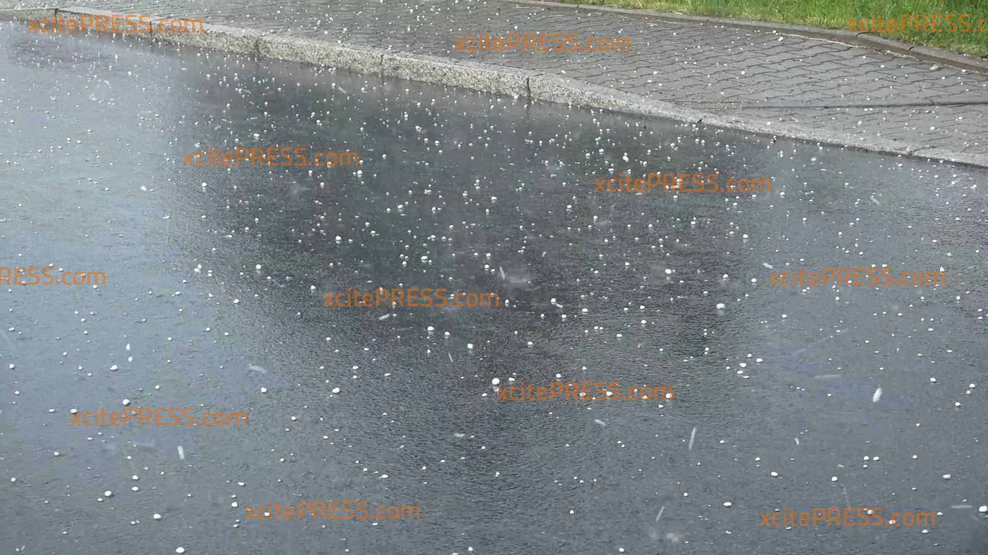 - Hagel prasselt auf die Straße